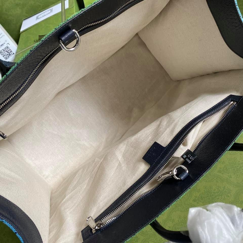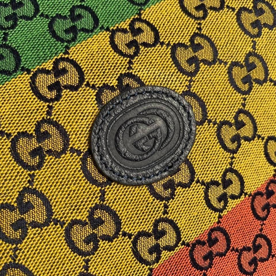Embracing the new possibilities that lie within variations of the Gucci archives, various pieces throughout the collection provide a new lens through which to view the emblematic GG rhombi motif. Already an evolution of the House logo, it is once again reimagined in a series of bright colours—a theme that has become synonymous with the Creative Director’s vision. This large tote bag is part of the GG Multicolour collection.