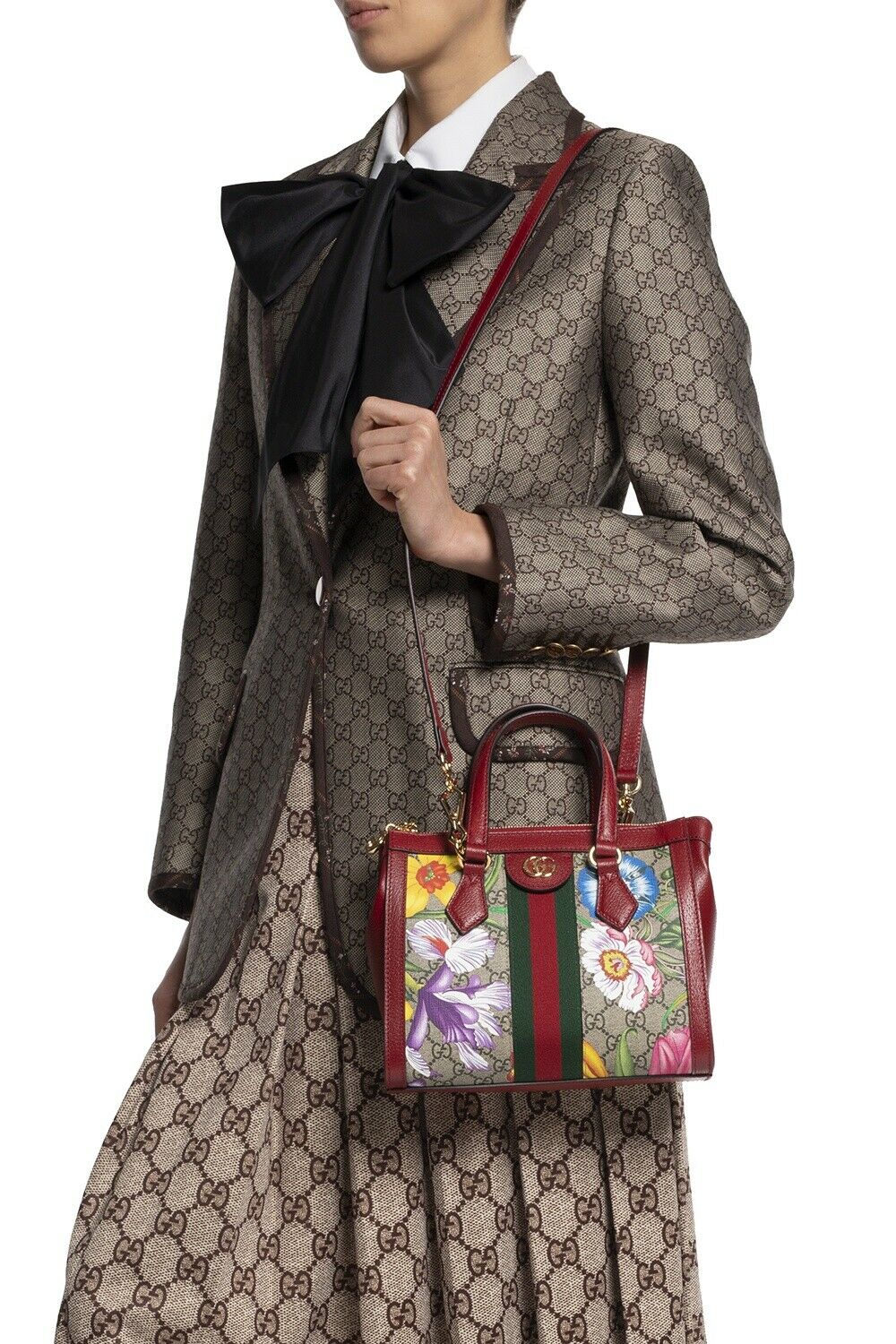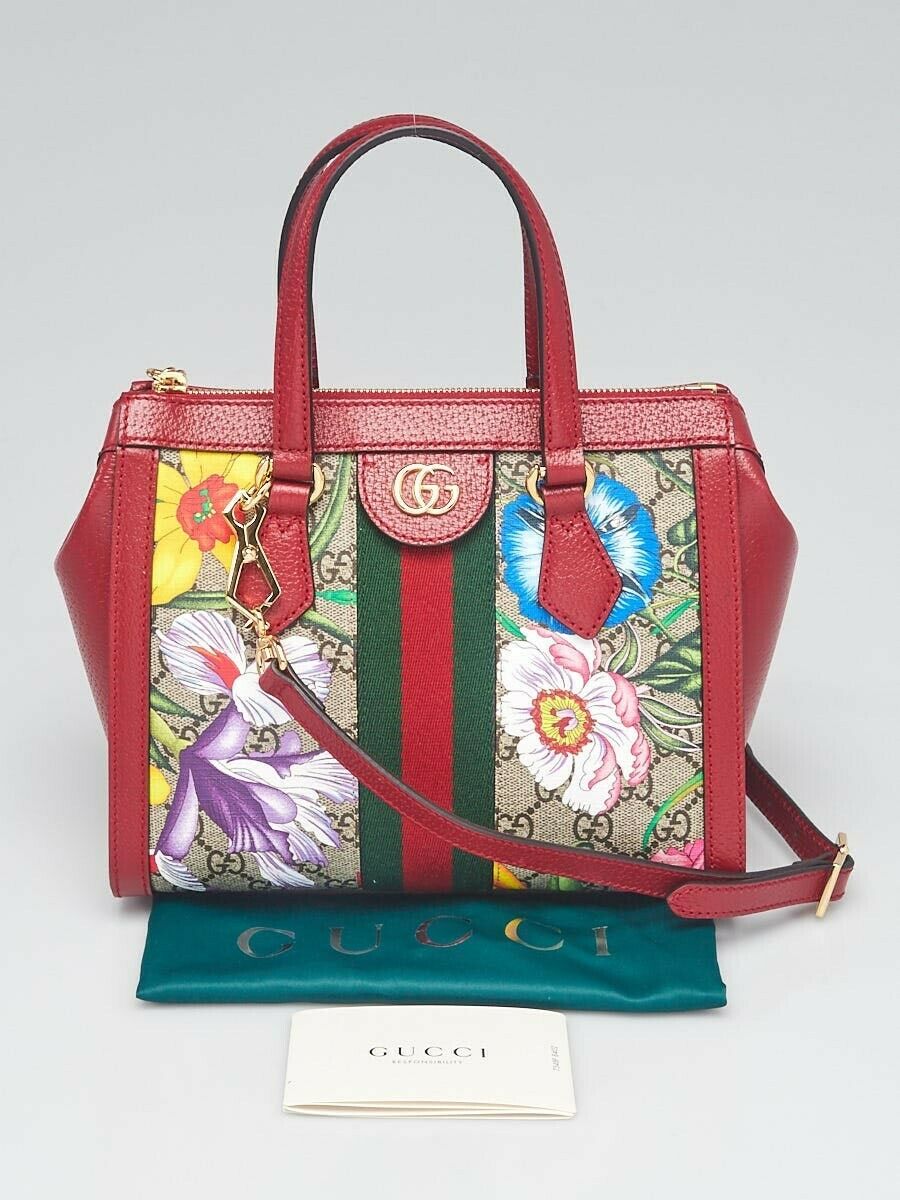 Gucci Ladies Small Ophidia GG Flora Tote Bag Crafted from beige/ebony GG Supreme canvas with red leather trim, this tote from Gucci