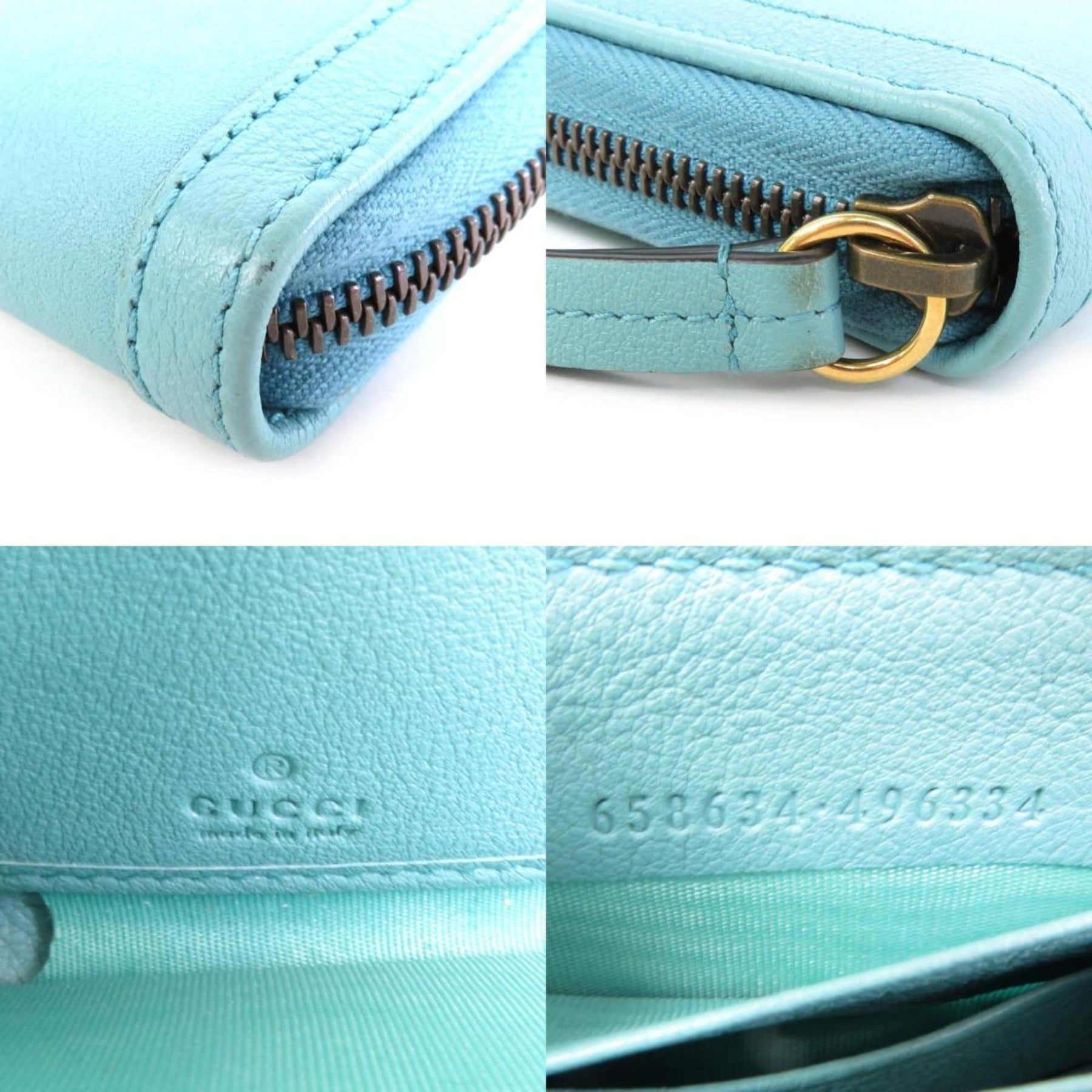 Gucci Round Zipper Long Wallet GG Marmont Diana Leather Turquoise Blue Gold Unisex 658634