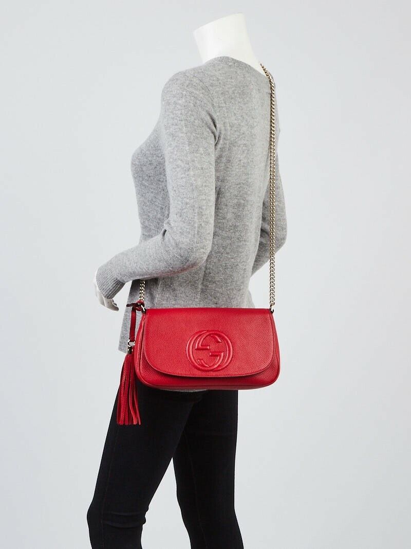Gucci Soho Red Handbag Logo Leather shoulder bag Crossbody Italy New