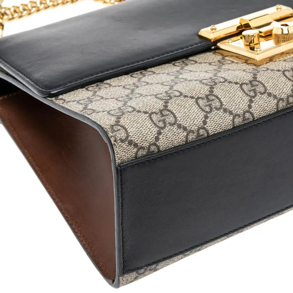 Gucci Tri Color GG Supreme Canvas and Leather Medium Padlock Shoulder Bag NEW Brown Black