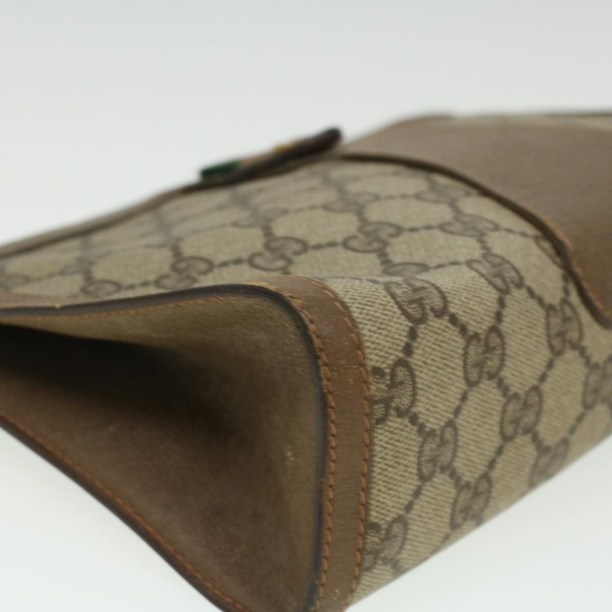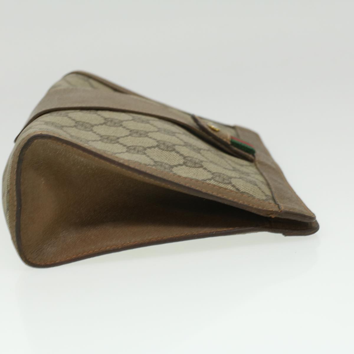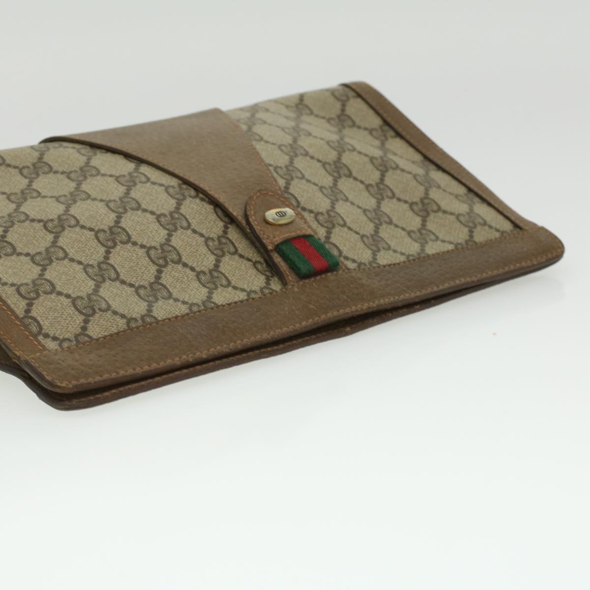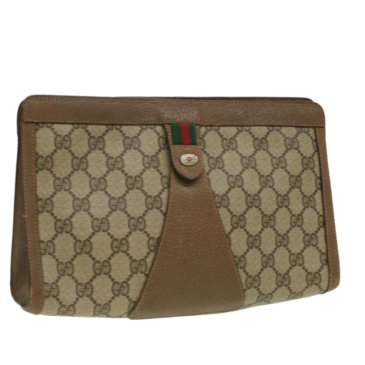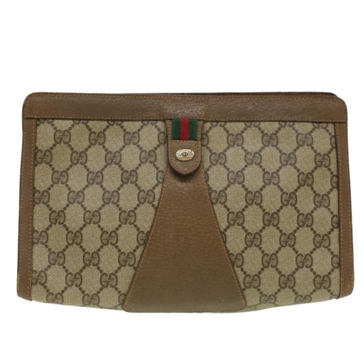GUCCI Web Sherry Line GG Canvas Clutch Bag PVC Leather Beige Green th3181