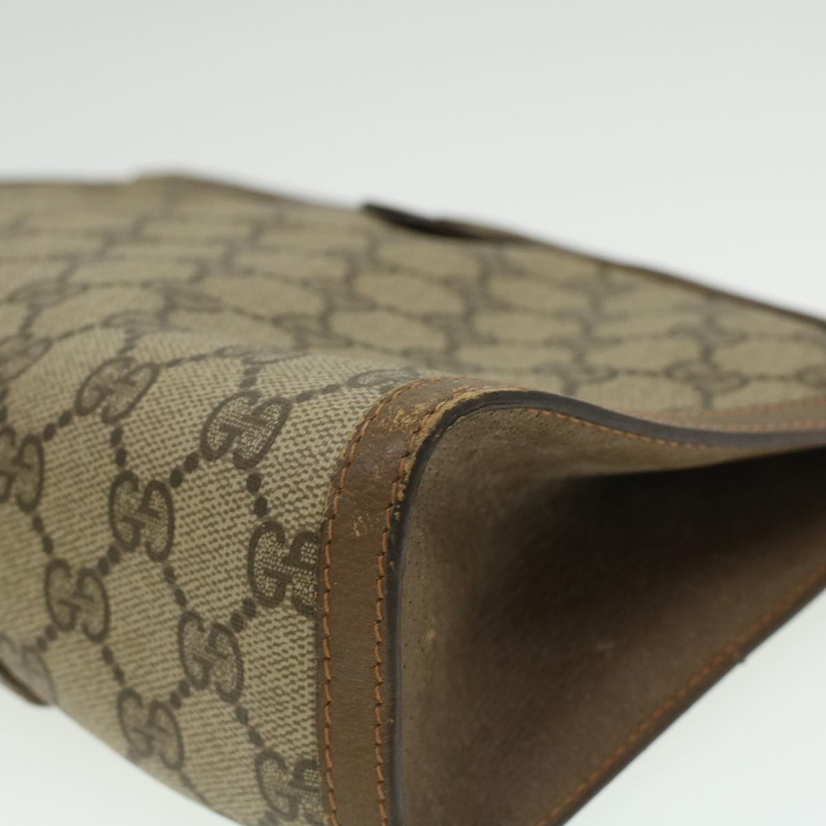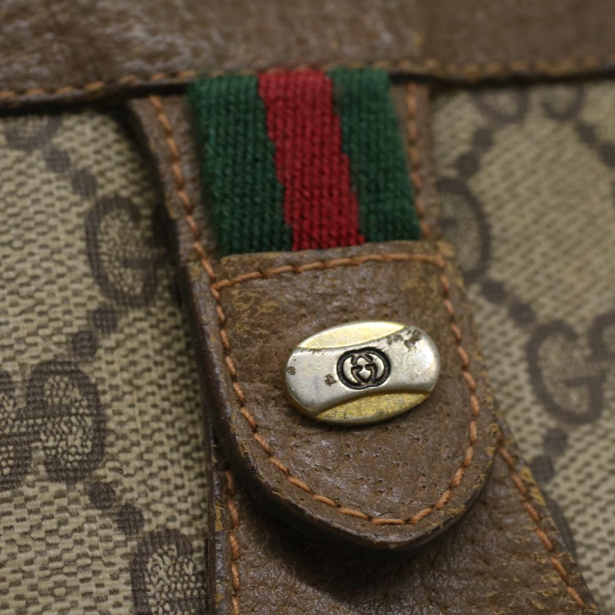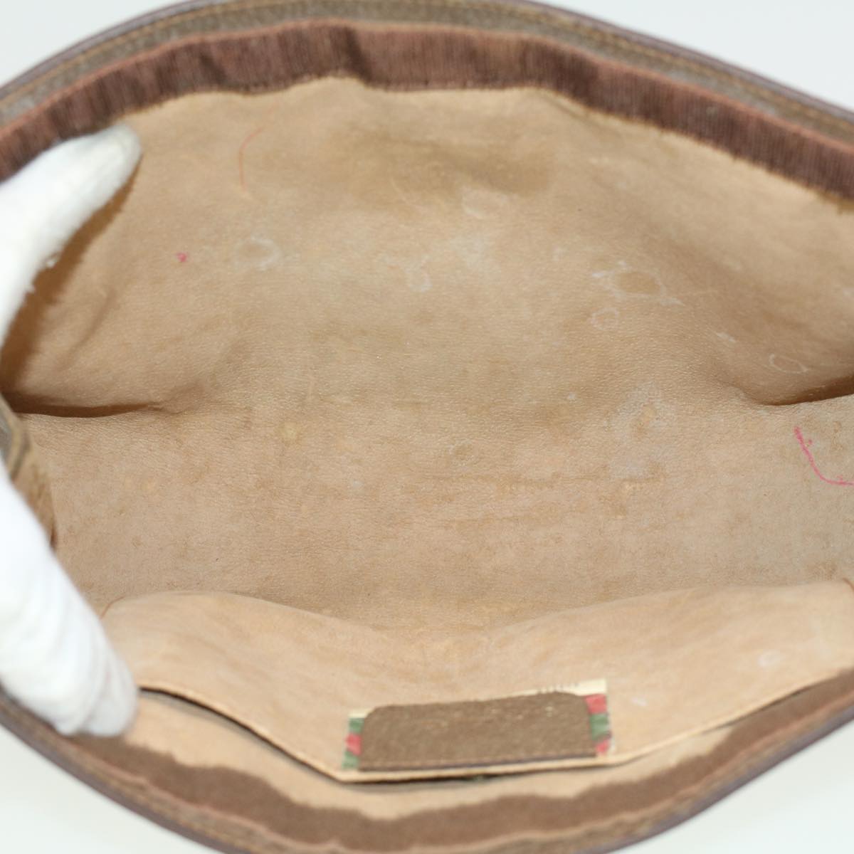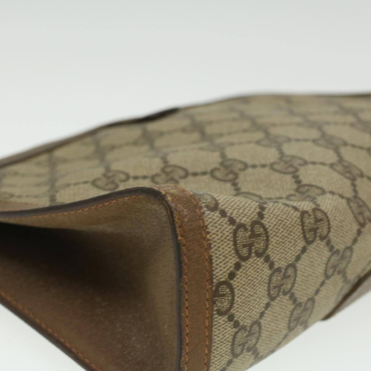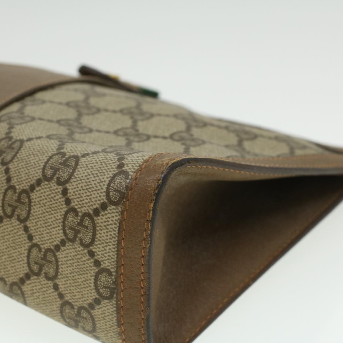 GUCCI Web Sherry Line GG Canvas Clutch Bag PVC Leather Beige Green th3181