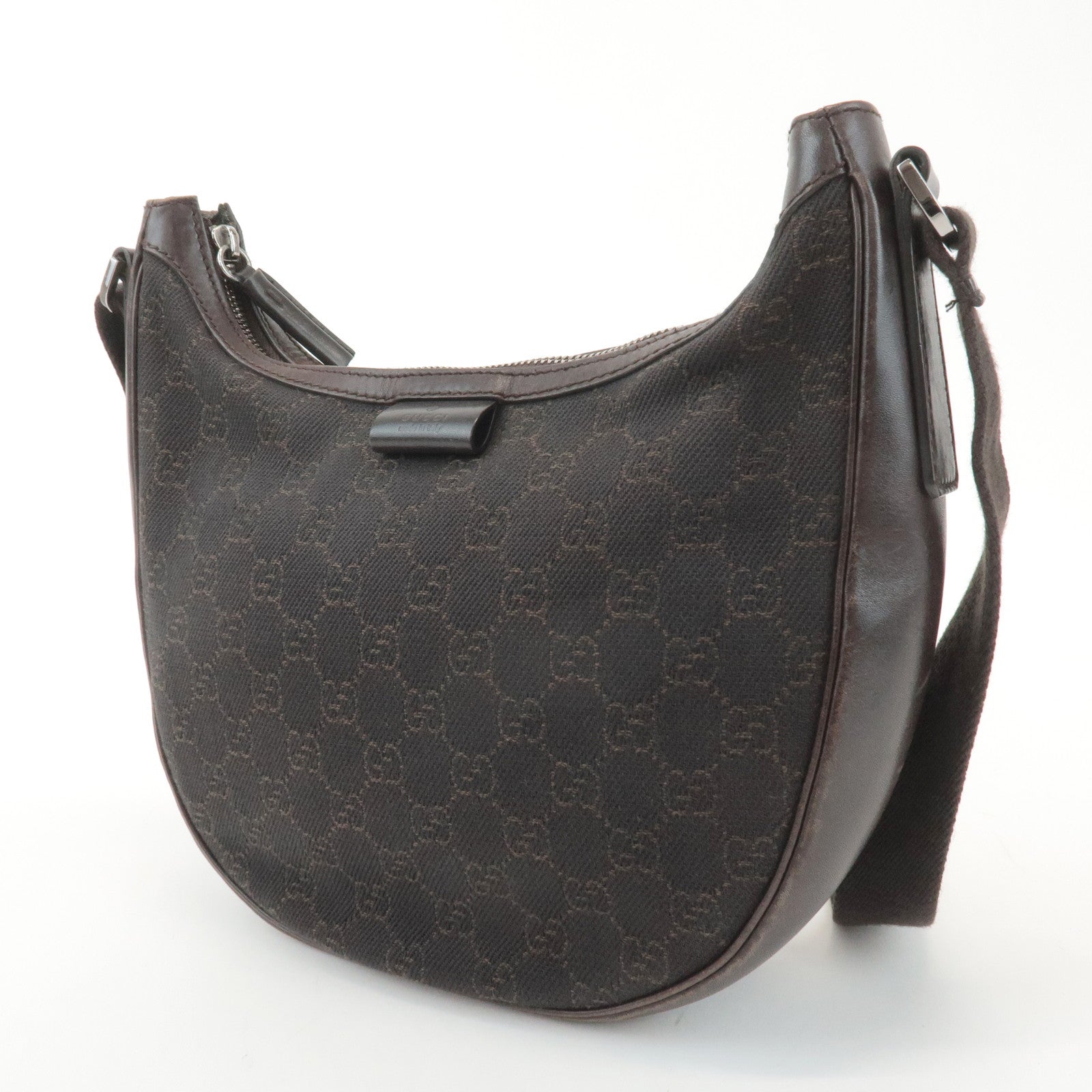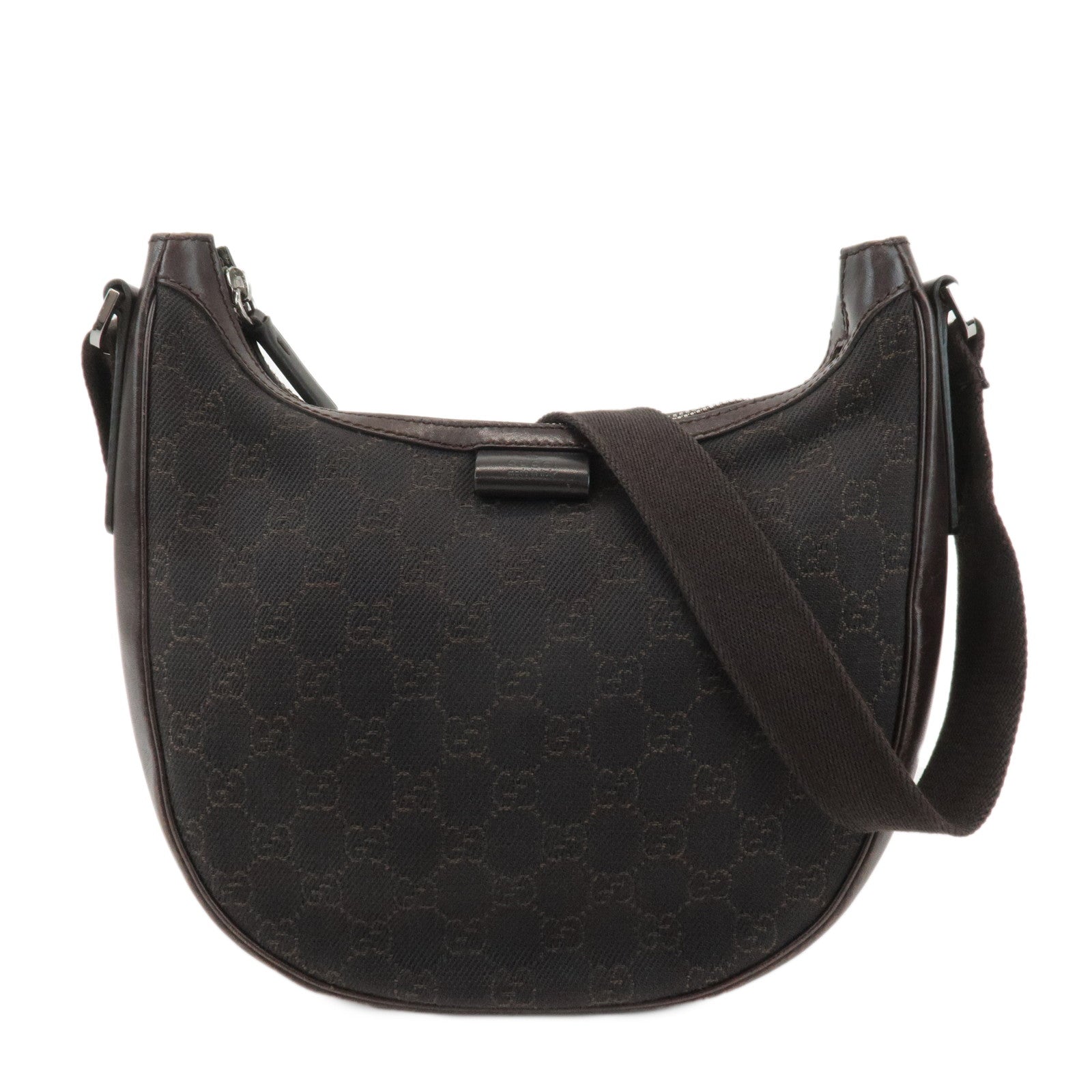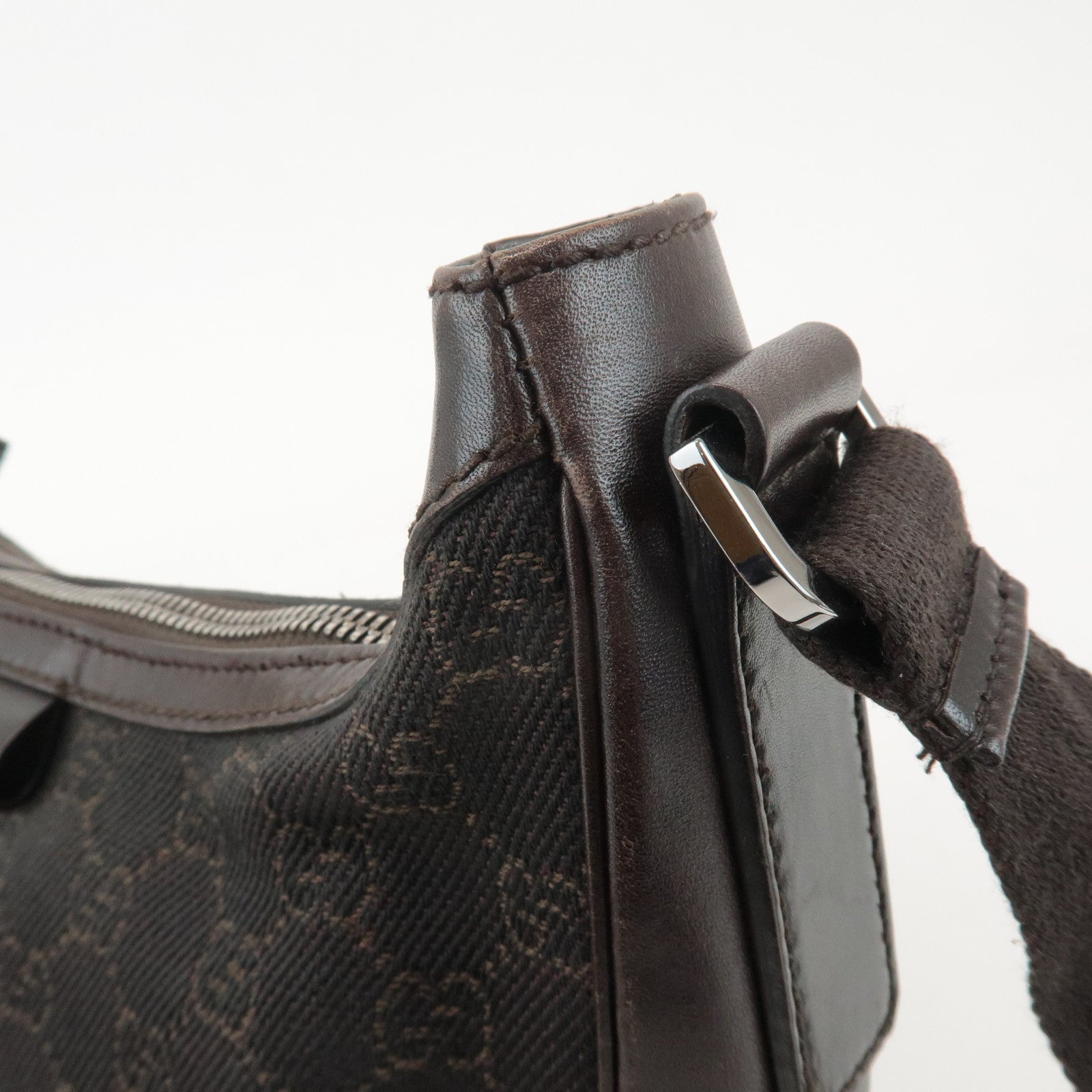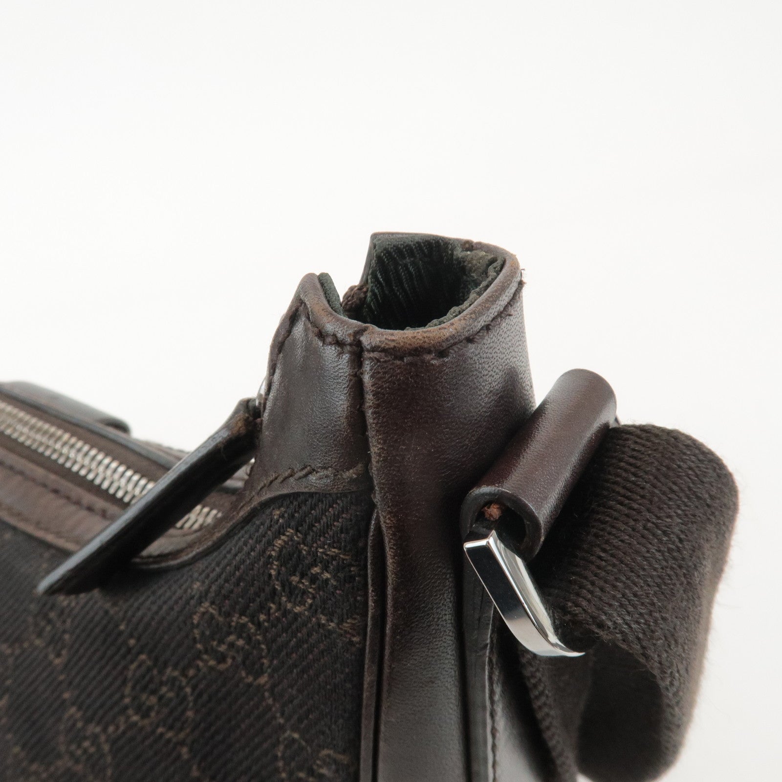 GUCCI GG Denim Leather Shoulder Bag Crossbody Dark Brownk