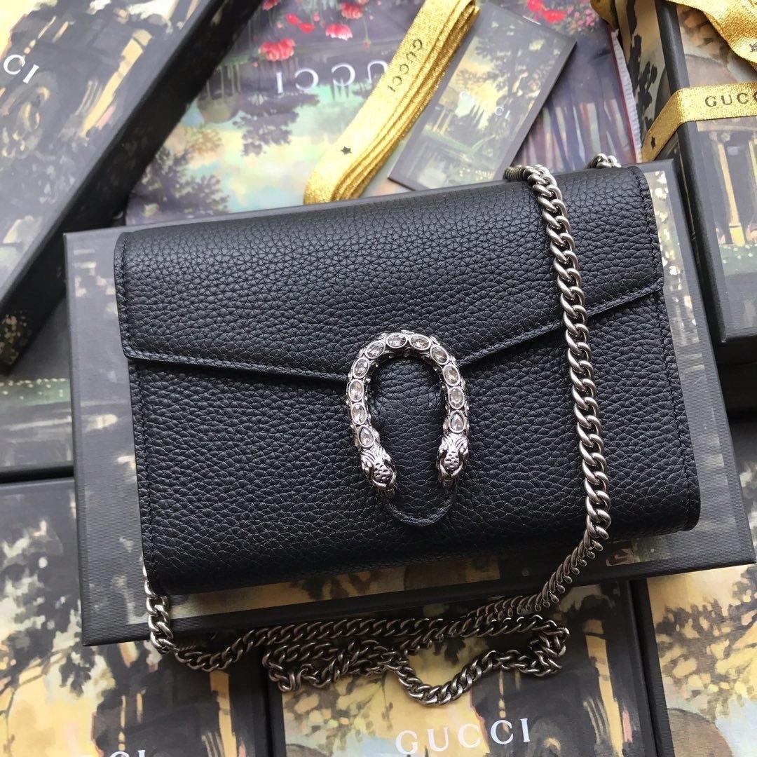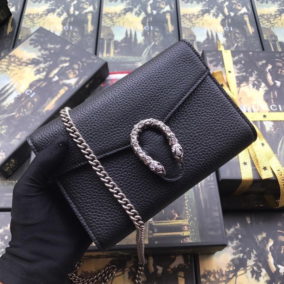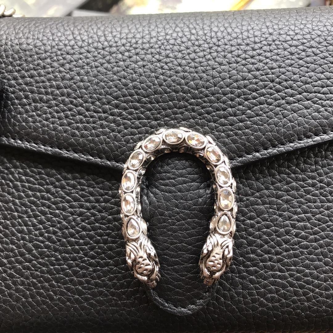 A structured leather chain super mini bag with a key ring that can be used to attach this bag to a separate larger bag. The closure has the textured tiger head spur closure-a unique detail referencing the Greek god Dionysus, who in myth is said to have crossed the river Tigris on a tiger sent to him by Zeus. The tiger head closure is enriched with crystal stones. Made in resistant textured leather.