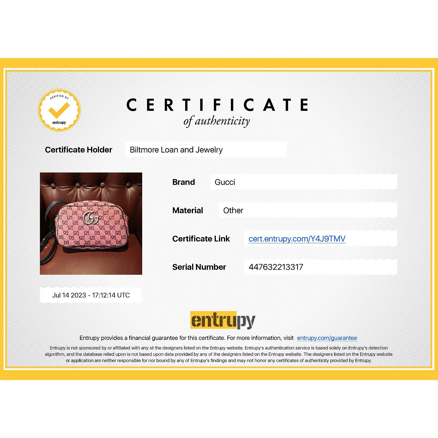 This Gucci GG Canvas Small Marmont Matelassé Crossbody Bag was made in Italy and it is finely crafted of a pink Gucci GG Monogram Matelassé canvas exterior with black leather trimming and silver-tone hardware features. It has a zipper closure that opens up to a spacious beige canvas interior with a slip pocket. It has an adjustable shoulder strap and it is also certified by Entrupy!