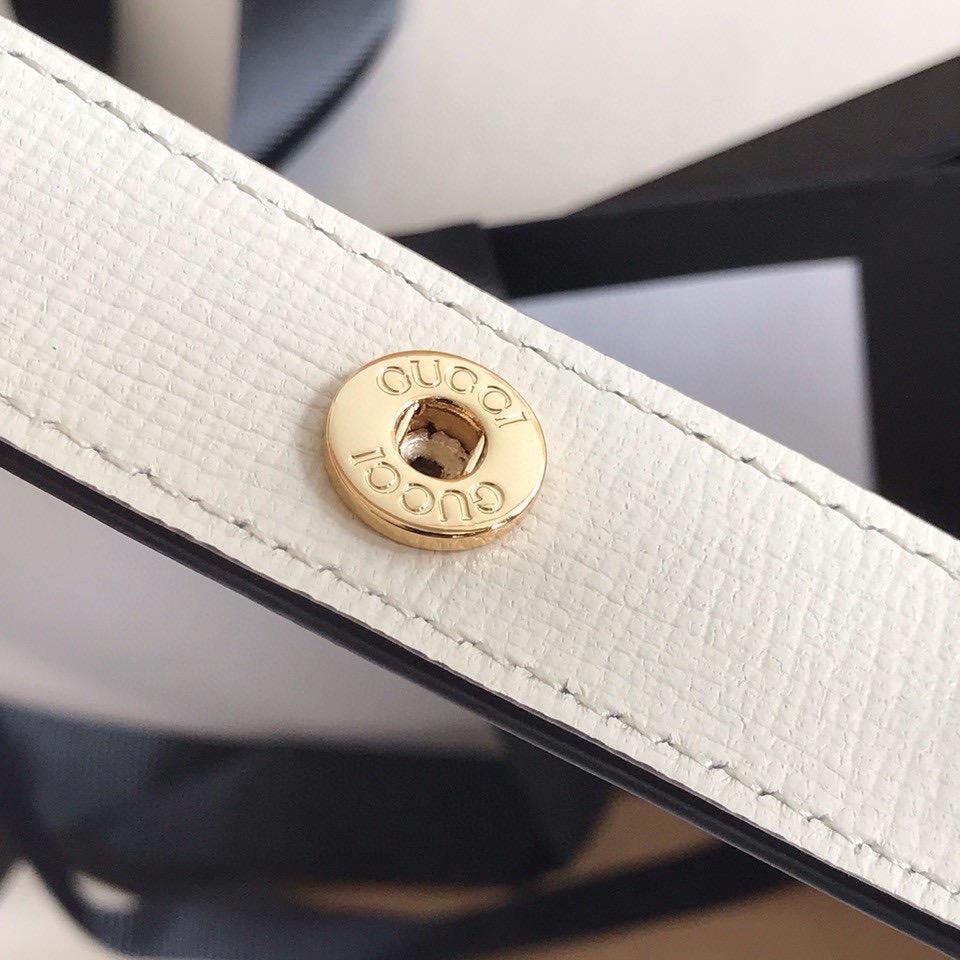 Petite versions of the Gucci Horsebit 1955 add a hybrid twist to the vintage inspired line. Enriched with two different shoulder straps, the mini bag’s character transforms from understated elegance with a tonal leather strap to a strong logo feel thanks to a red and green Web option. The accessory is presented in monogram canvas with a white leather trim.