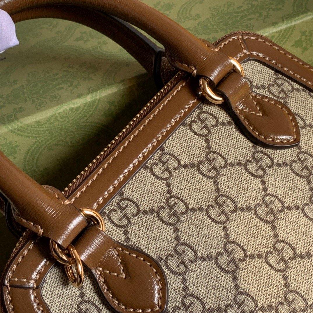 A new introduction to the Gucci Horsebit 1955 line, the mini top handle is crafted from the House's monogram canvas with contrasting brown leather details. The collection unifies details first introduced on the original bag that inspired the line from over six decades ago with a modern spirit, highlighting the Horsebit. Part of Gucci’s genetic code, the double ring and bar design has been established as one of the most distinctive elements among the House symbols borrowed from the equestrian world.