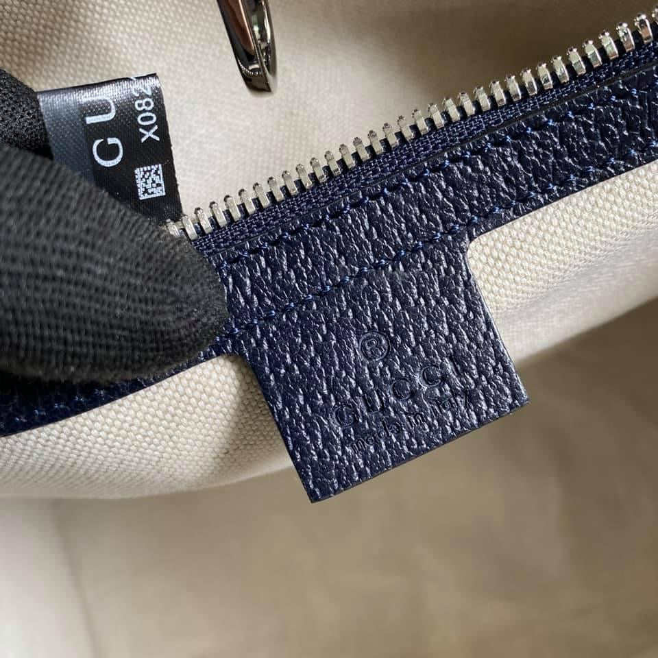 Embracing the new possibilities that lie within variations of the Gucci archives, various pieces throughout the collection provide a new lens through which to view the emblematic GG rhombi motif. Already an evolution of the House logo, it is once again reimagined in a series of bright colours—a theme that has become synonymous with the Creative Director’s vision. This large tote bag is part of the GG Multicolour collection.