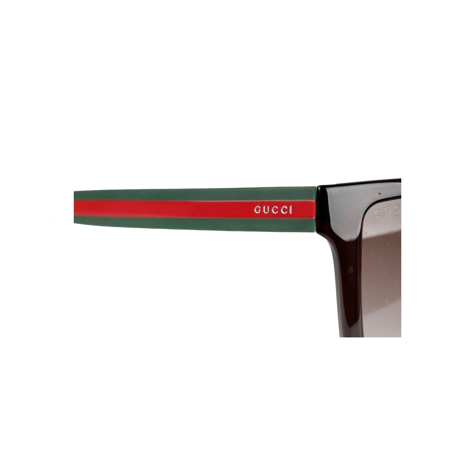 Invest in iconic style of Gucci with this GG 3535/S rectangle sunglasses. The signature red-green Web stripe on the temples and arms adds a unique touch, while the brown slim frame and gradient lenses give a sharp look. Perfect for those looking for a classic and bold accessory.