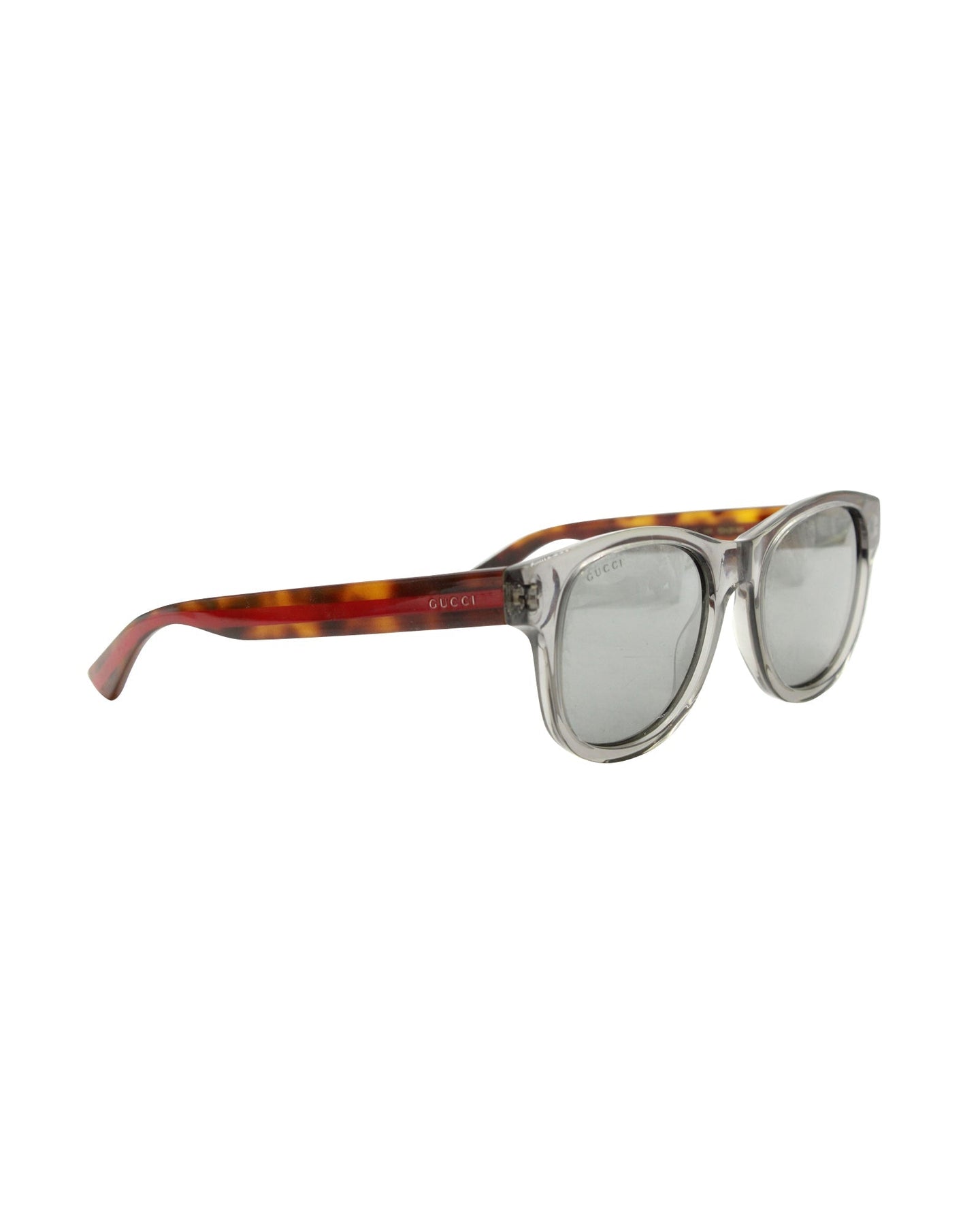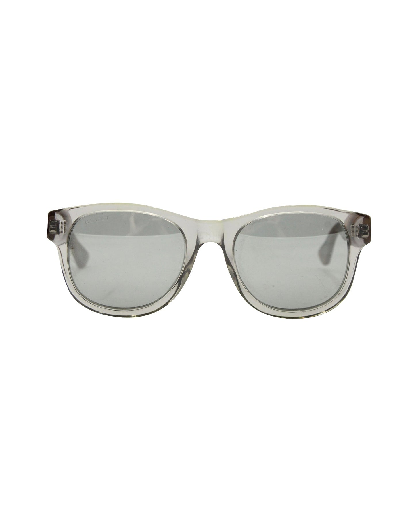Get a retro-modern look with these Wayfarer sunglasses from Gucci. Crafted from durable and lightweight acetate, the classic design is cut to create an sunglasses silhouette for our favorite face shapes. Includes case.Gucci Wayfarer GG0044SA Sunglasses in Grey AcetateCondition - goodMaterial - AcetateSize - width - 14.5cm temple length - 15.5 cm lens width - 5.5cm lens length - 5.5cmWidth - 145mmLength - 155mmSign of wear - box is in bad condition scratches throughoutSKU - 278146