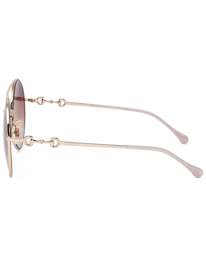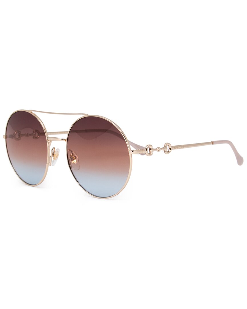 Elevate your style with these Gucci Women's 59mm Sunglasses. The round gold frames with red gradient lenses are sure to make a statement. These sunglasses flatter a variety of face shapes and provide 100% UV protection. Made in Italy, these Gucci sunglasses come with a case (size and color may vary) for safekeeping. Embrace Italian luxury redefined with these eclectic and coveted sunglasses from Gucci. Add a touch of sophistication to your look with these stylish and chic frames.