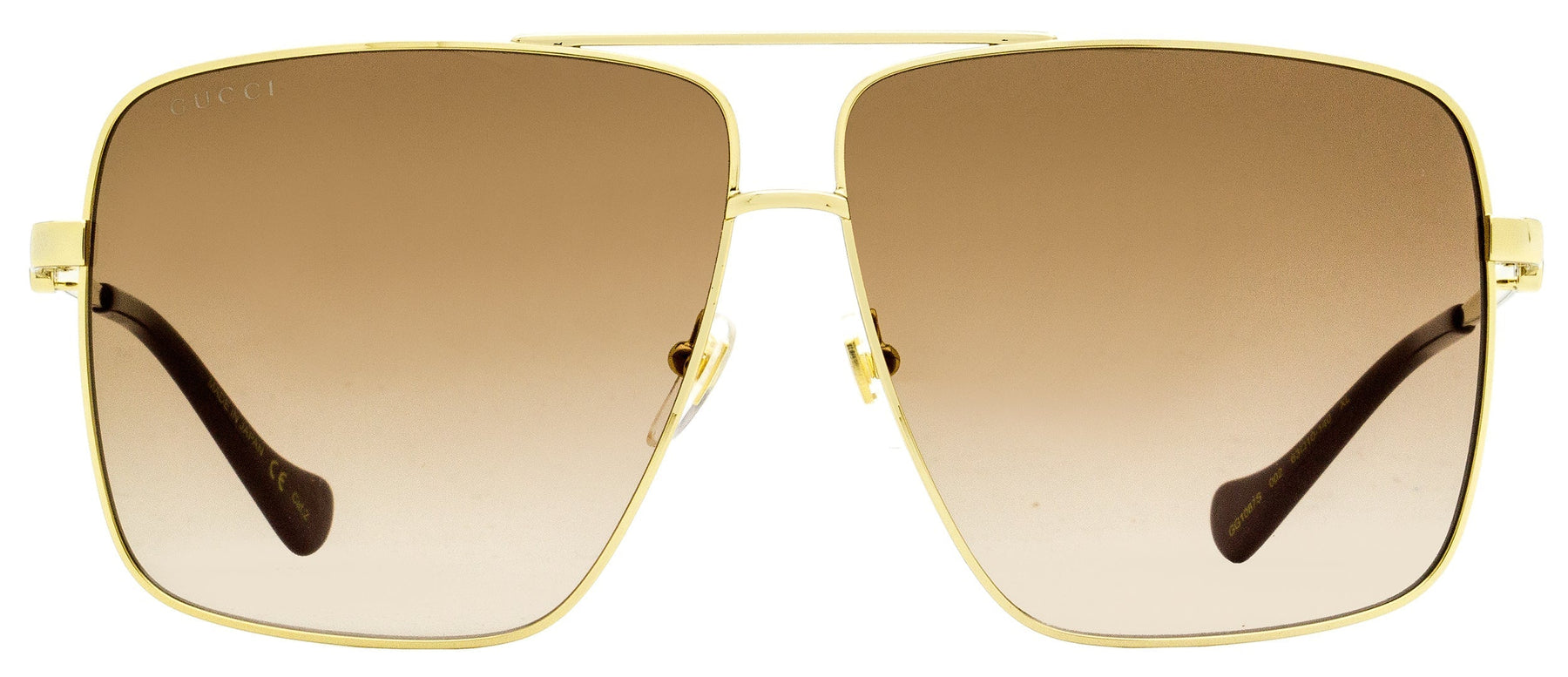 The Gucci GG1087 Sunglasses feature a bold metal square shape for women. Inspired by iconic Gucci designs, these sunglasses feature a removable chain that is attached behind the GG interlocking logo. Crafted of the highest quality materials, Gucci's world renowned brand and bold designs have made their Sunglasses exceptionally desirable. Providing 100% UV protection from the suns harmful rays these sunglasses are functional in addition to being fashionable. Frame Material - Metal/Plastic (Injected) Frame Color - Gold/Purple Lens Color - Brown Gradient Size - 63-10-140 Made in Japan Includes original case and cloth