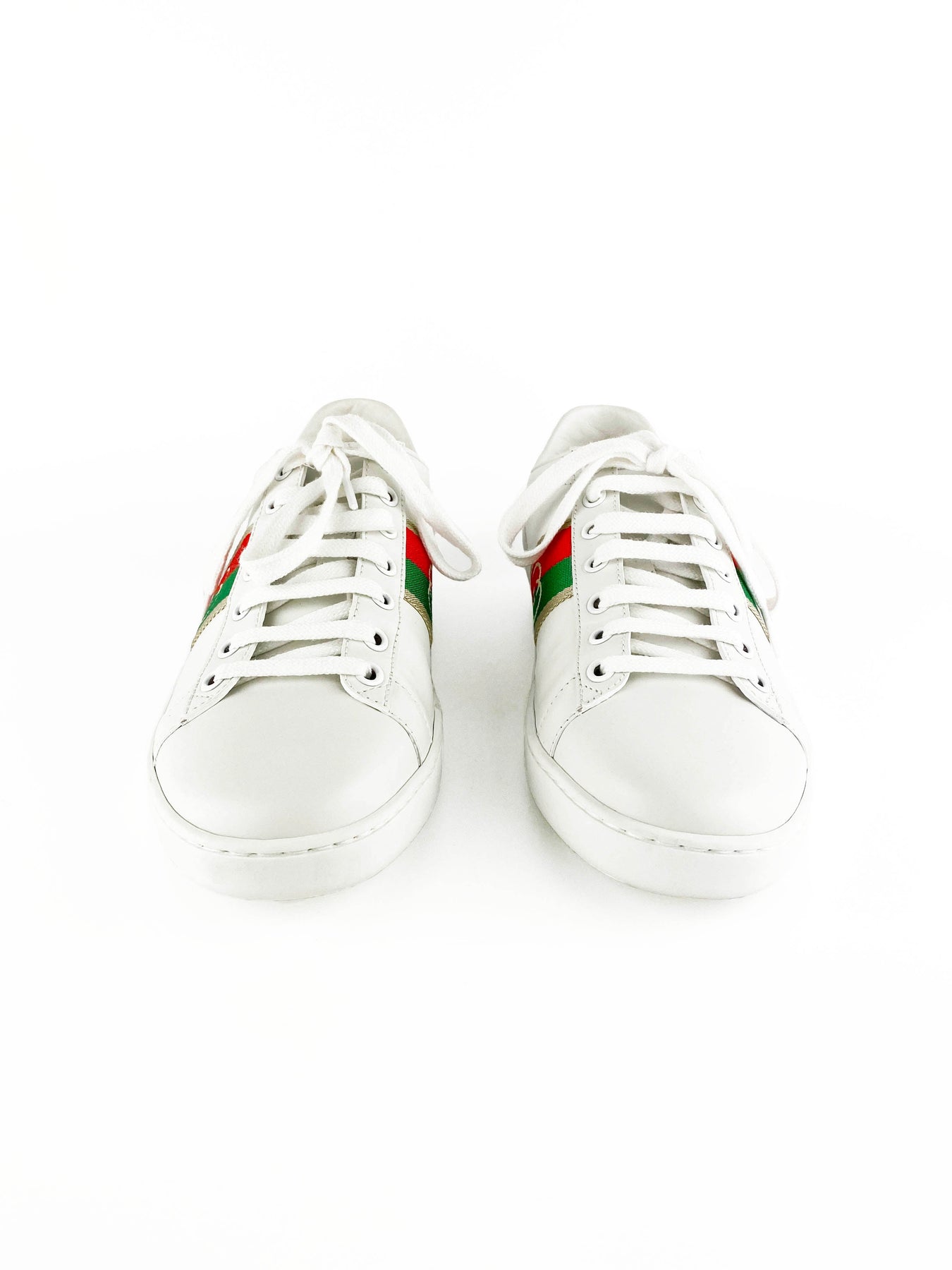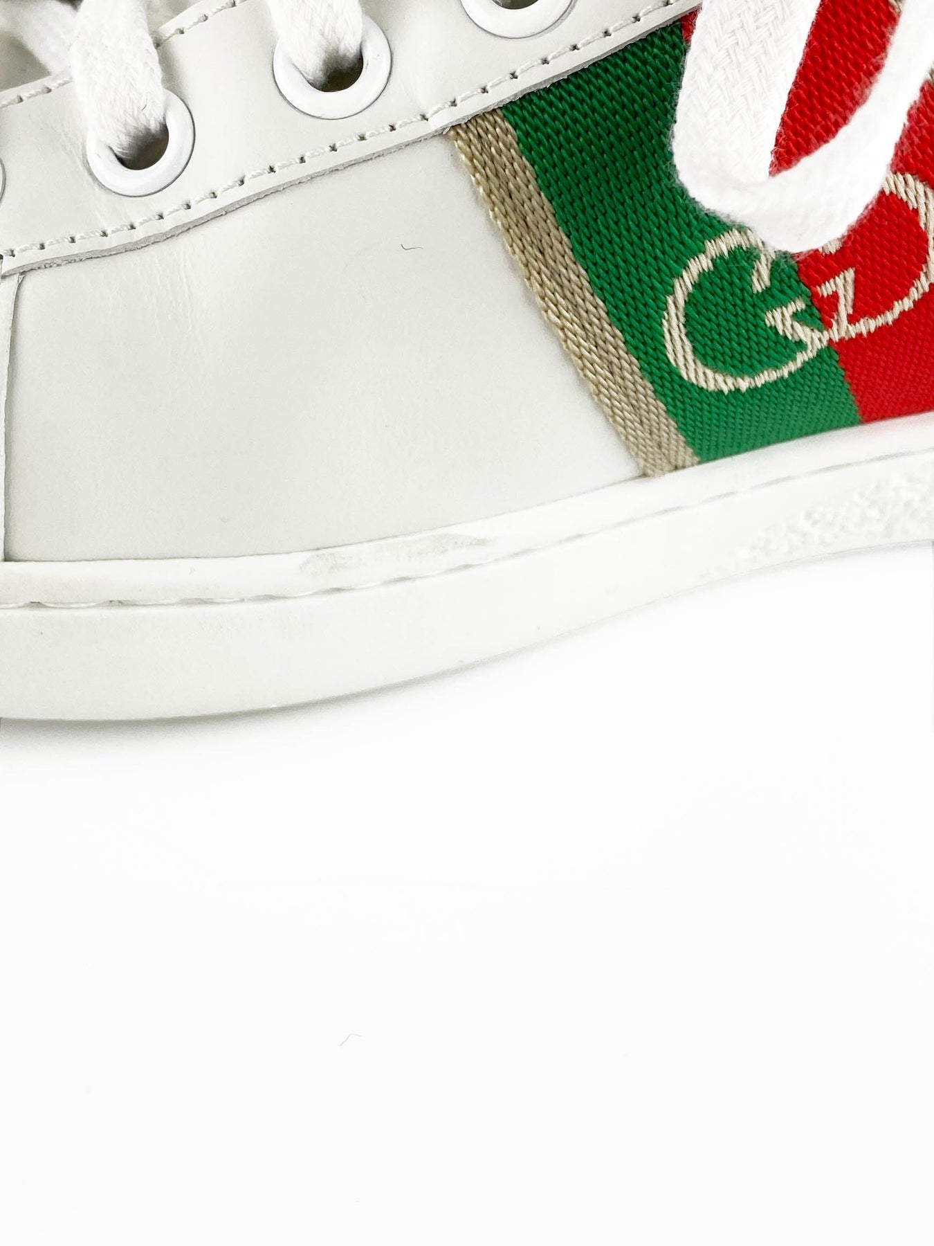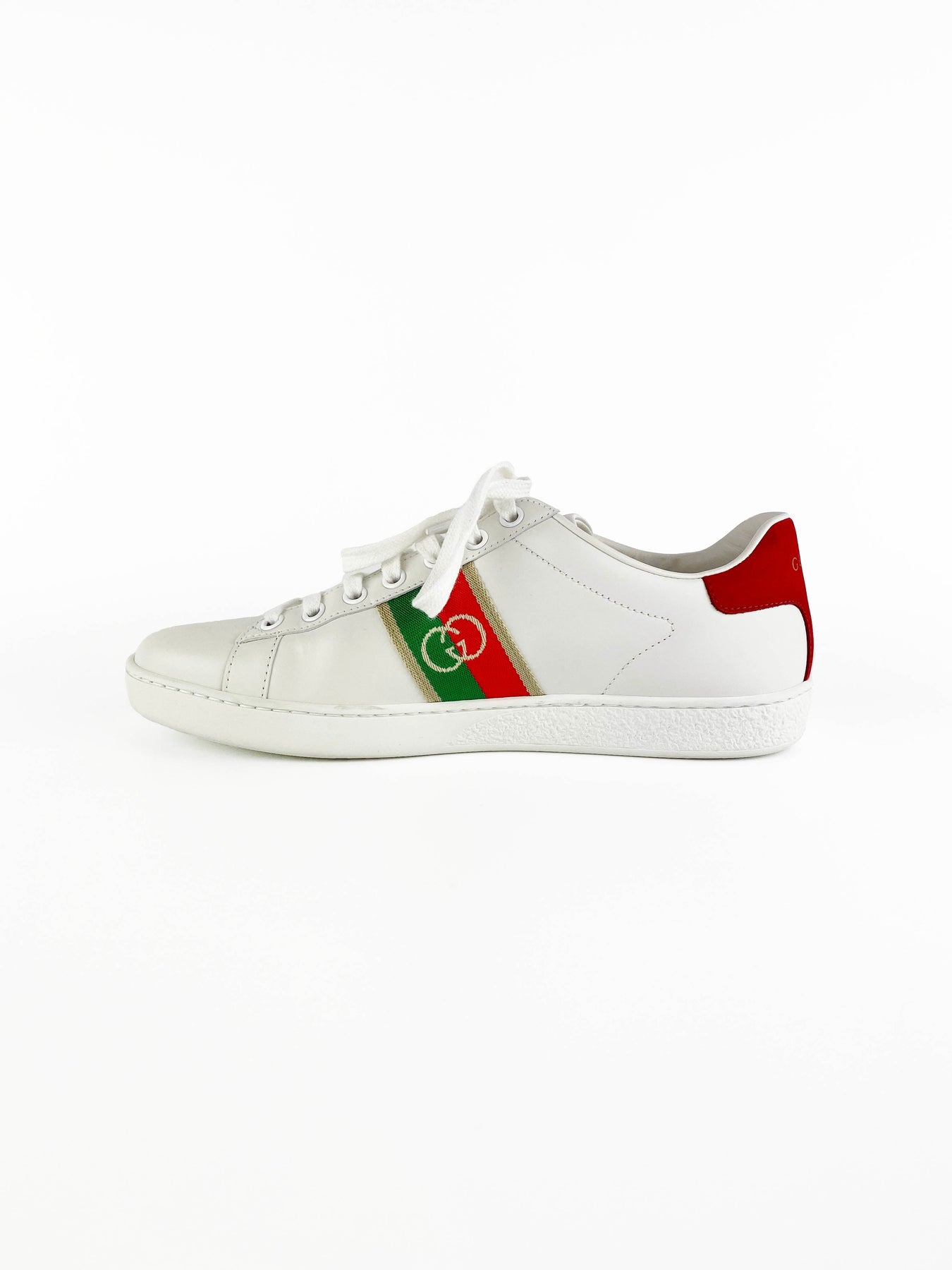 Description : These sporty Gucci sneakers with stitched interlocking G are perfect for dressing up or dressing down. In excellent condition.
