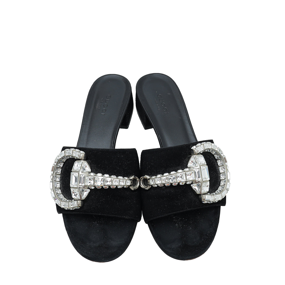 • Material: Black Suede with Crystal Horsebit Details