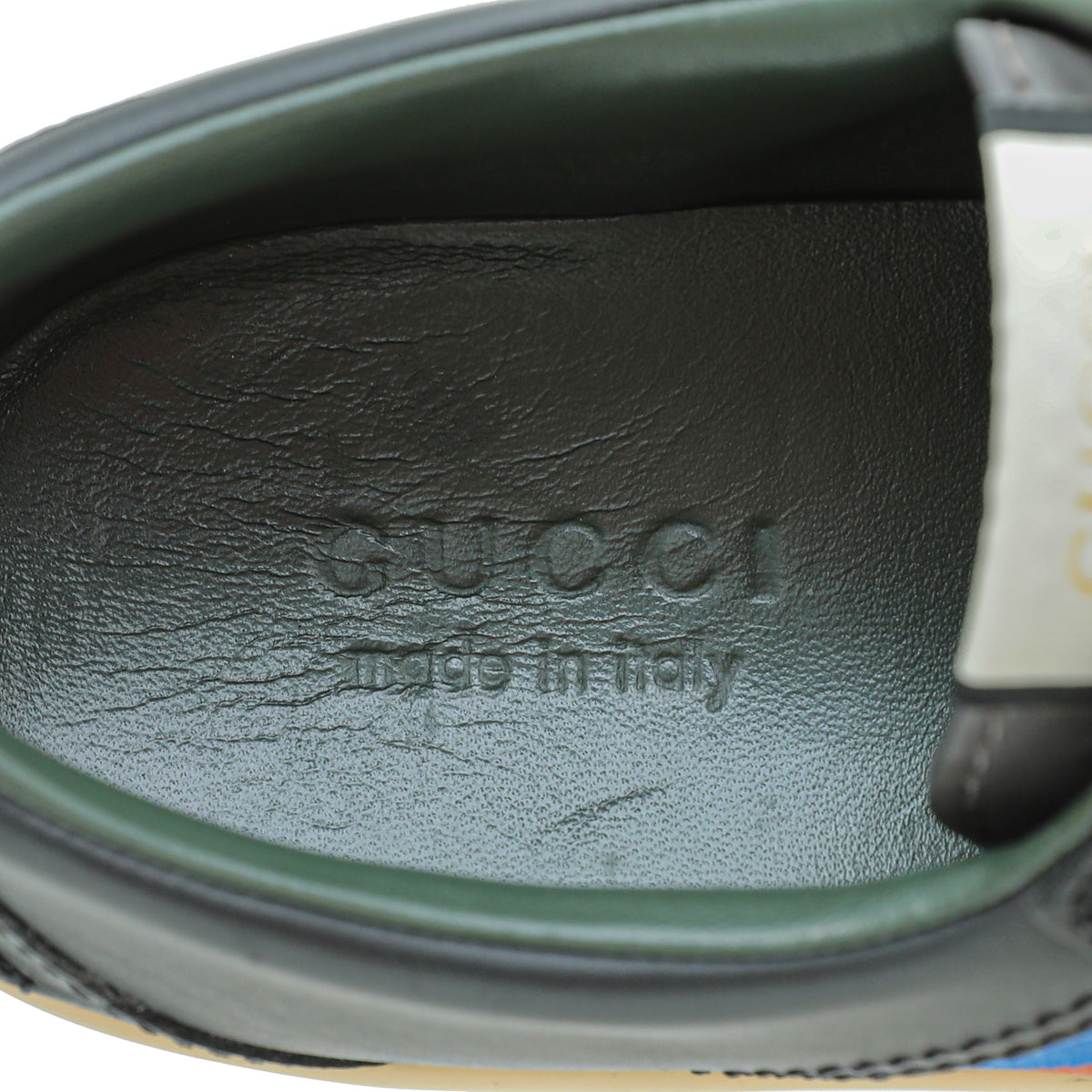 • Material: Black/Grey Leather with Blue/Red Web Detail
