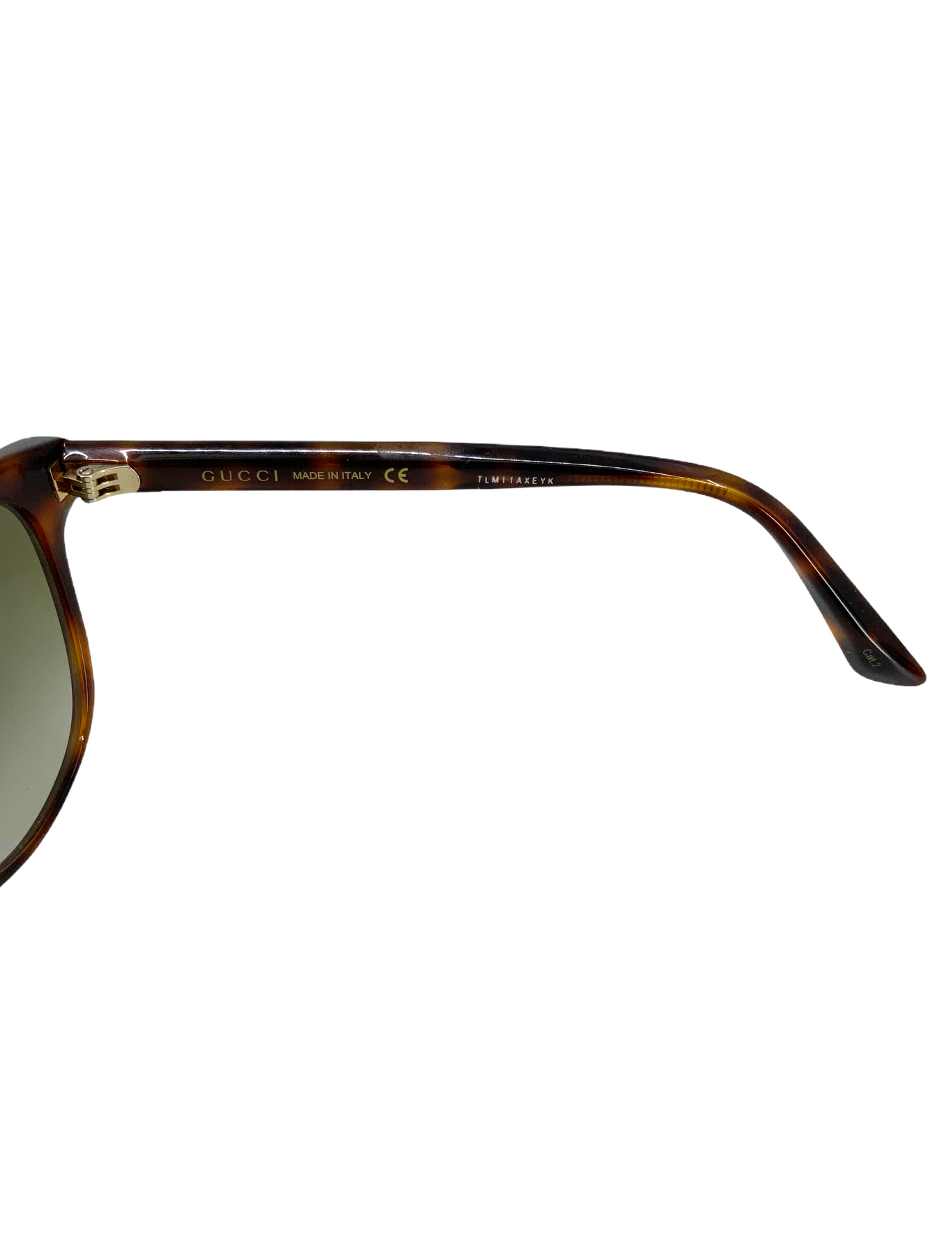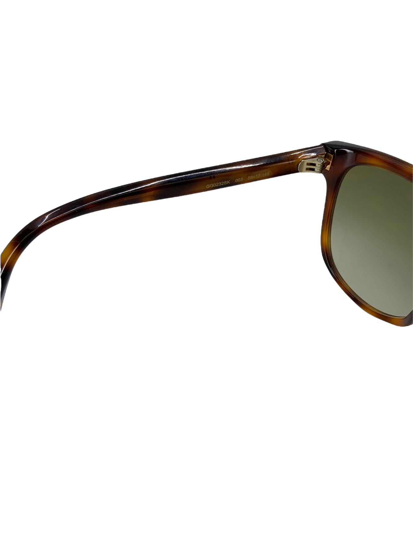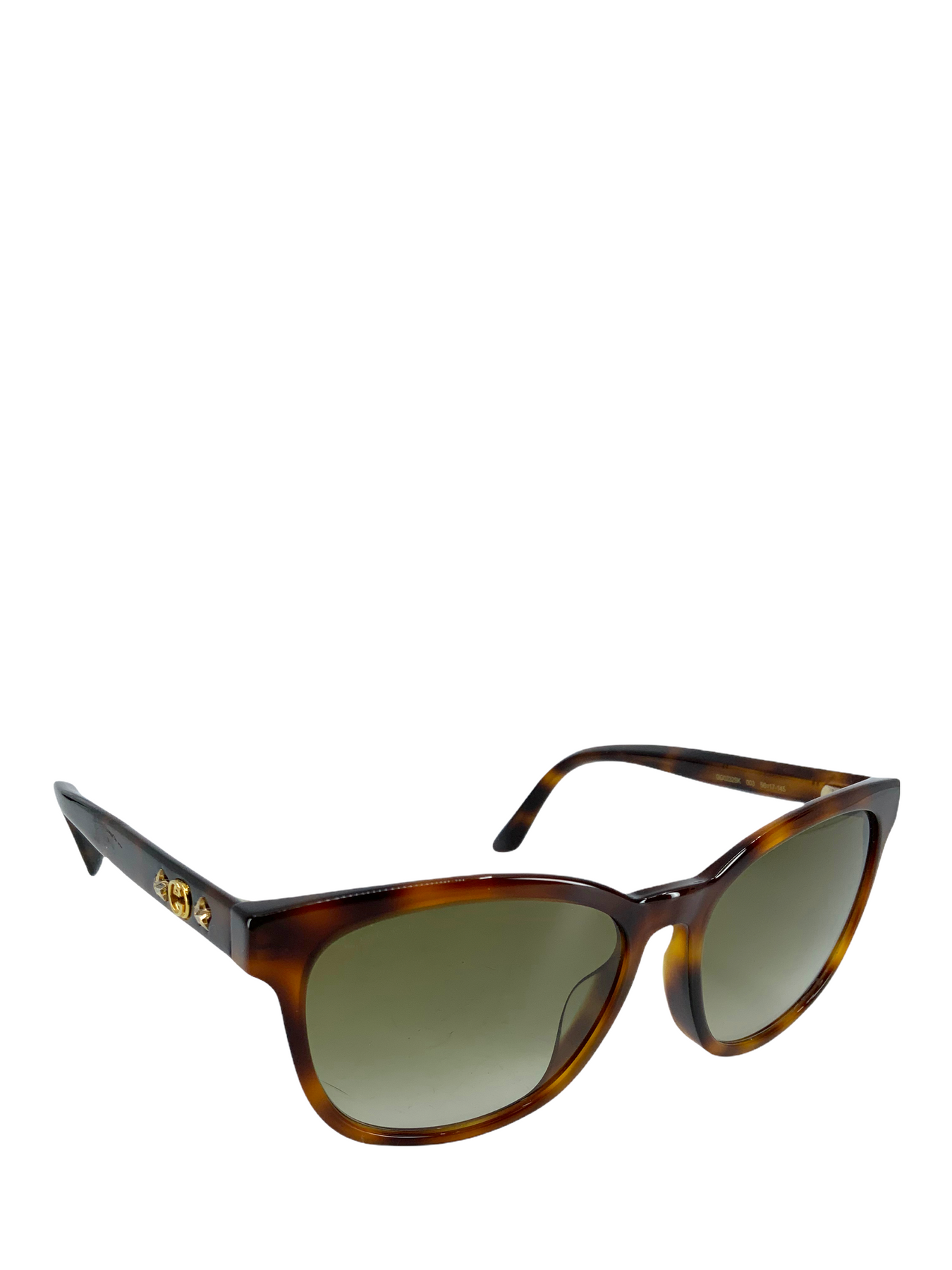 Add to your collection this d pair of GUCCI Round Frame Star Sunglasses GG0232SK featuring brown oversize oval frames with star-shaped crystals and signature 'GG' logos at the temples and on the arms.