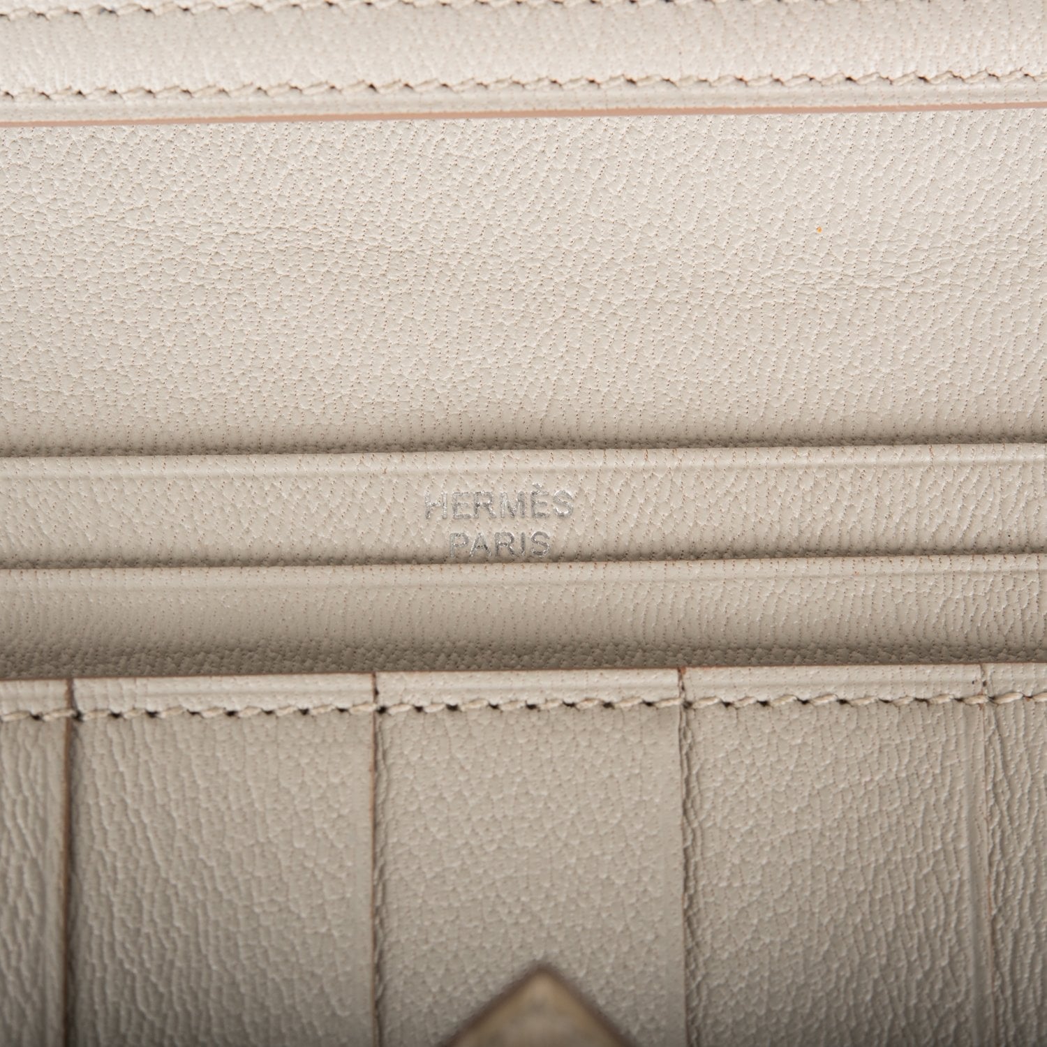 The interior is lined with Beton chevre and has five credit card slots, two flat currency/notes pockets and a zipper change compartment.