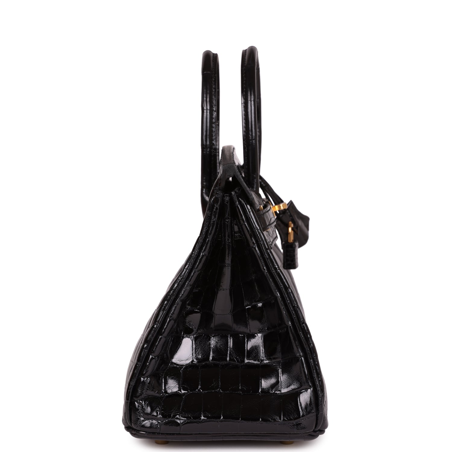 Hermes Birkin 25 Black Shiny Niloticus Crocodile Gold Hardware