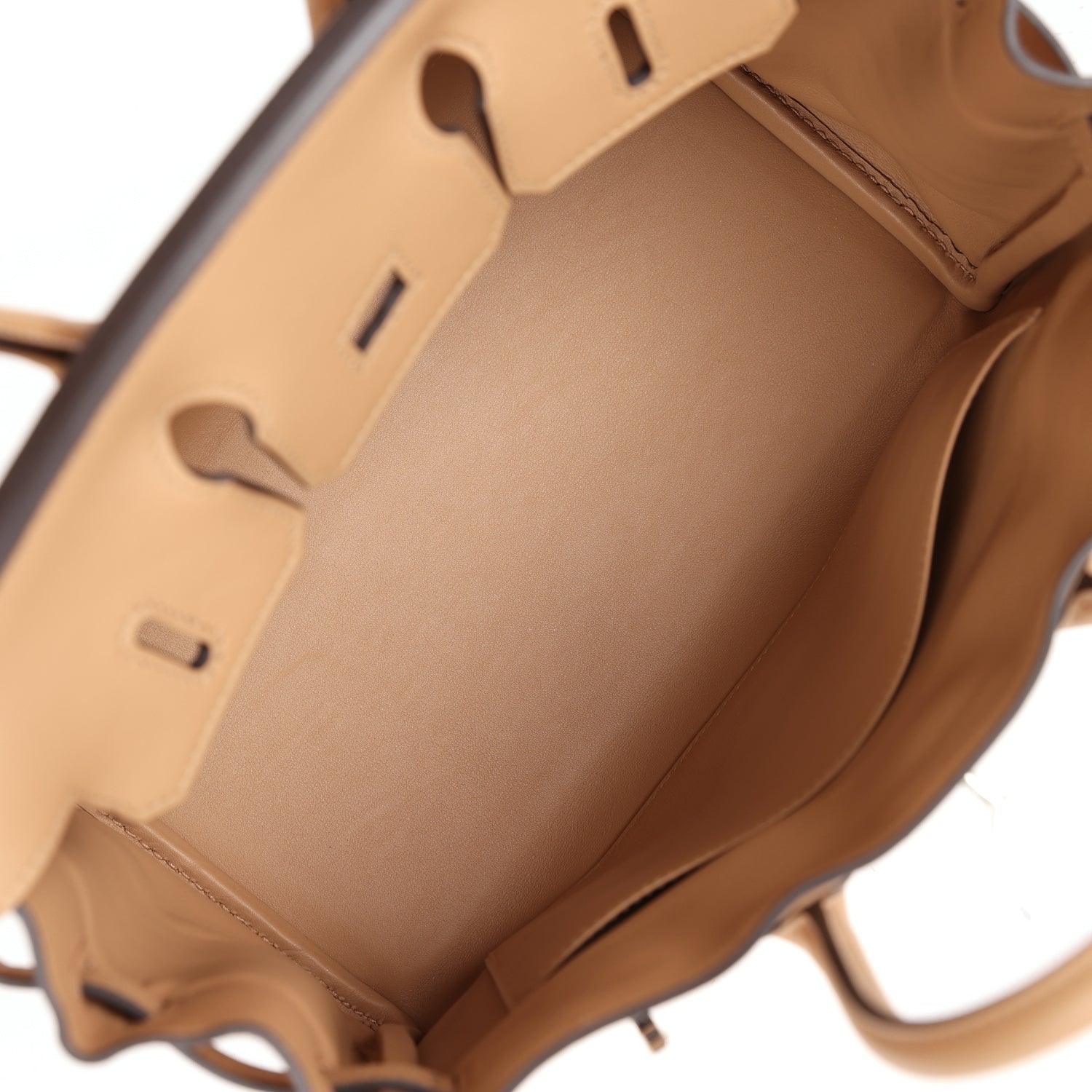 The interior is lined with Chai swift and has one zip pocket with an Hermes engraved zipper pull and an open pocket on the opposite side.