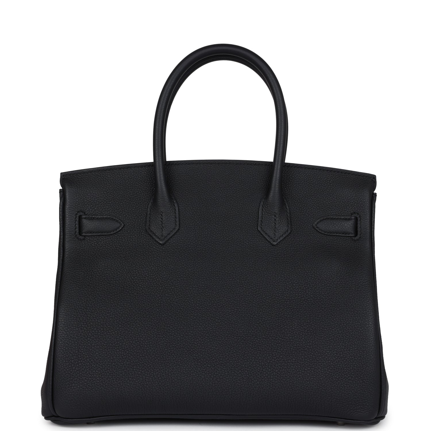 This Birkin is in Black togo leather with palladium hardware and has tonal stitching, front flap, two straps with center toggle closure, clochette with lock and two keys, and double rolled handles.