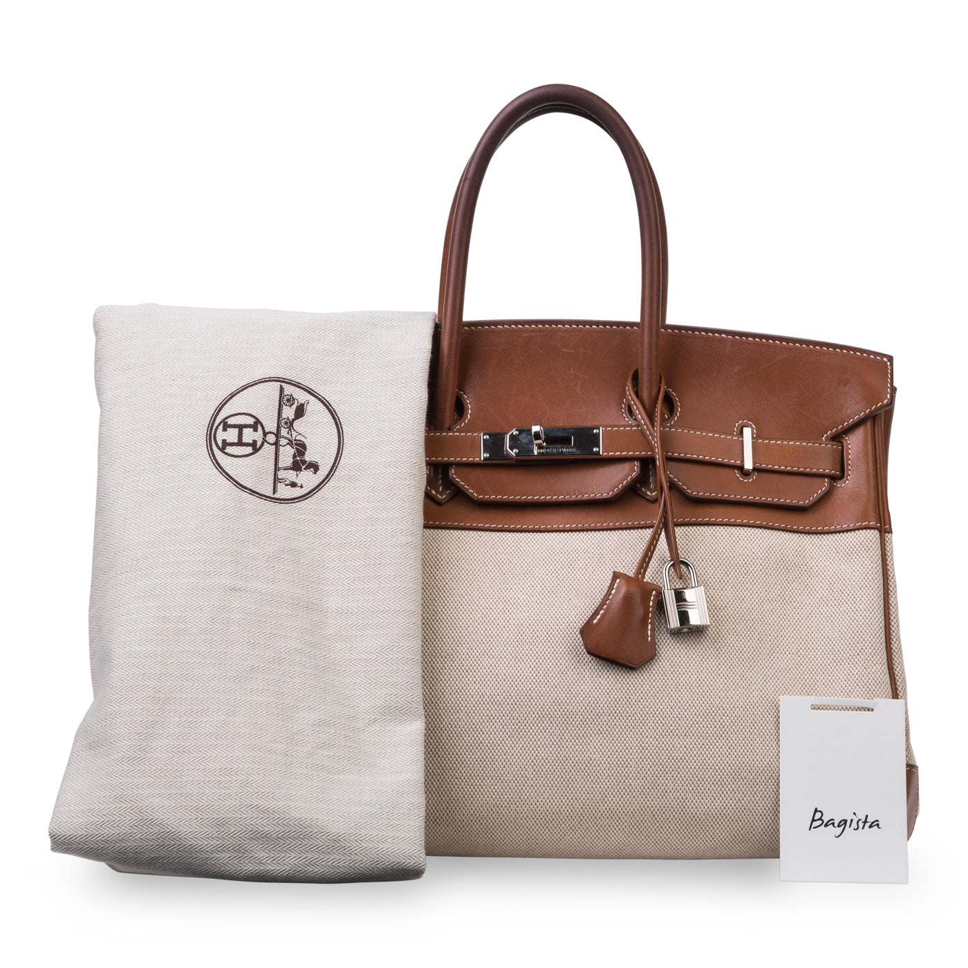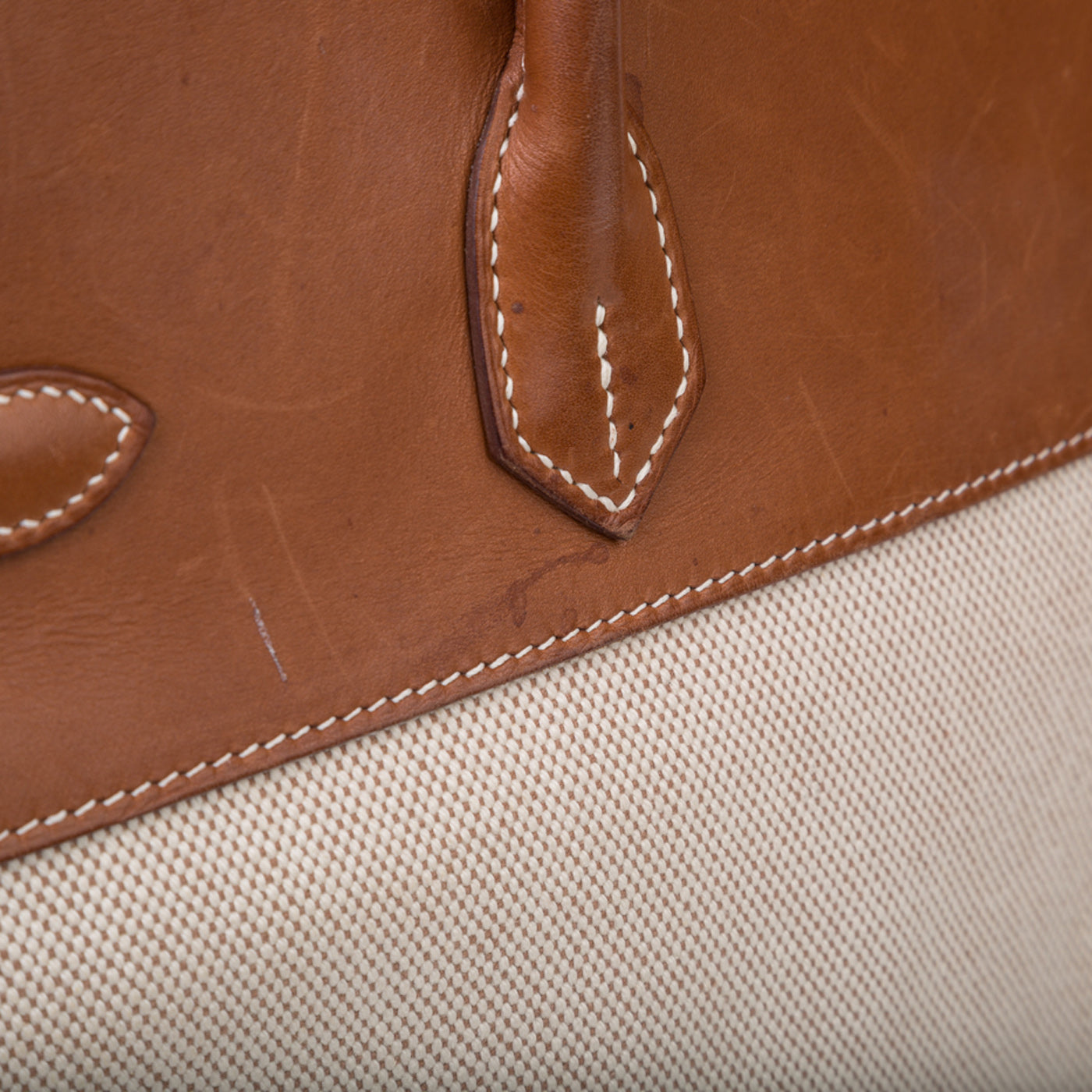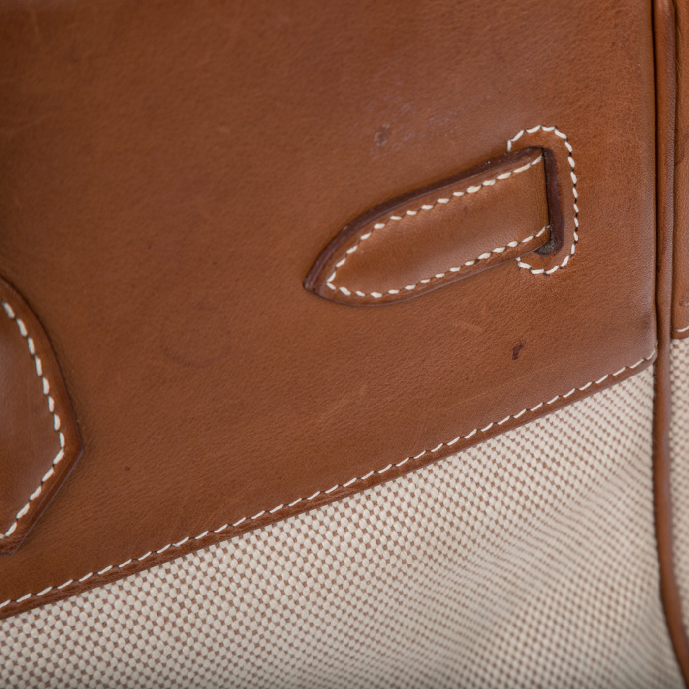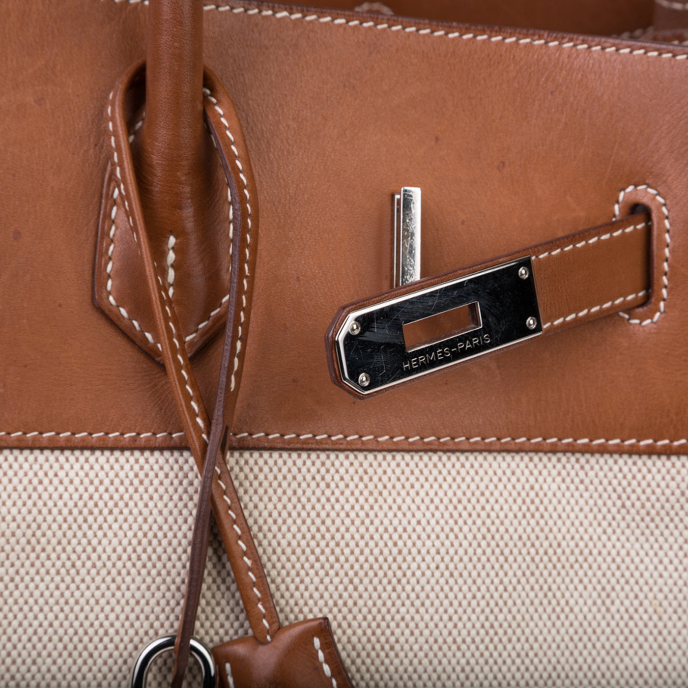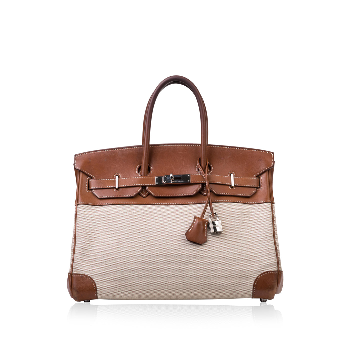 The Hermès Birkin is among the most famous bags in the world. First created in 1983 after Jean-Louis Dumas met Jane Birkin on a flight from Paris to London. In the short flight, Birkin explained that she needed a bag which was spacious enough for everything she needed to carry, with plenty of pockets as well. He sketched the first bag there and then, and the rest is history. Thirty-four years later, this bag has been created in a huge variety of styles and materials. This version of the Birkin is crafted out of beige Ecru canvas with brown Barenia leather features, and finished with palladium hardware.
