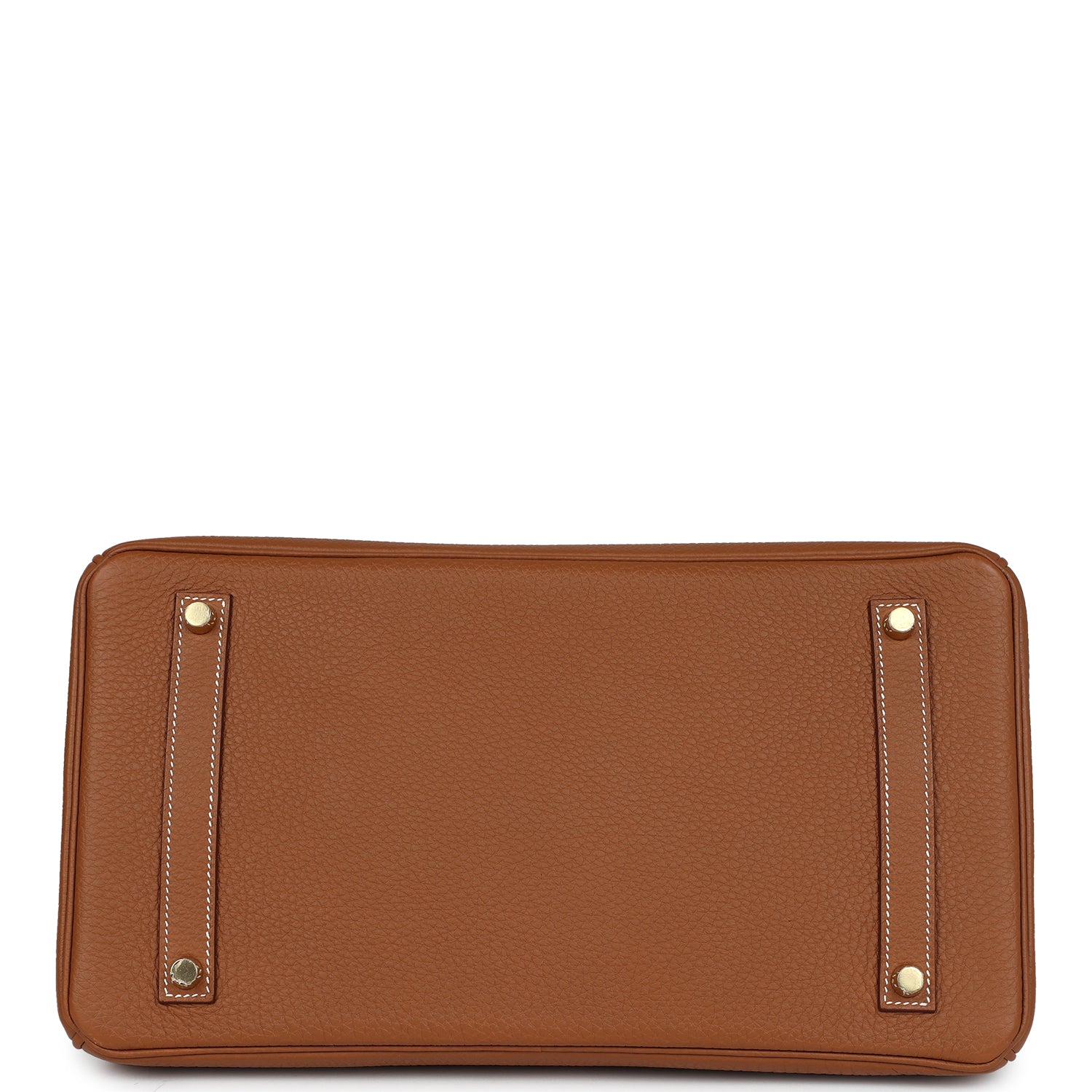 This Birkin is in Gold togo leather with gold hardware and has contrast stitching, two straps with front toggle closure, clochette with lock and two keys and double rolled handles.
