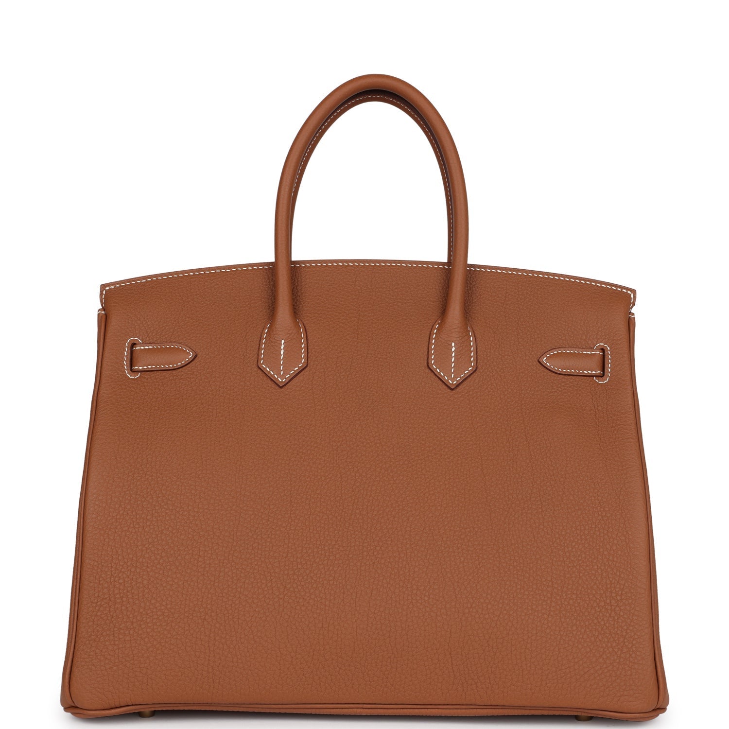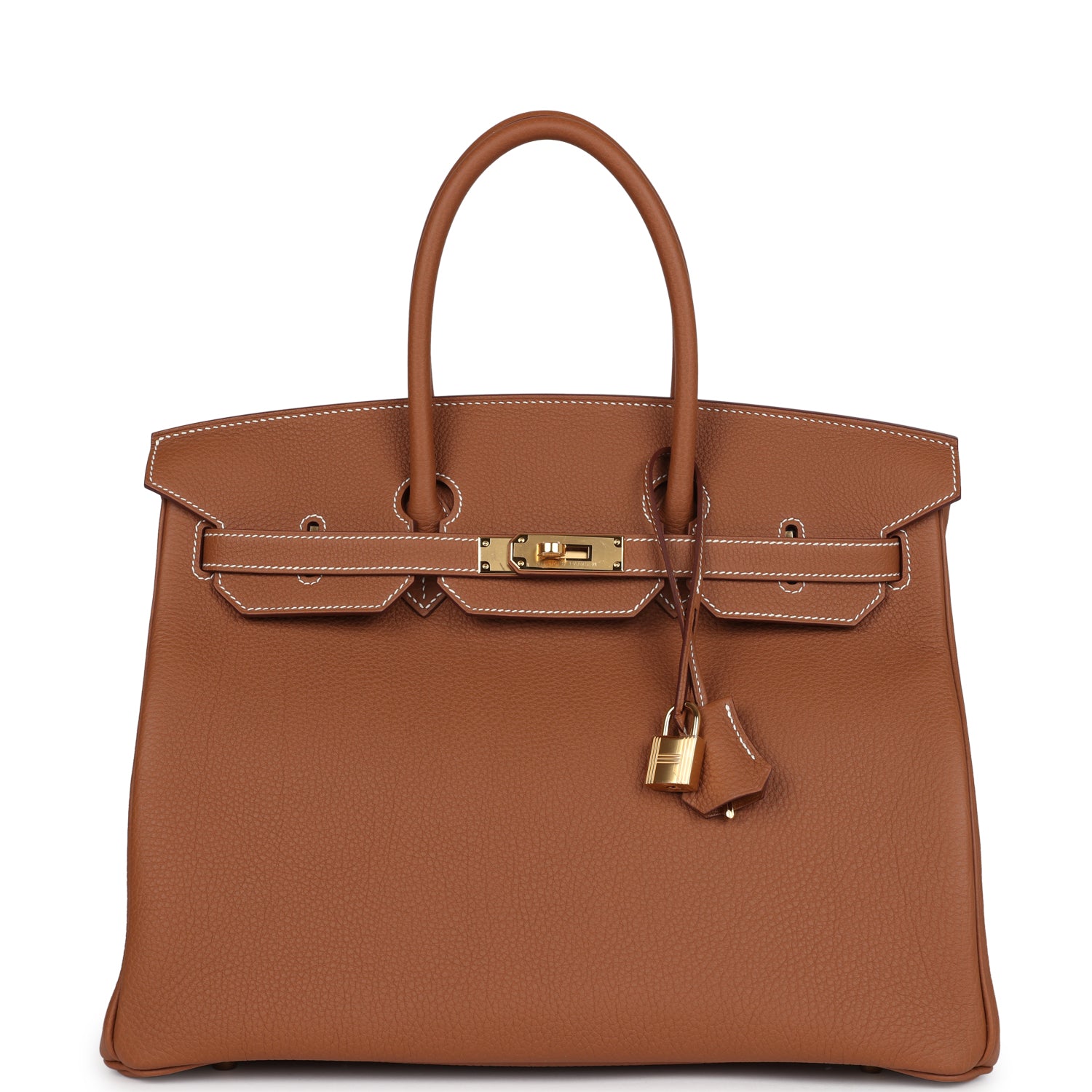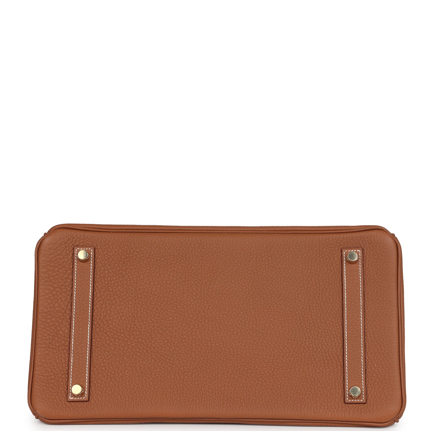 This Birkin is in Gold togo leather with gold hardware and has contrast stitching, two straps with front toggle closure, clochette with lock and two keys and double rolled handles.