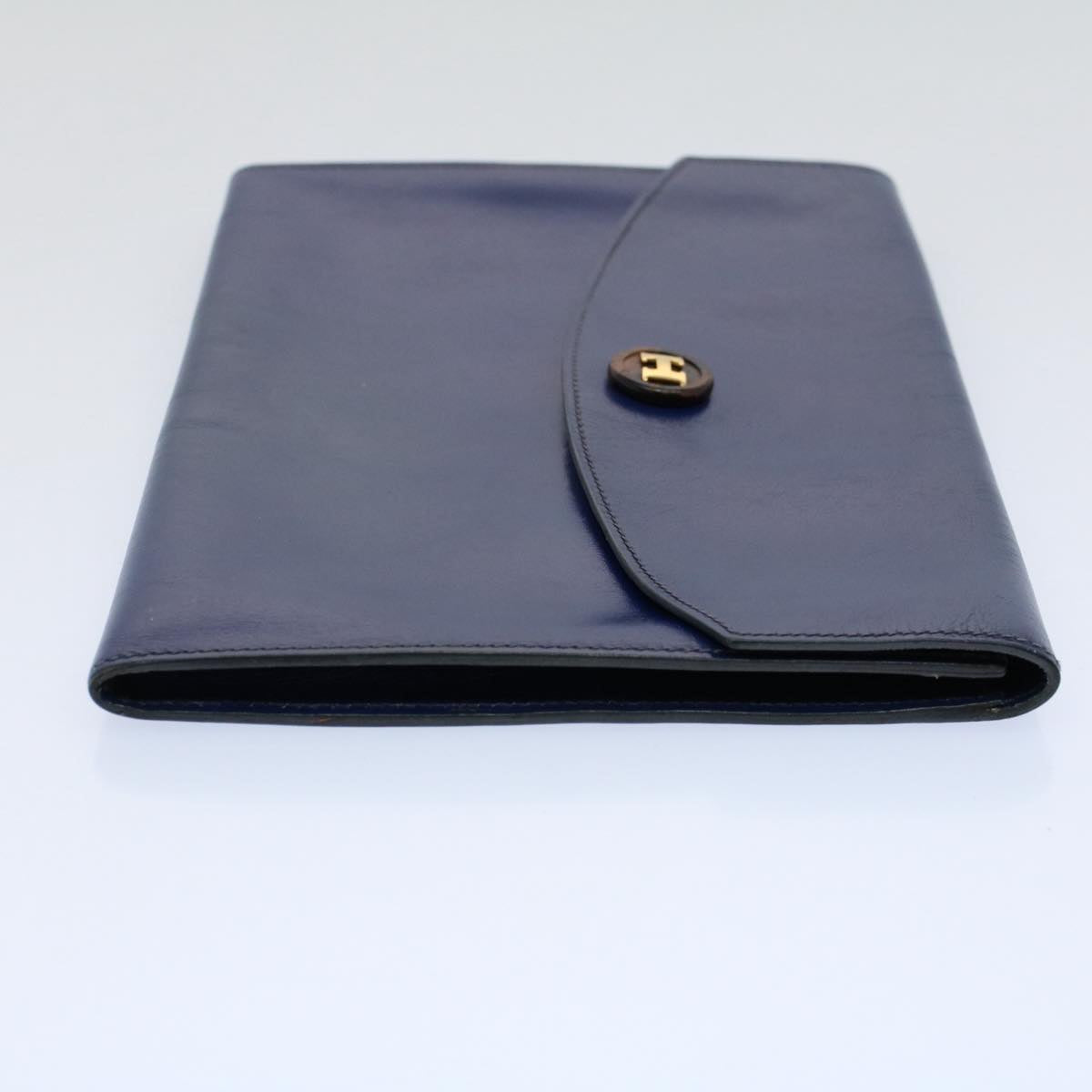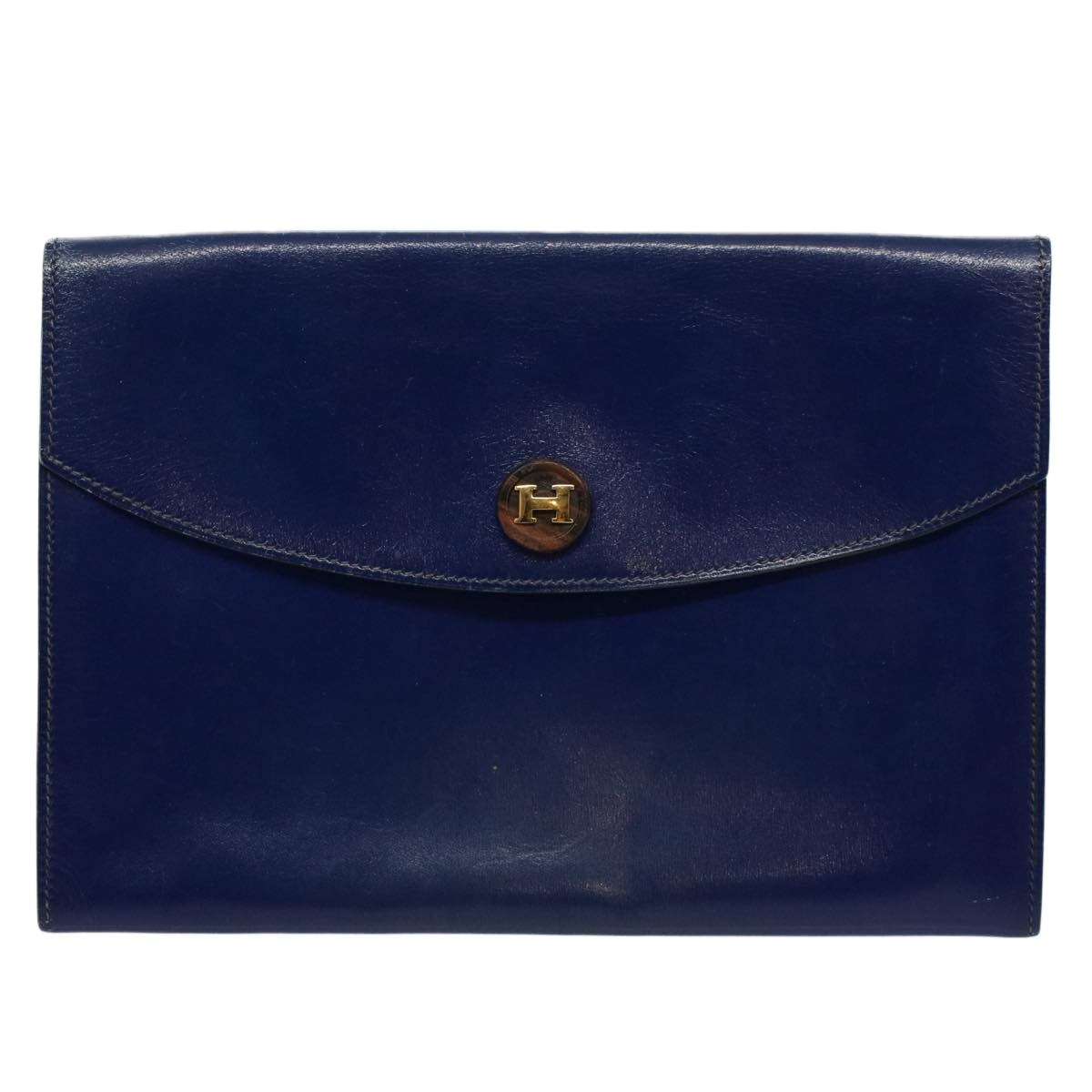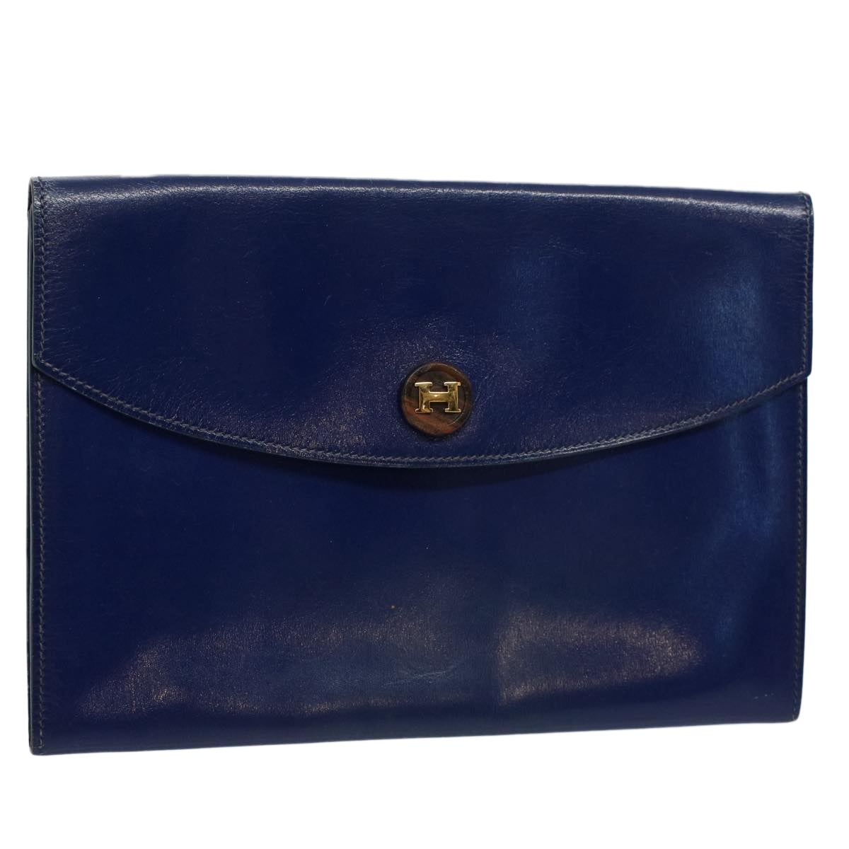 HERMES Clutch Bag Leather Blue Auth bs10101