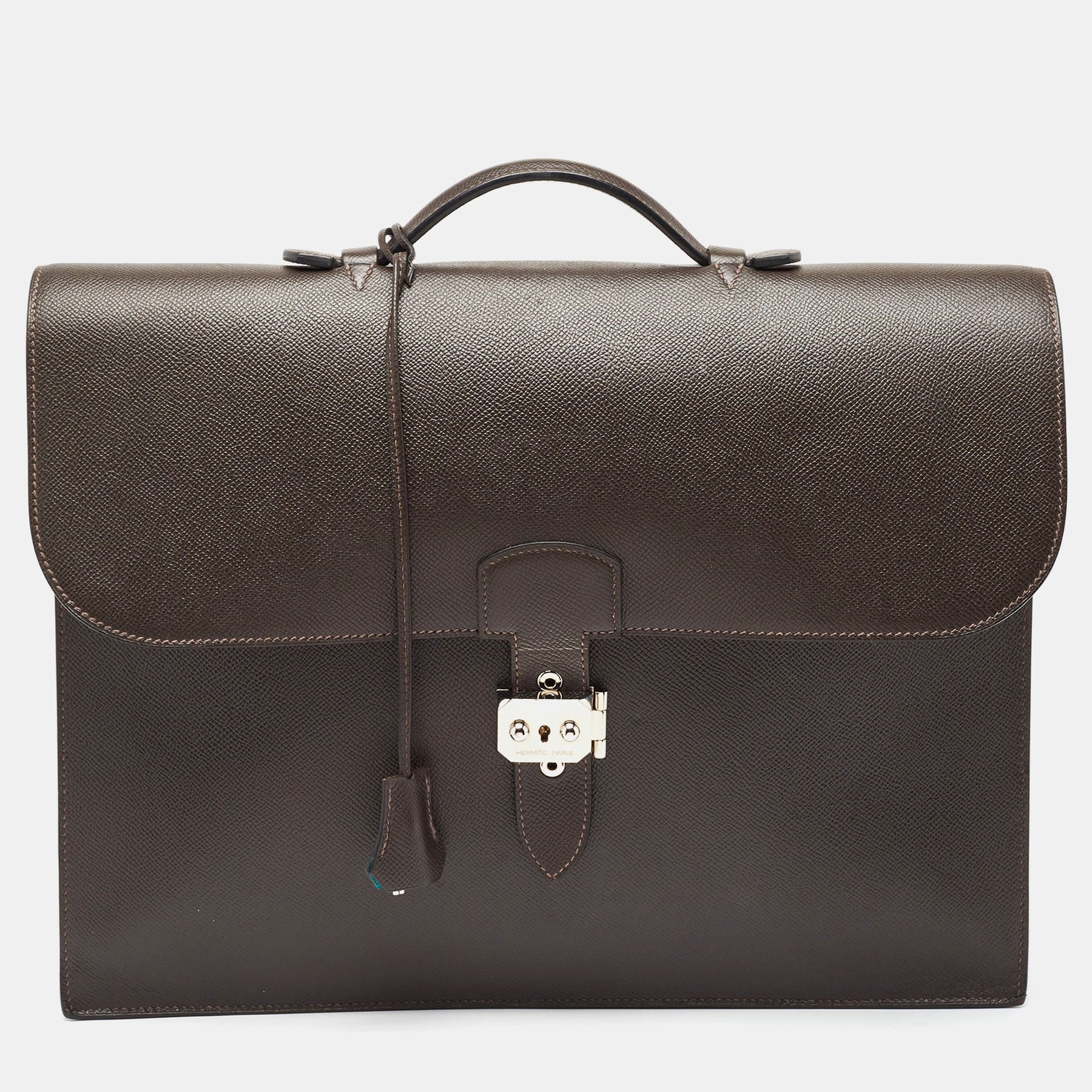 HERMES Ebene/Vert Verone Epsom Leather Sac a Depeches 38 Briefcase