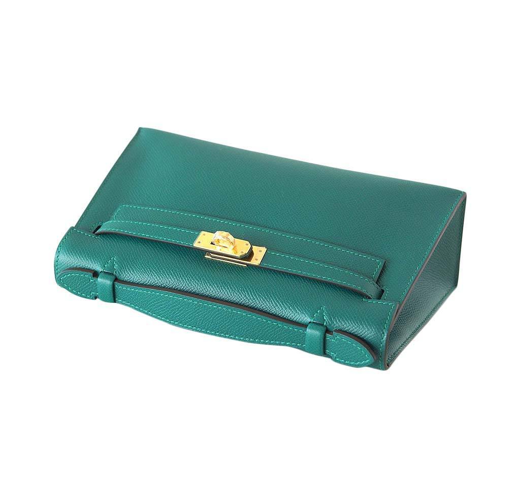 This timeless Hermès JPG Kelly Pochette bag is nearly impossible to find anywhere else. This store-fresh Kelly Pochette is featured in the Malachite color, which is a green tone. This bag is accentuated by gold hardware and is made from very smooth Epsom leather, which is also highly resistant to scratching. This bag has never been carried.