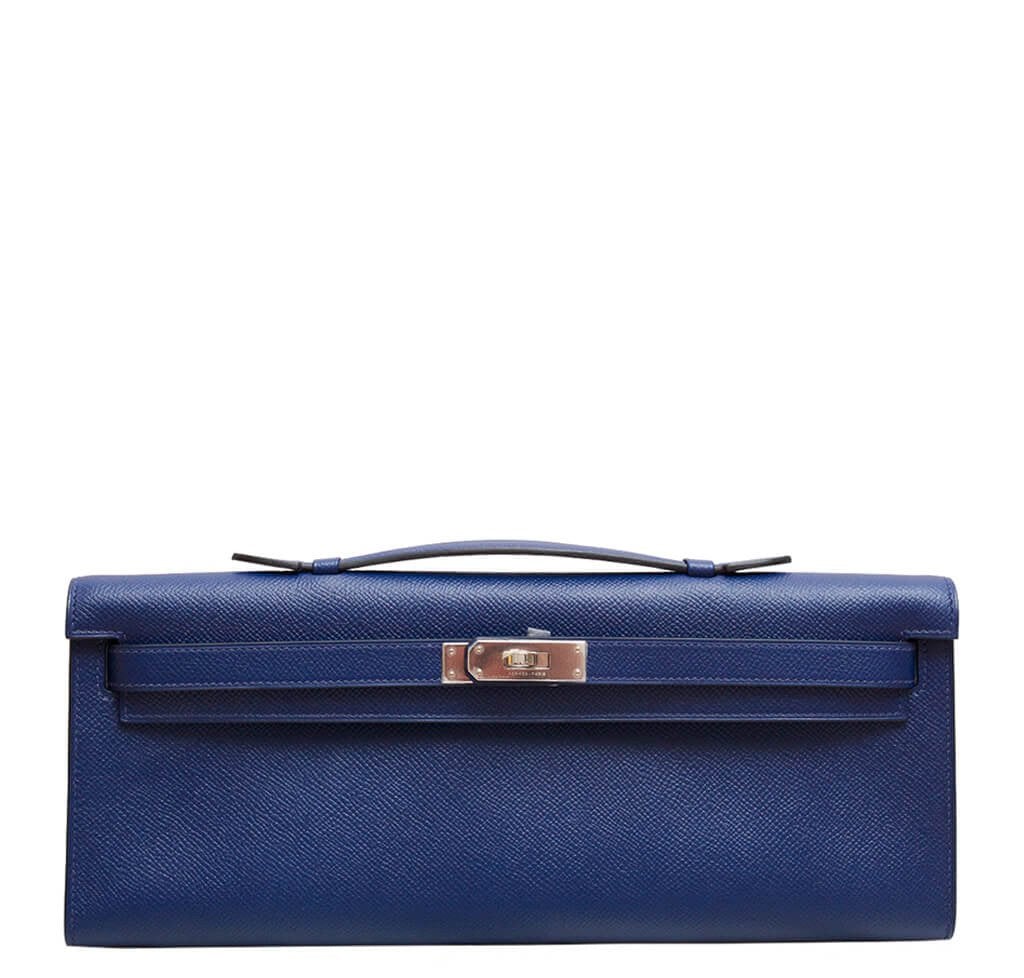 Hermès Kelly Cut Clutch Bag Blue Epsom Leather