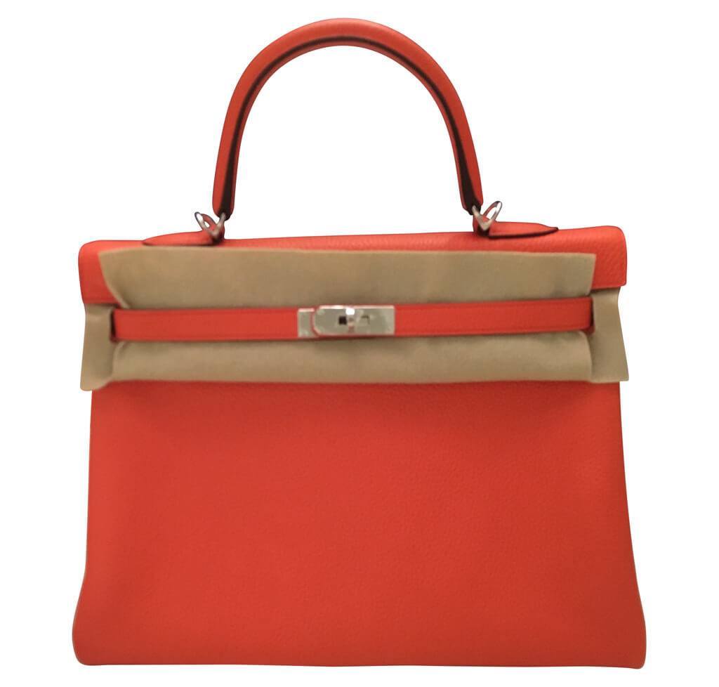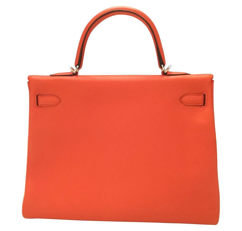 Treat yourself to this beautiful Hermès Kelly Retourne bag featured in the size 35. This bag is made from Taurillon Clemence leather and is featured in the hot Orange Poppy color. This Kelly bag is accentuated by palladium hardware and is absolutely stunning. Get your hands on this luxurious Hermès Kelly bag made in a rare color and get heads spinning everywhere you go.