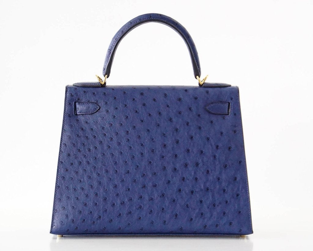 Hermès Kelly Sellier 28 Blue Iris Ostrich Bag