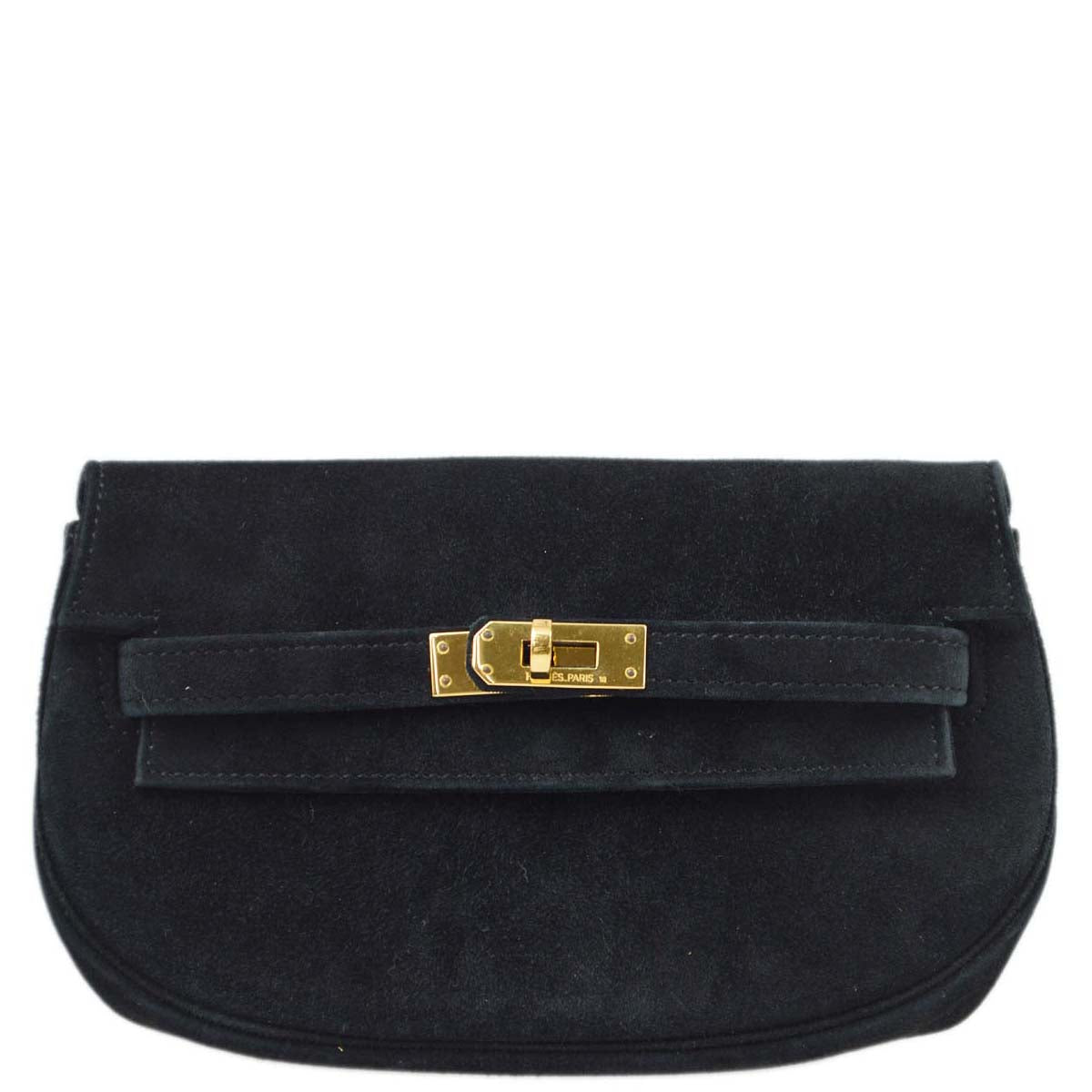 Hermes * Black Doblis Banana Kelly Clutch Handbag