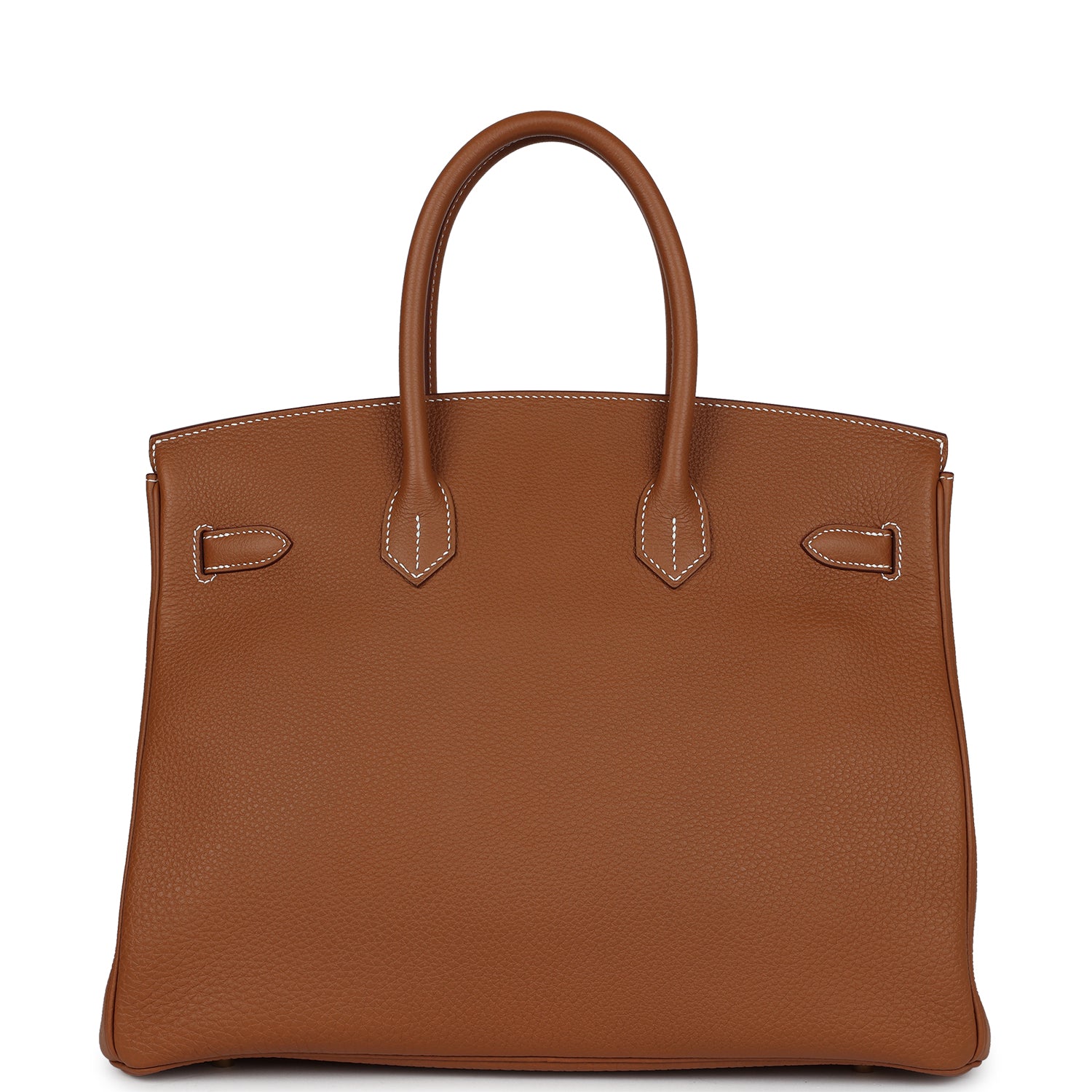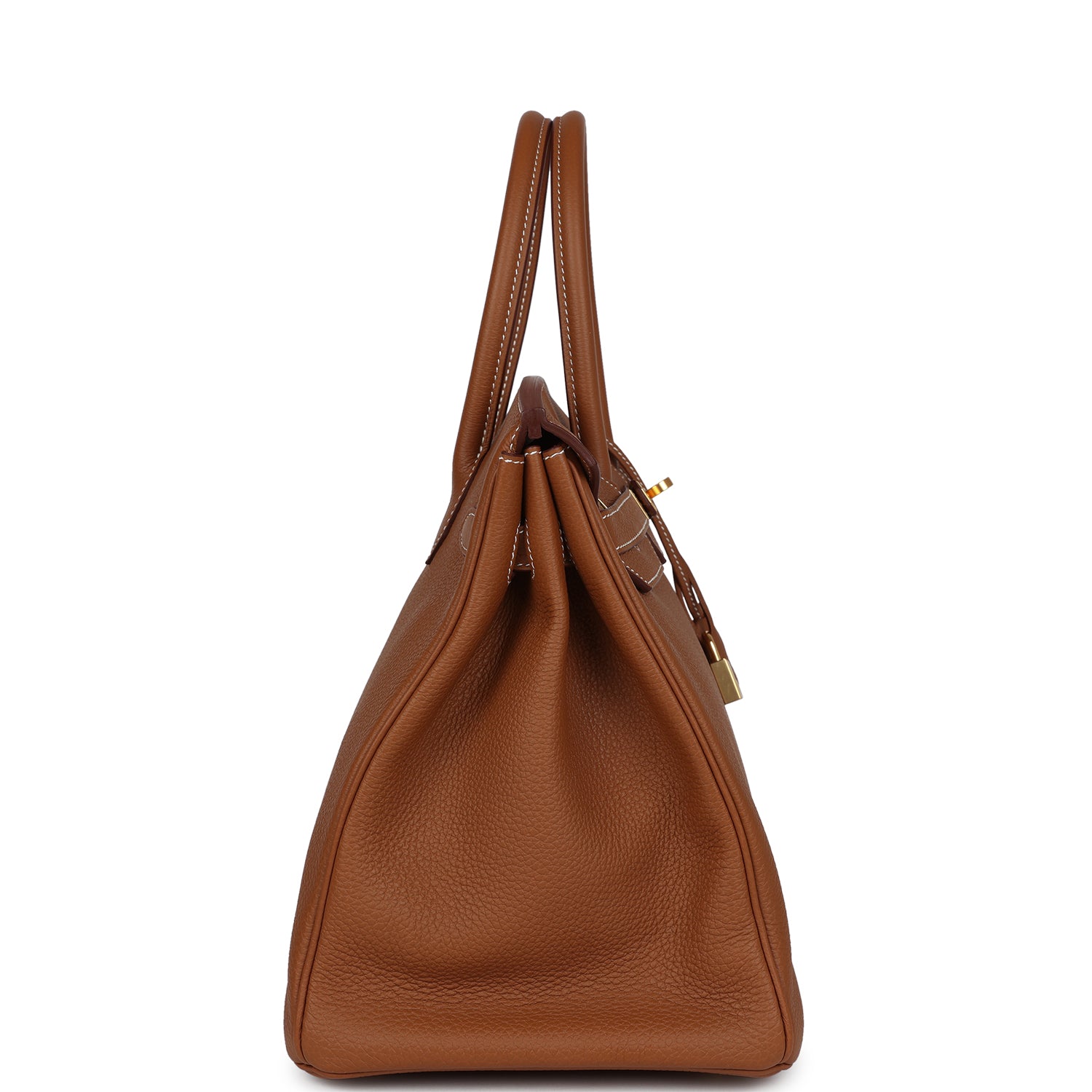 This Birkin is in Gold togo leather with gold hardware and has contrast stitching, two straps with front toggle closure, clochette with lock and two keys and double rolled handles.