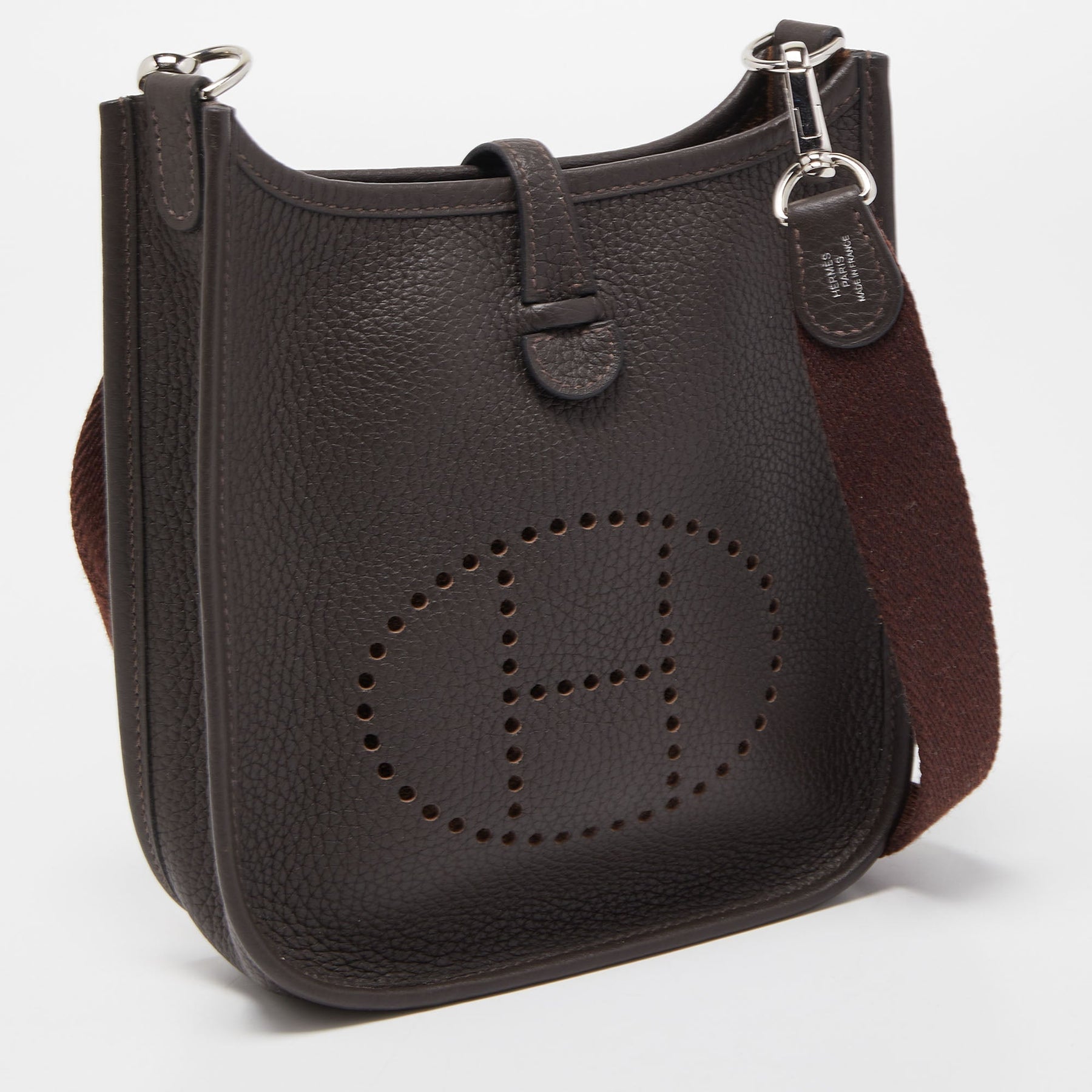 HERMES Chocolat Clemence Leather Evelyne TPM Bag