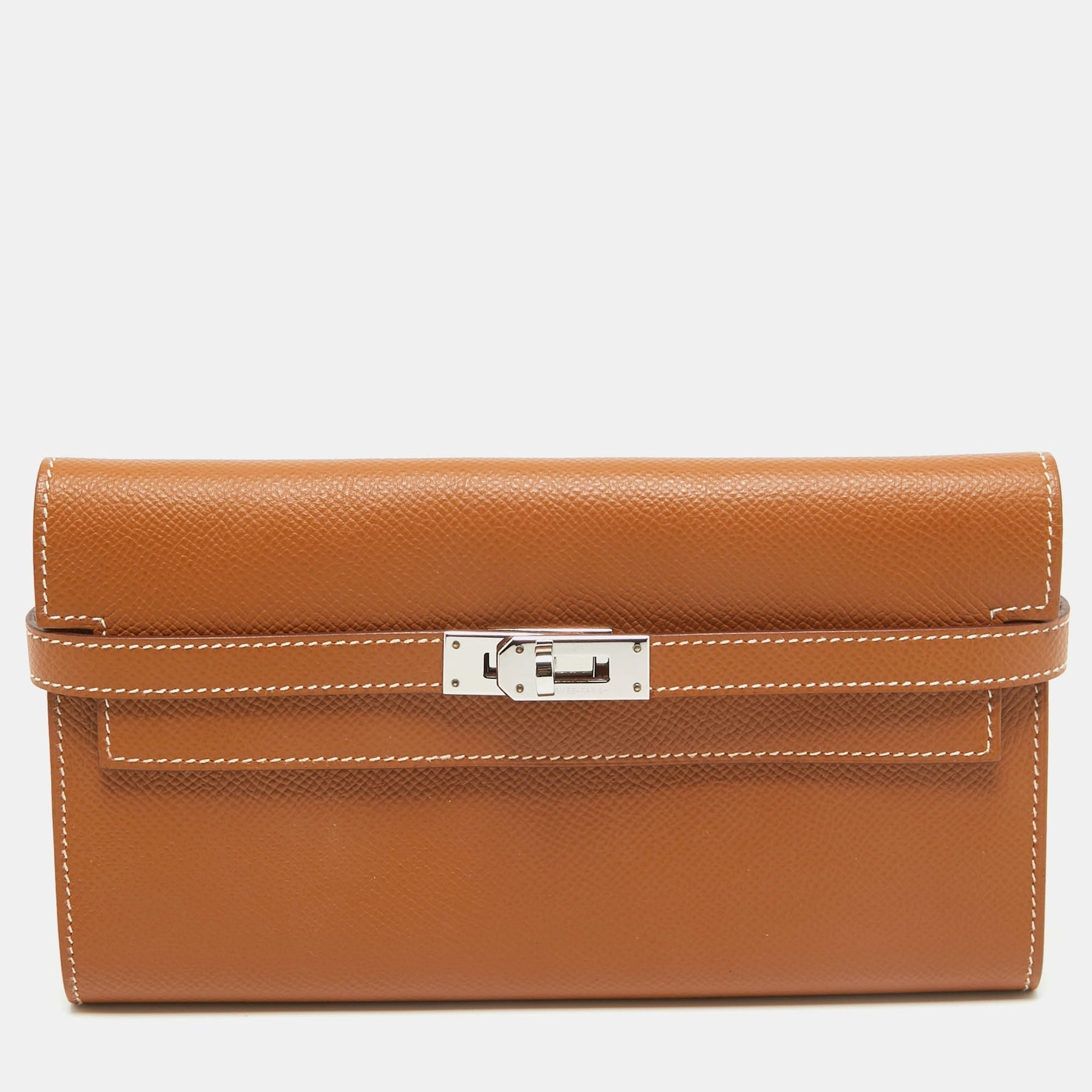 The Kelly is a name synonymous with Hermes. It is a symbol of their wondrous dedication to craftsmanship and classic style. The lock of the bag, which is a turn lock, now appears in jewelry and wallets. This long wallet also carries the iconic Kelly lock, in silver tone, and it comes crafted from gold Epsom leather with multiple slots and compartments to carry your essentials. Brimming with lavish details and artistry, this wondrous creation deserves to be yours.