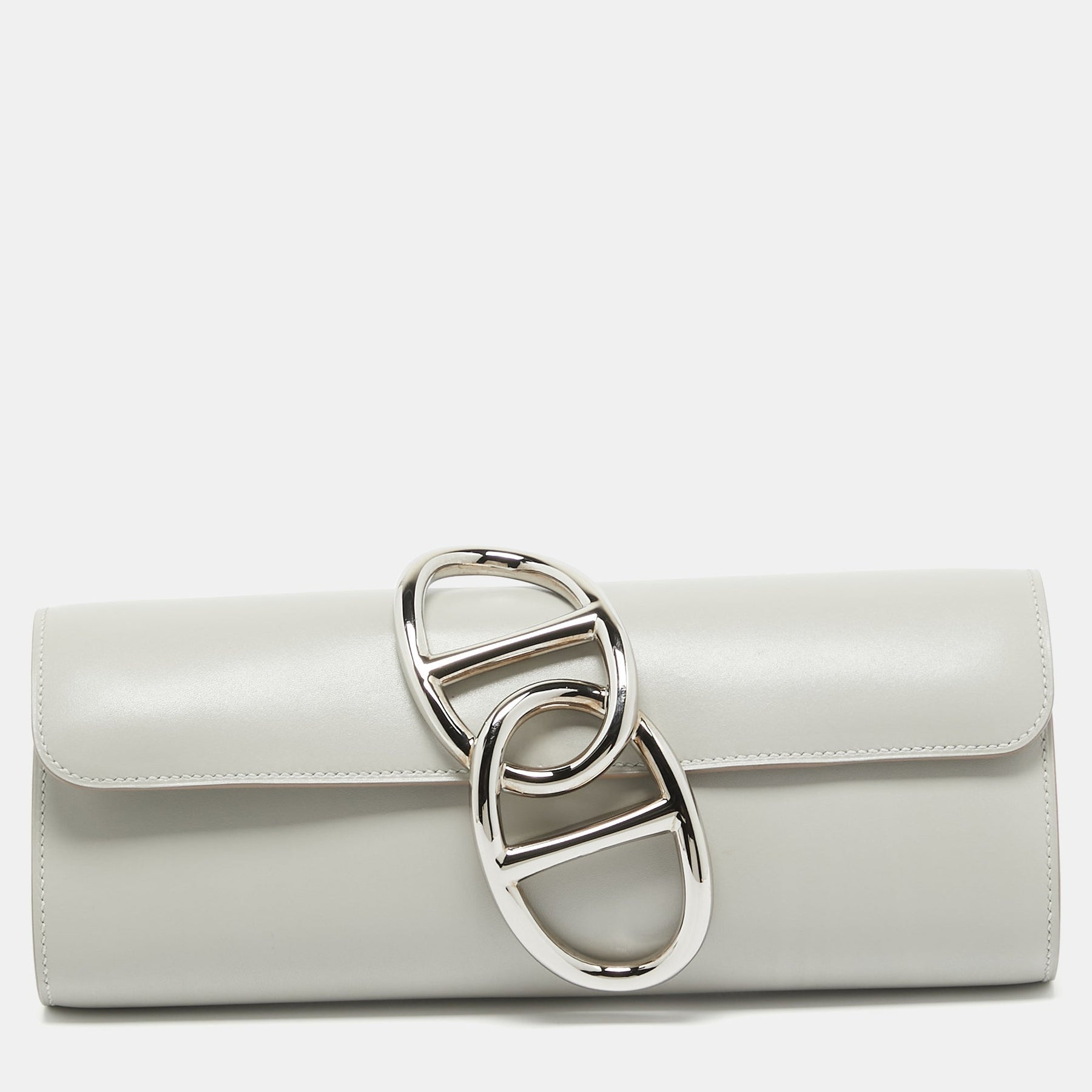 Hermes Gris Perle Tadelakt Leather Egee Clutch