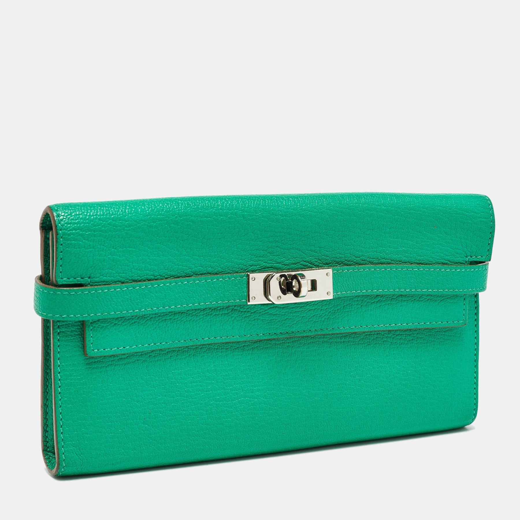 HERMES Menthe Chevre Mysore Leather Kelly Longue Wallet
