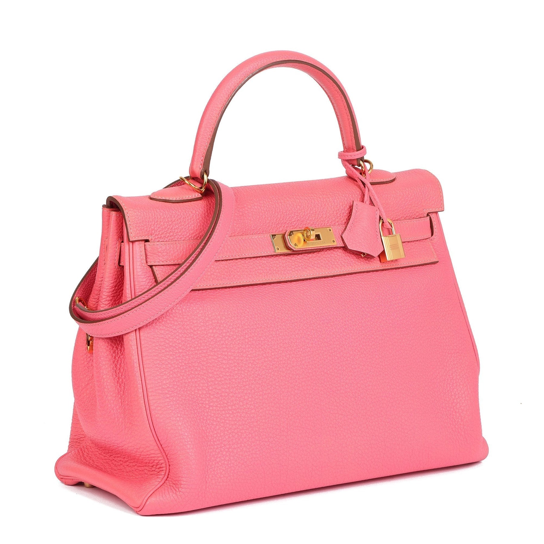 Hermes Rose Lipstick Togo Leather Kelly 35cm Retourne Shoulder Bag