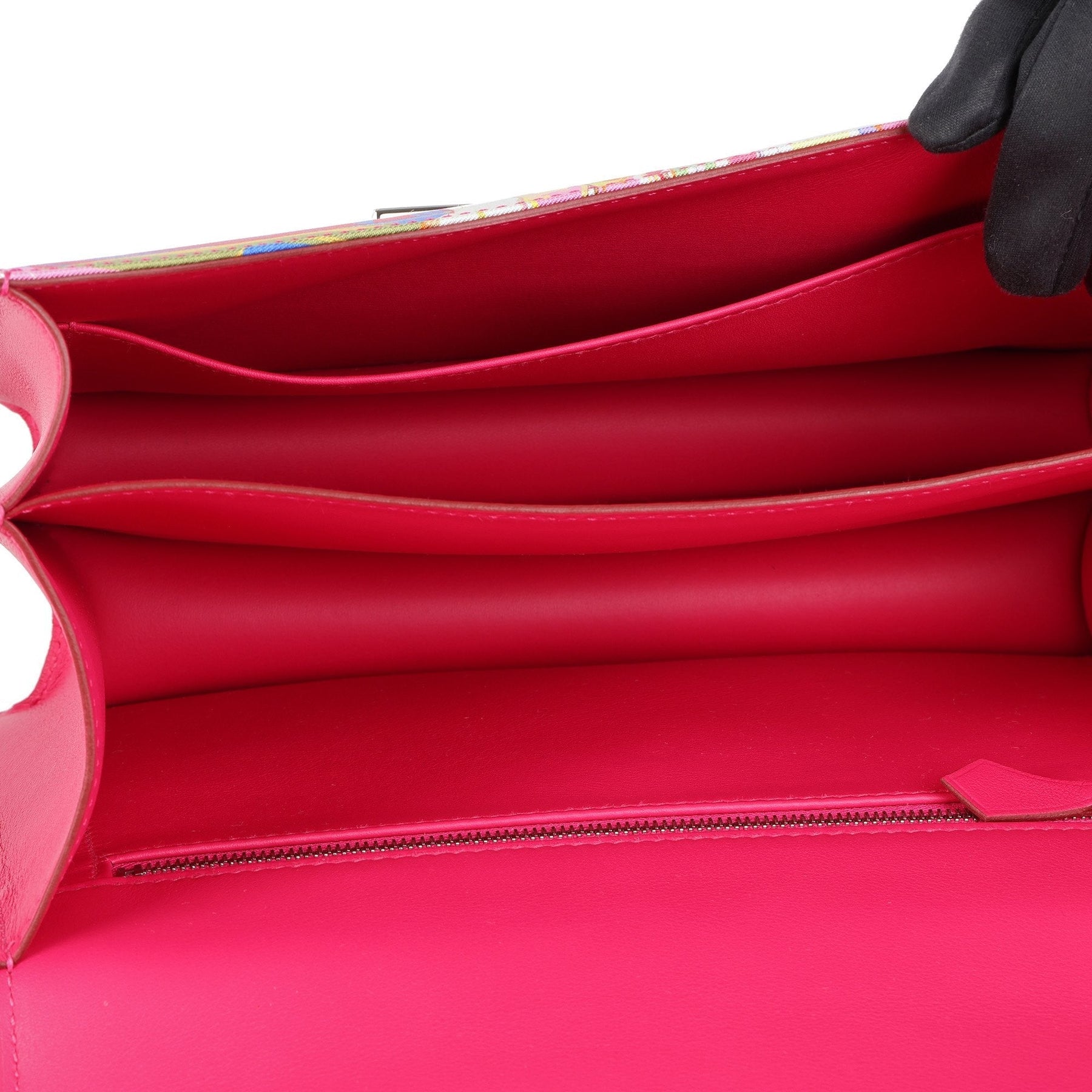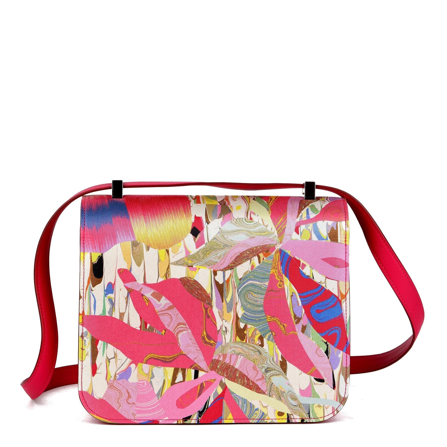 Hermes Rose Mexico Swift Leather & Marble Silk Constance 24 Shoulder Bag