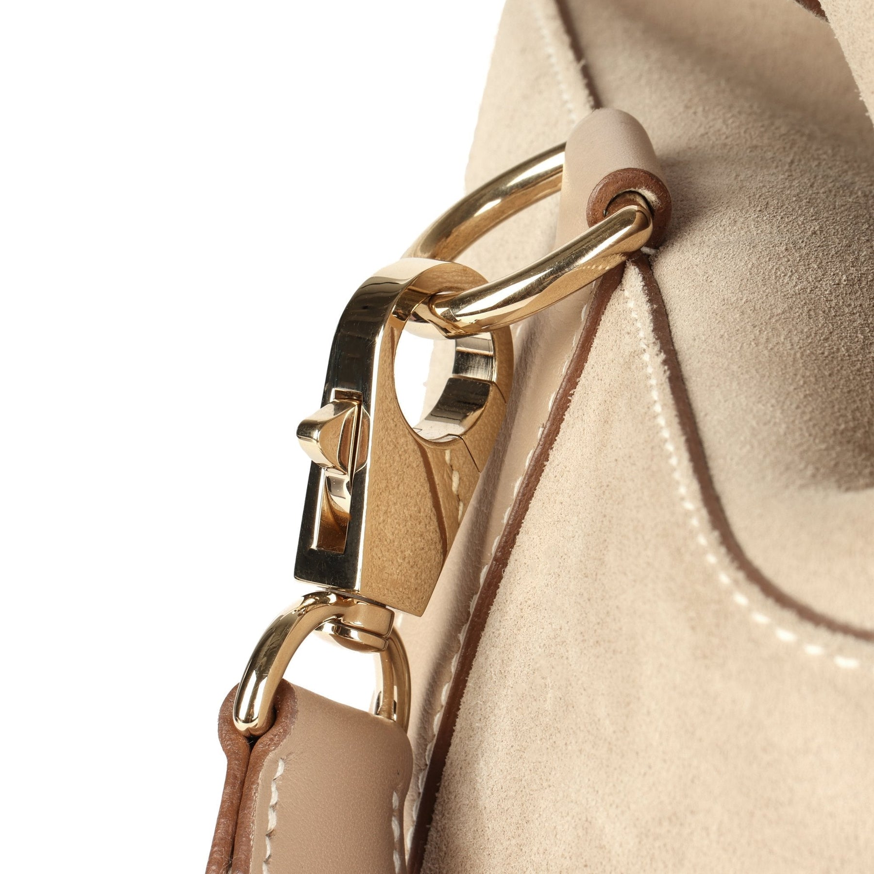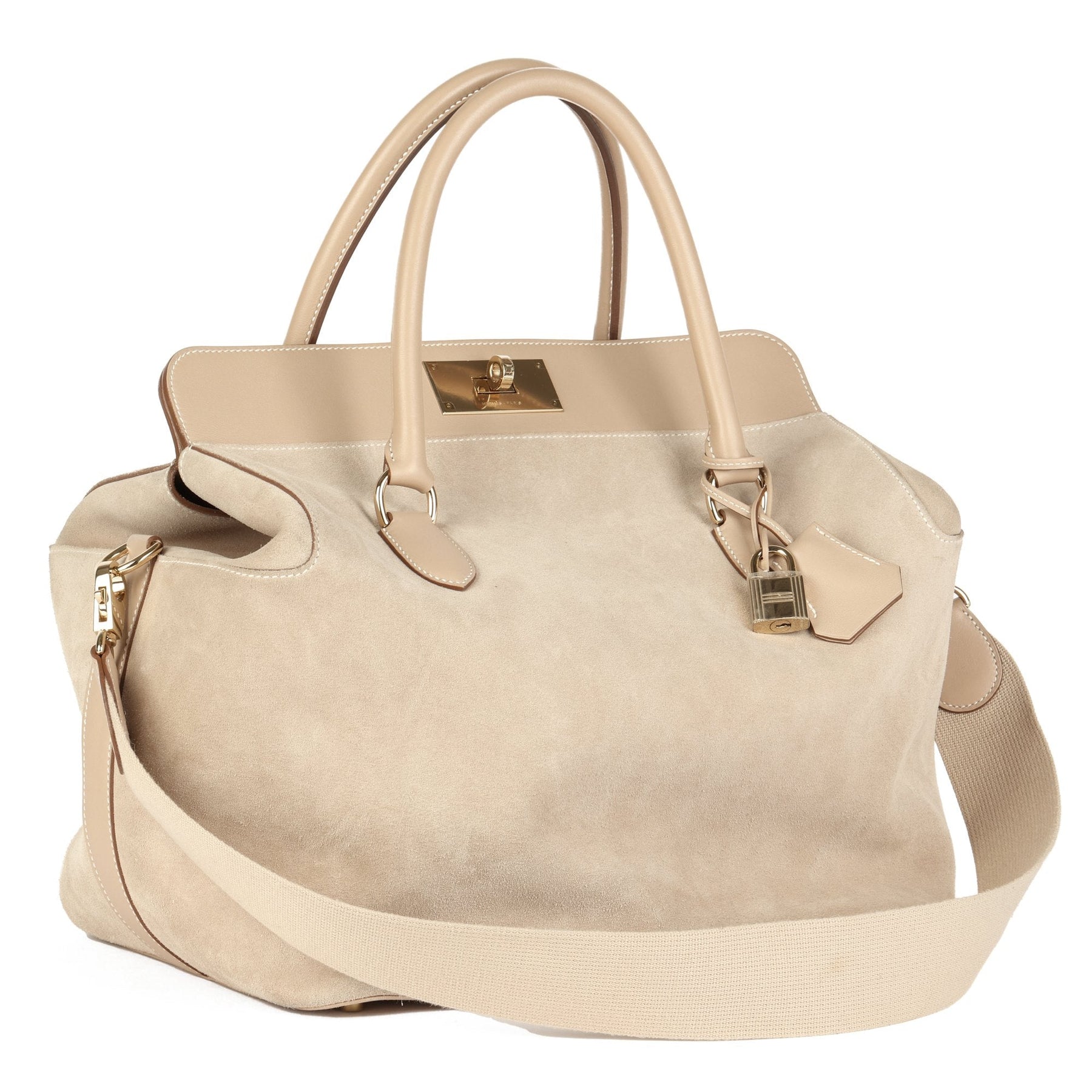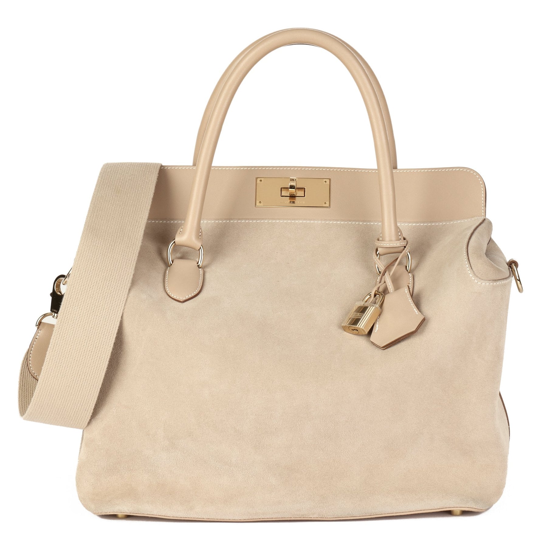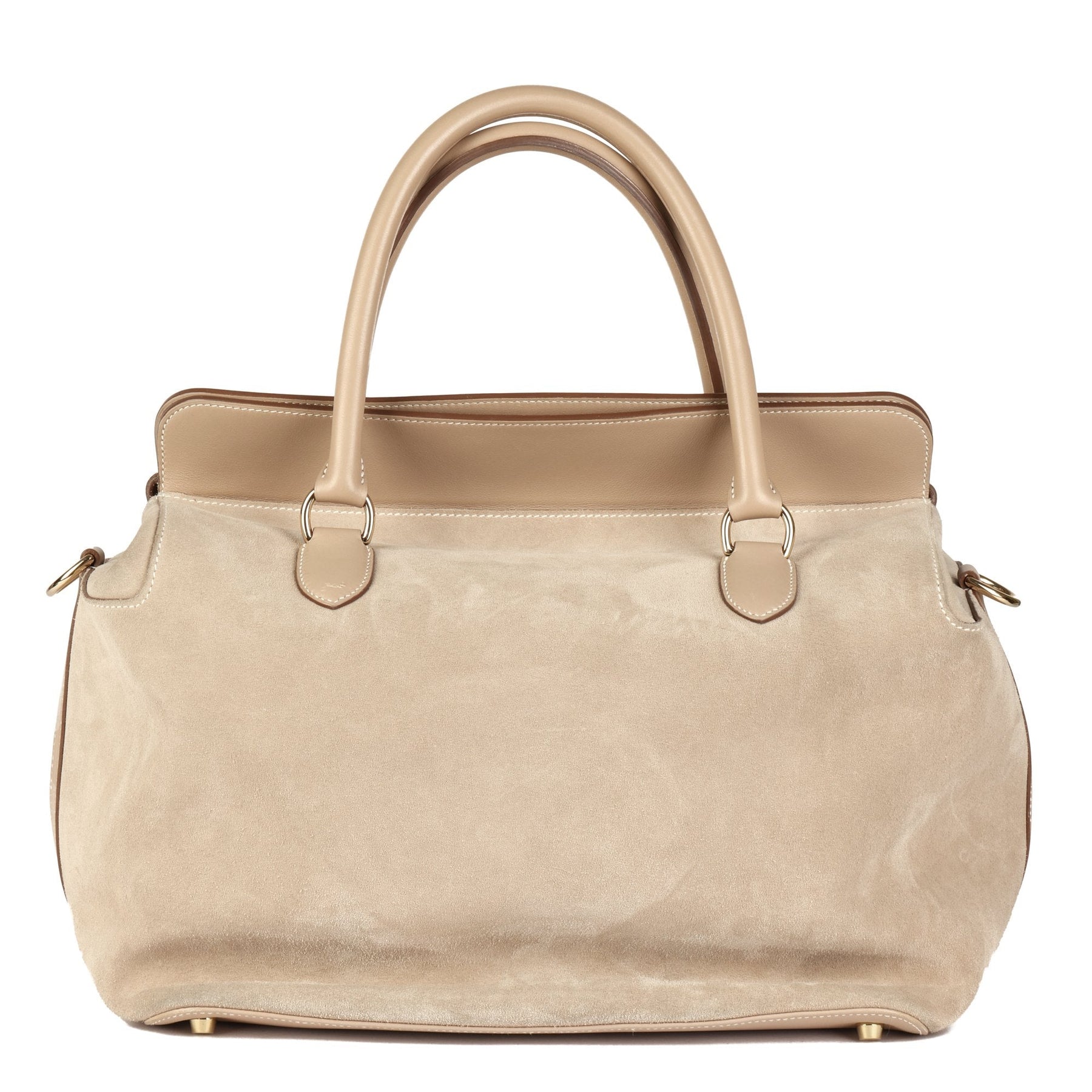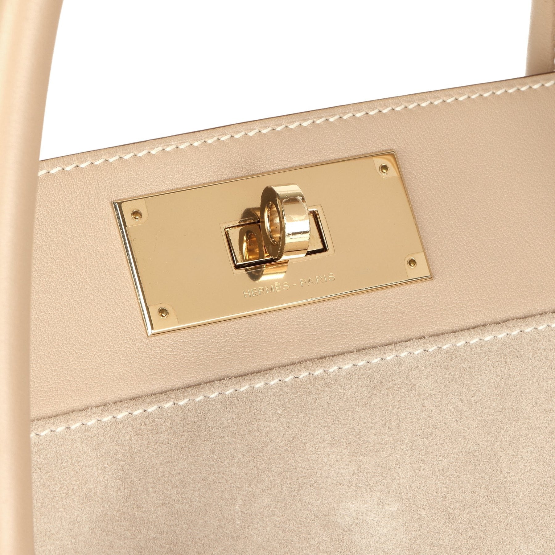Hermes Argile Swift Leather & Veau Grizzly Suede Toolbox 33 Shoulder Bag