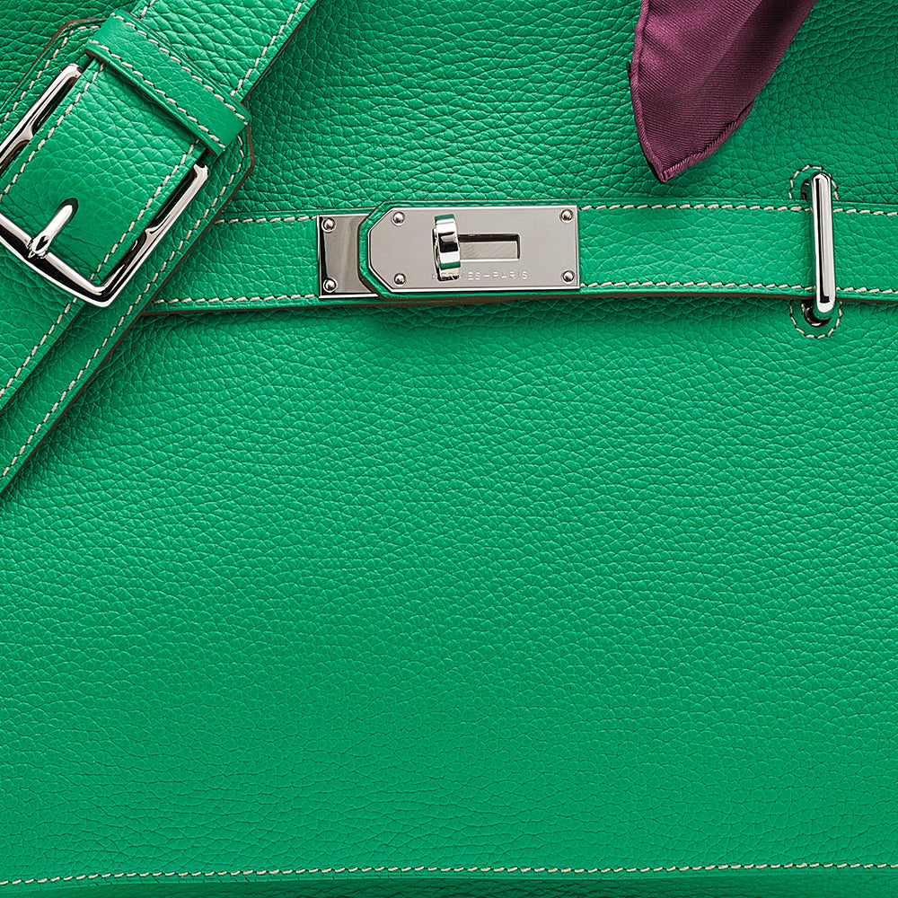 The Jypsiere comes with a design that delightfully resembles the famous Hermes Birkin and Kelly. It is a more casual design of the iconic handbags. This here comes crafted from Togo leather and is equipped with a spacious interior. Complete with the signature swivel clasp at the front a scarf handle and a shoulder strap this high style creation deserves to be yours.