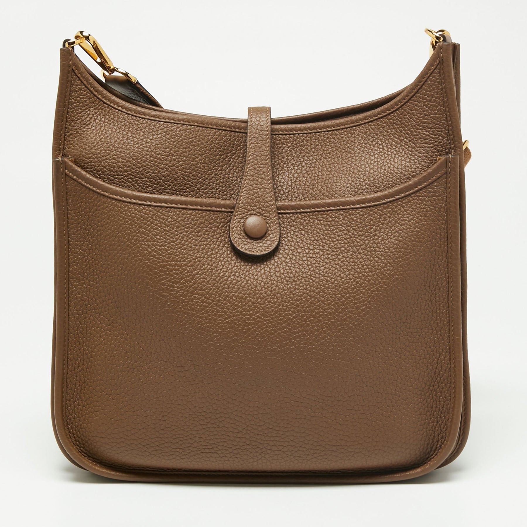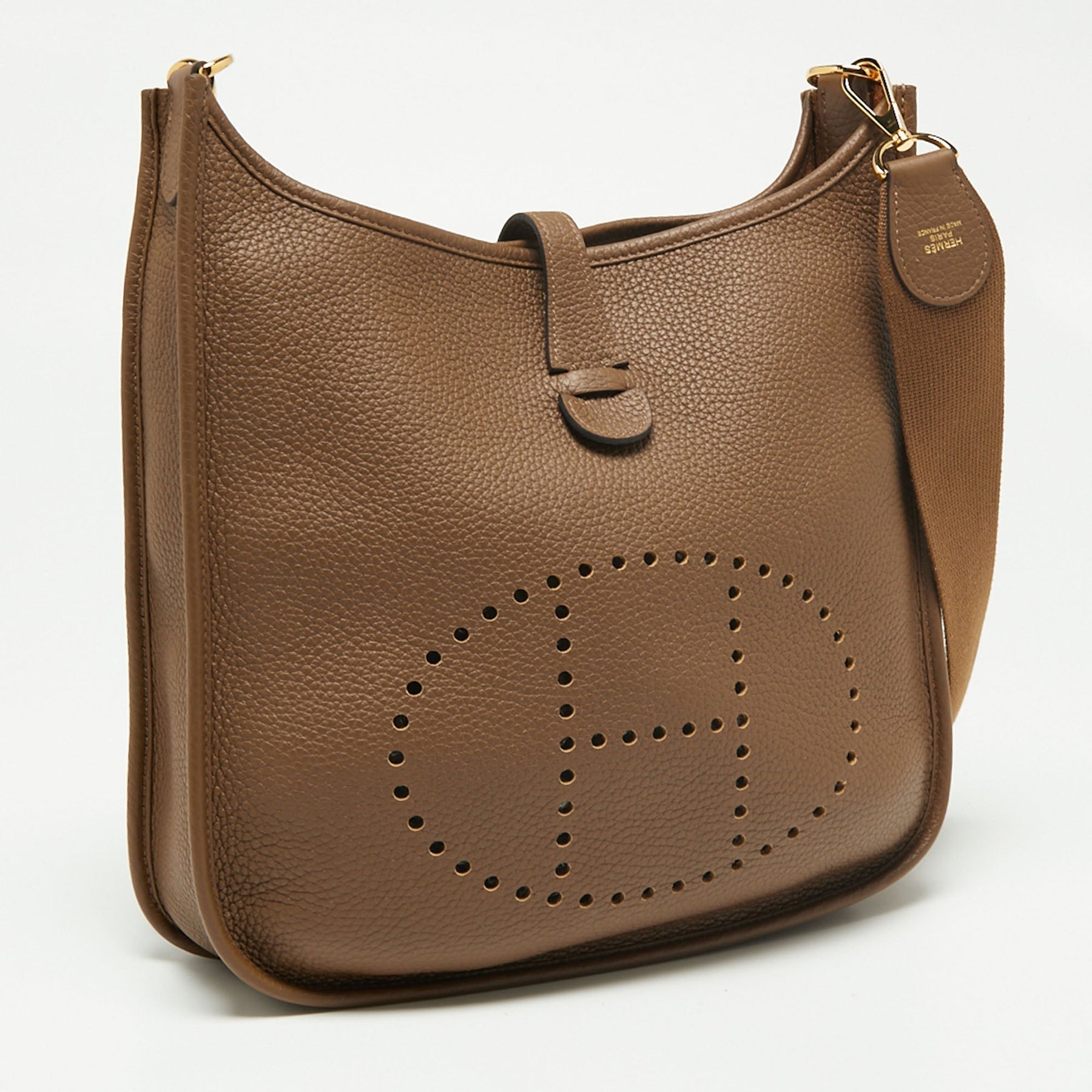The Evelyne III is another investment worthy bag from Herm??s. This one here in the PM size is crafted from Taurillon Clemence leather and detailed with the signature elements of the leather tab closure the saddle like shape and the perforated H on the front. The bag is made ready with a well sized interior for your essentials and a shoulder strap that allows you to use it as a crossbody.