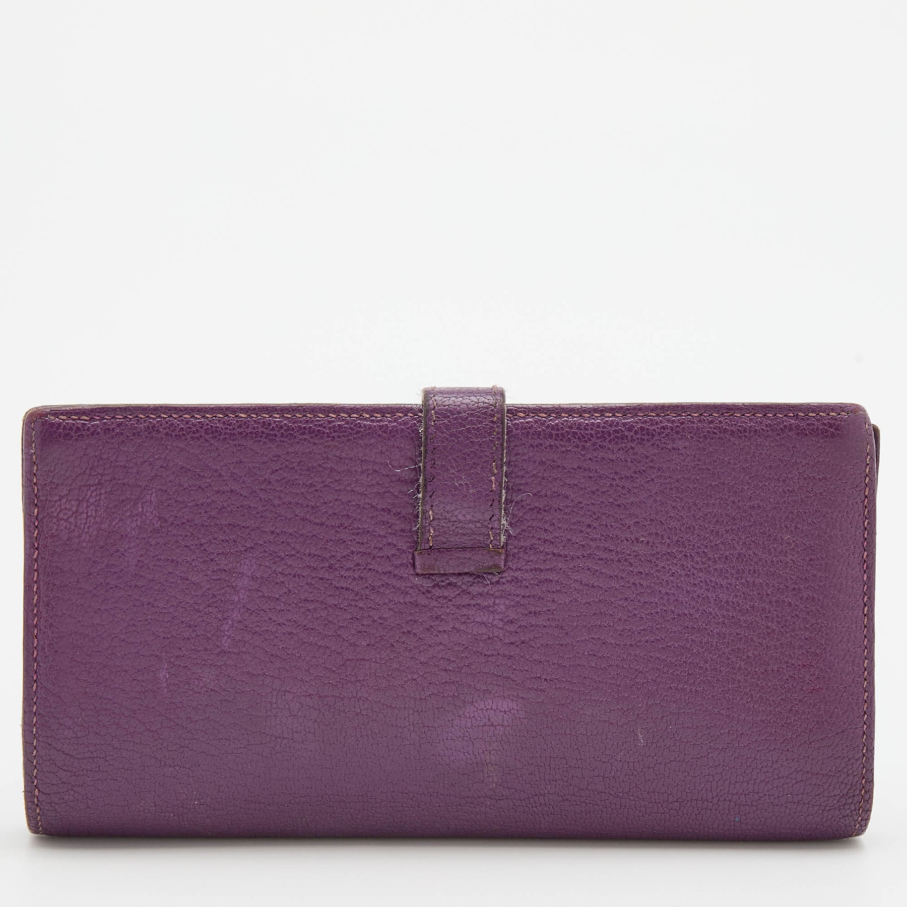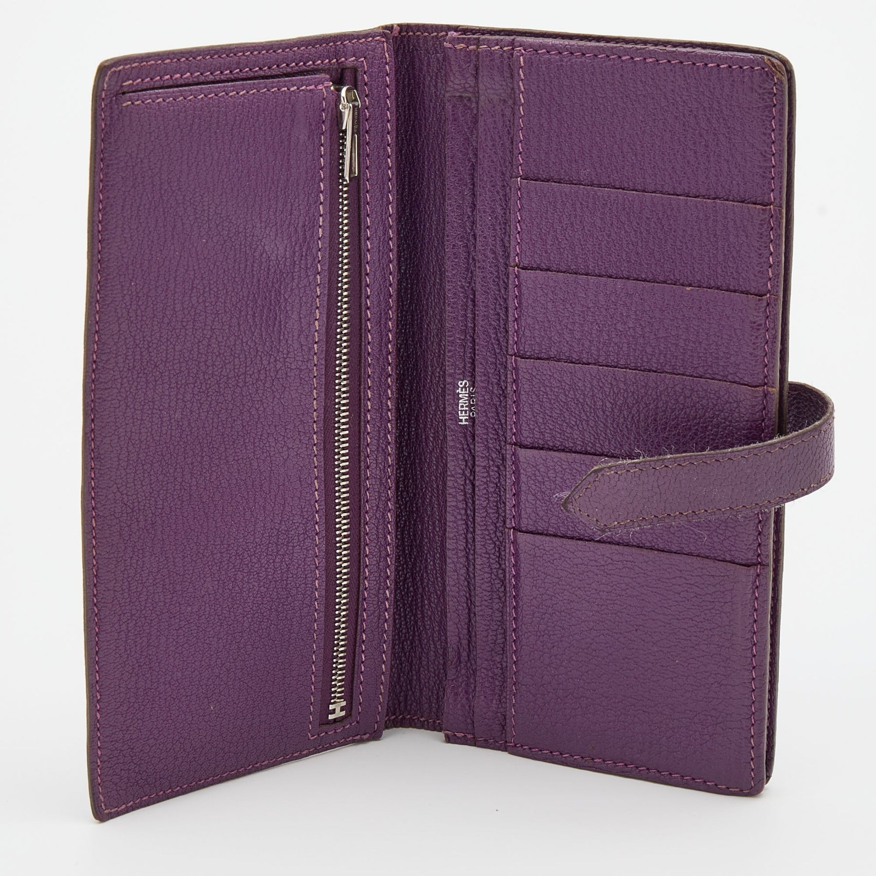 Hermes Cyclamen Chevre Mysore Leather Palladium Finish Bearn Wallet