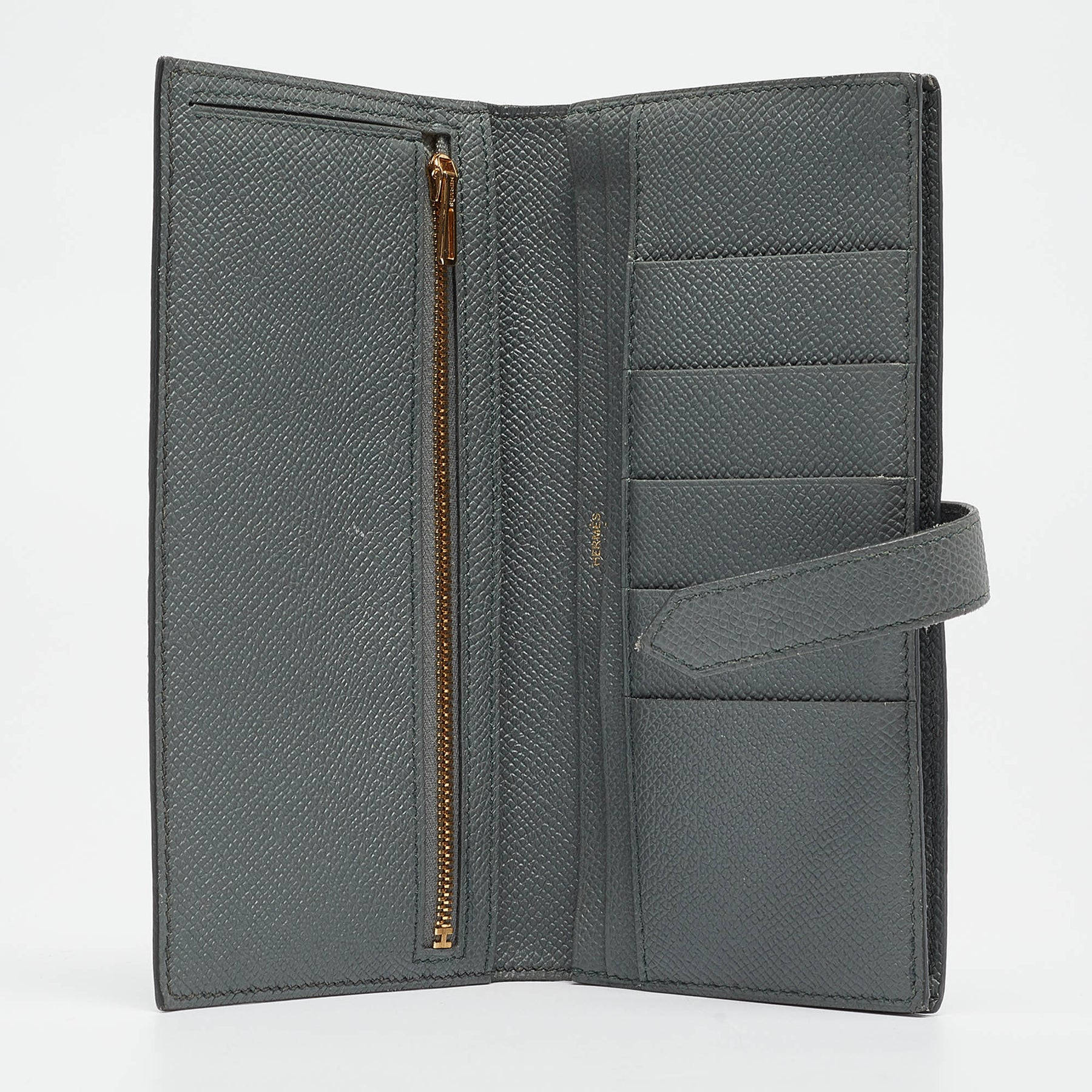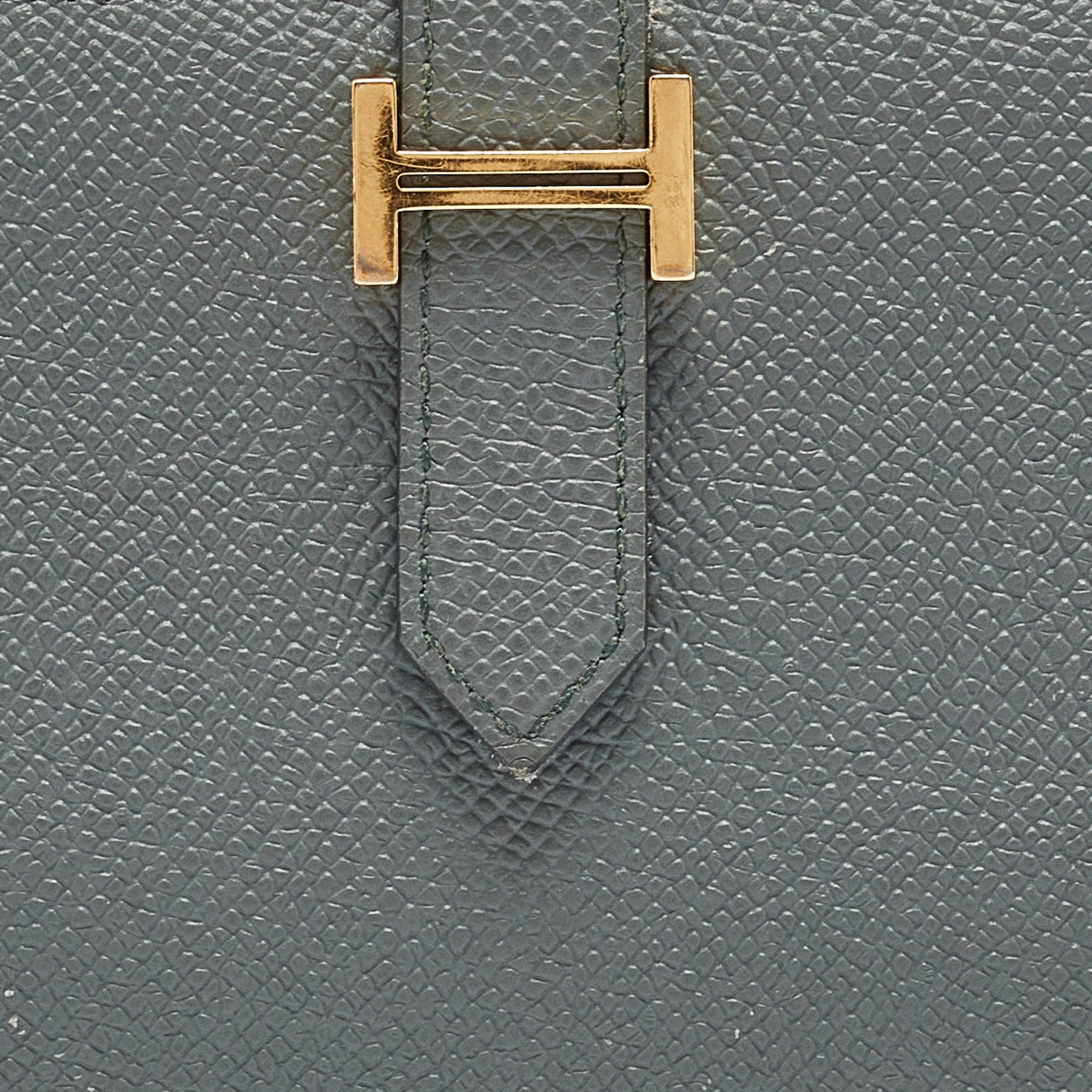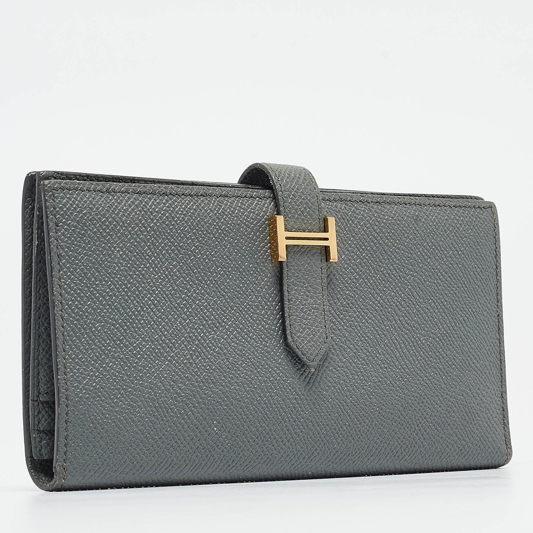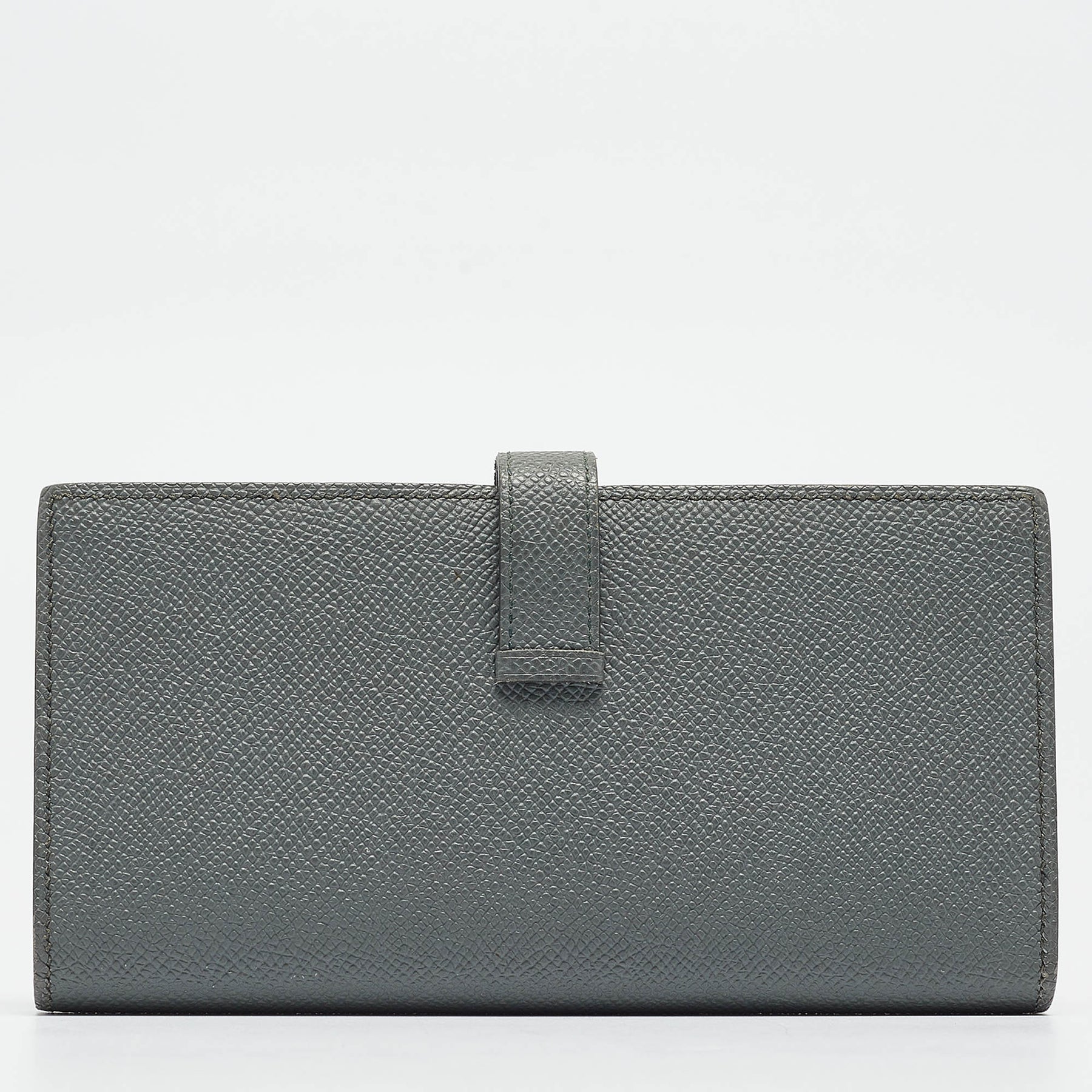 The Hermes Bearn wallet showcases exquisite craftsmanship. The supple Epsom leather in an elegnat hue is complemented by a sleek gold finished H logo closure. Inside, well organized compartments and card slots offer both style and functionality in a compact accessory.