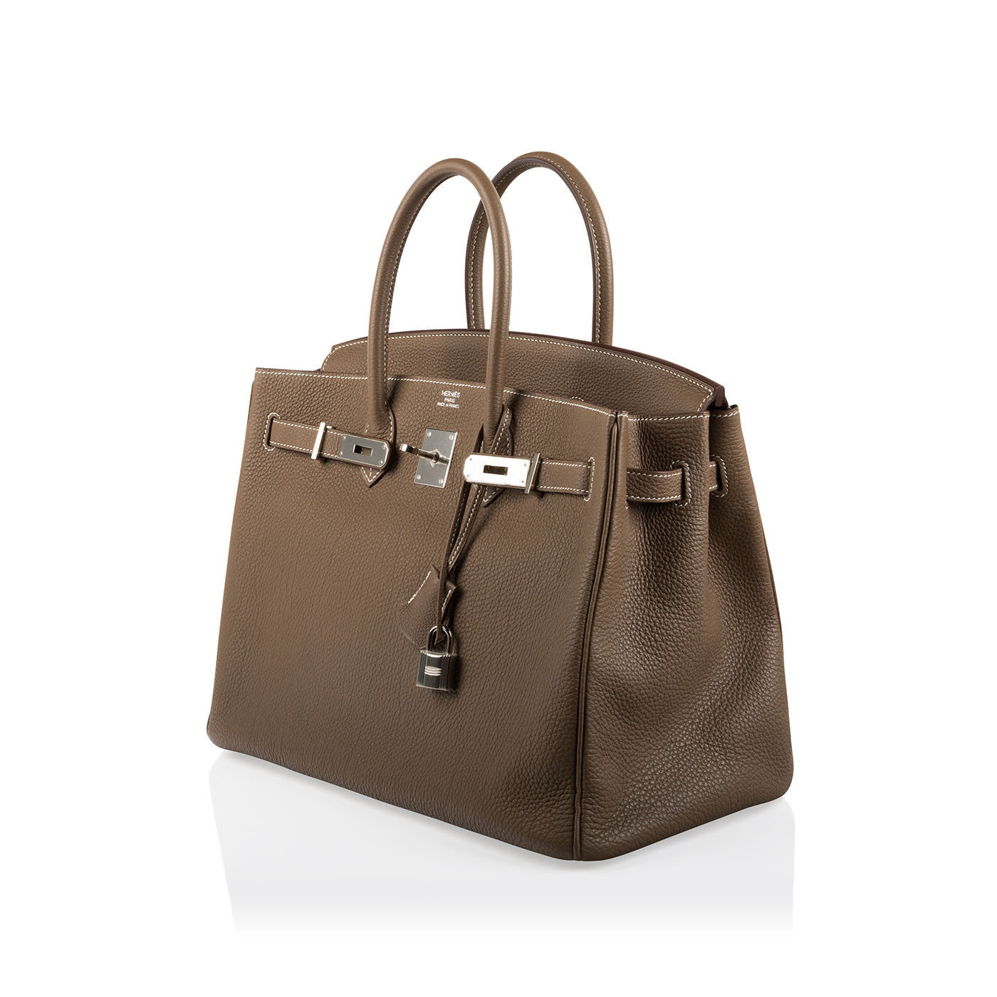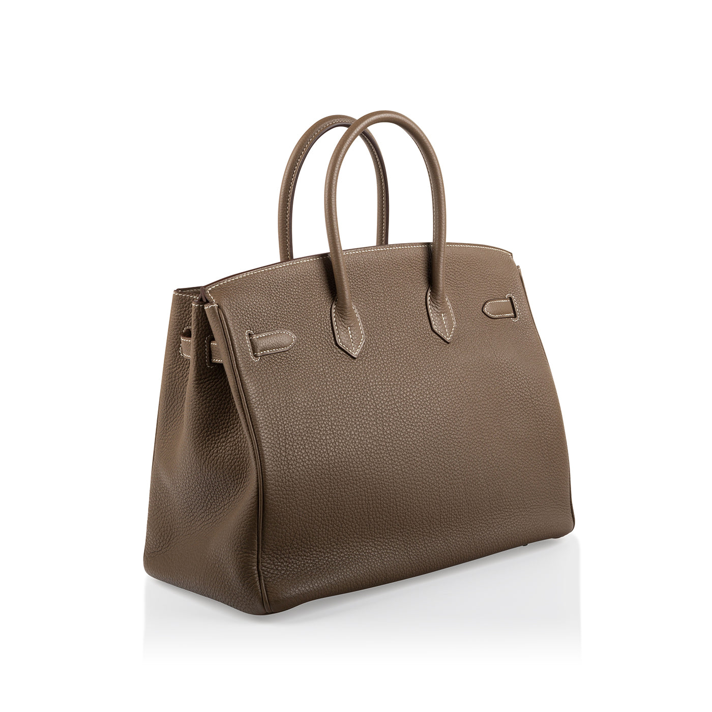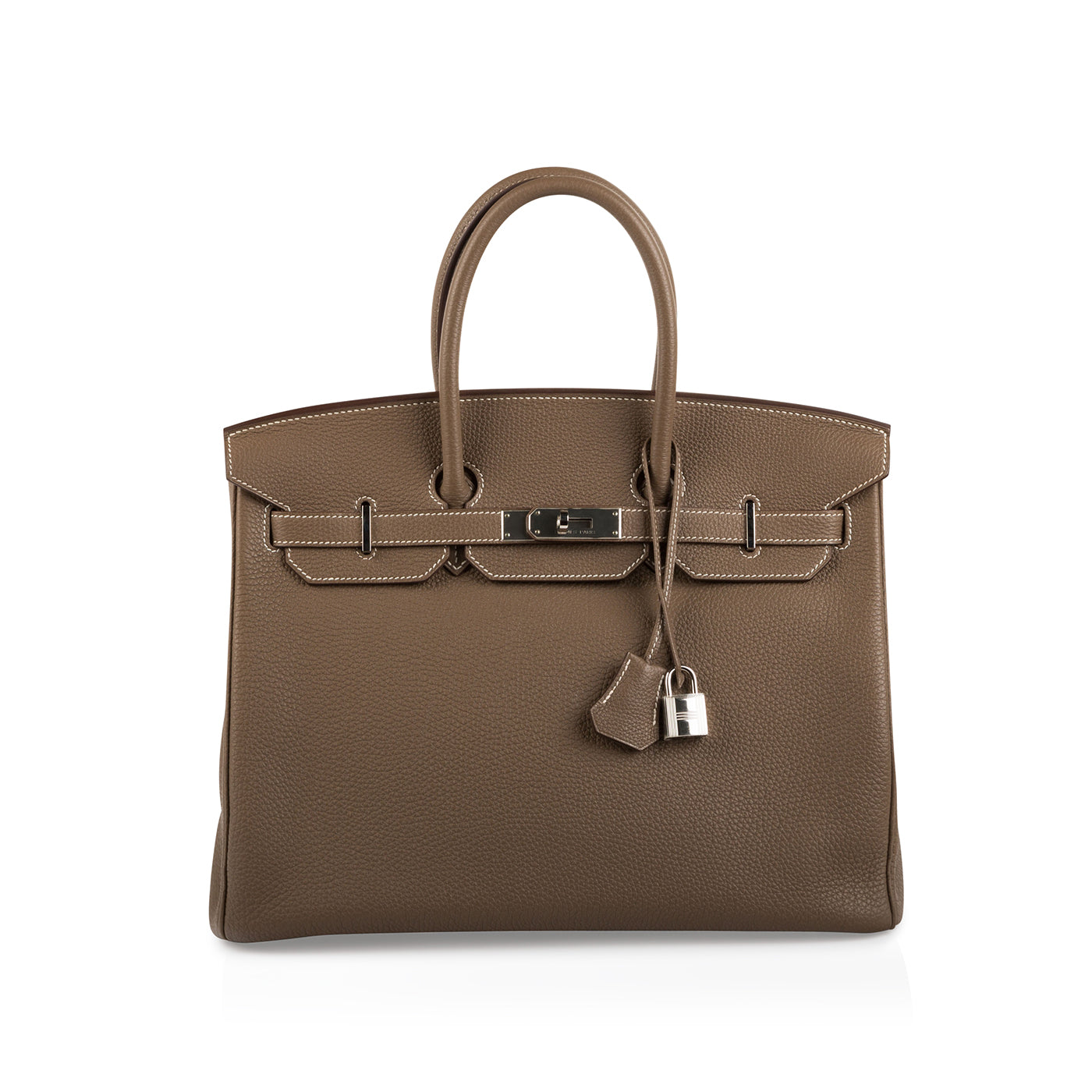 Alongside its infamous sister bag, the Kelly, Hermès presents their iconic Birkin bag - the most internationally recognised and in-demand bag in the world. Originally created in 1983 when Jean-Louis Dumas met Jane Birkin on a flight from Paris to London. After she explained how needed a bag that was spacious enough for everything she needed to carry and more, with plenty of pockets. Shortly after, Hermès produced the first Birkin bag - now, thirty-five years later the bag still thrives. It holds an extremely elite reputation for being a status symbol, as well as a luxury handbag that offers everything you may need. Expertly constructed from soft and durable Etoupe Togo leather, this Birkin is stylish, sleek and sophisticated. Discreet and understated, the Birkin exudes a true "if you know, you know aesthetic." An absolute must-have for any woman with a love for luxury, the Birkin is the ultimate addition to any luxury handbag collection.