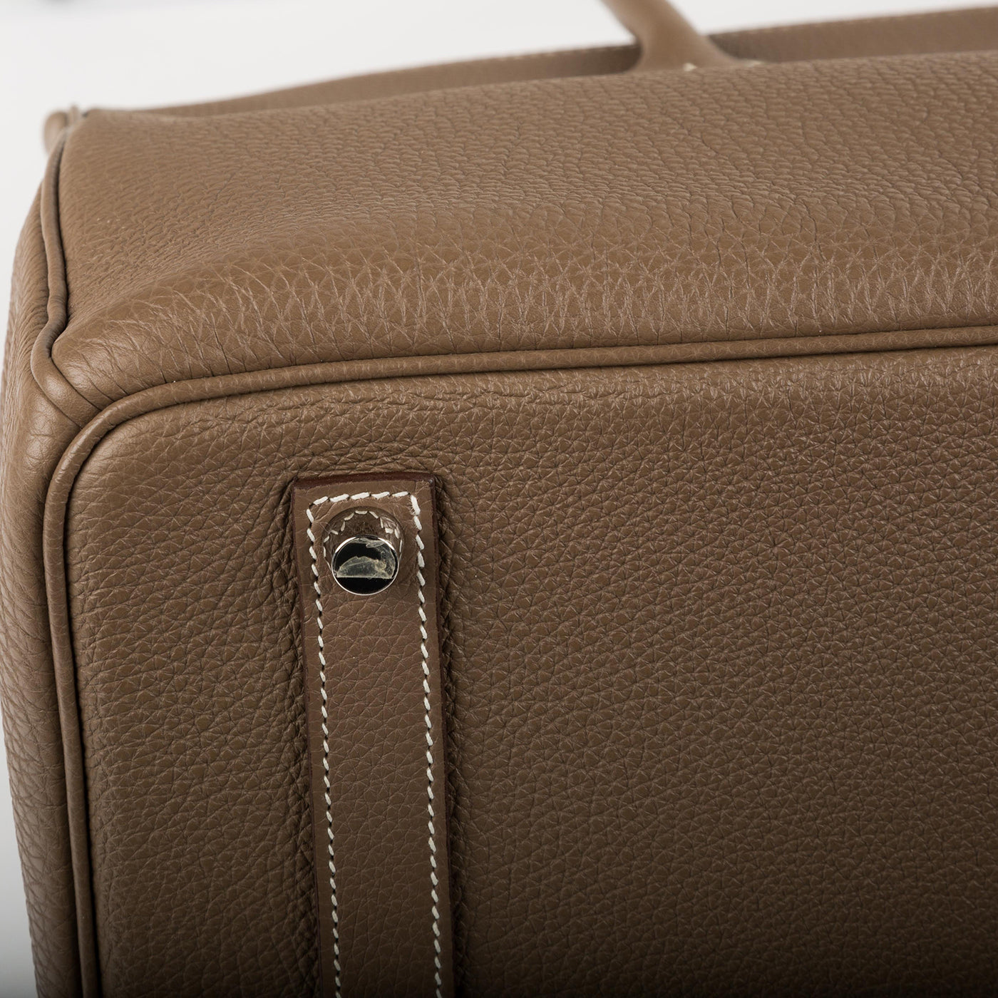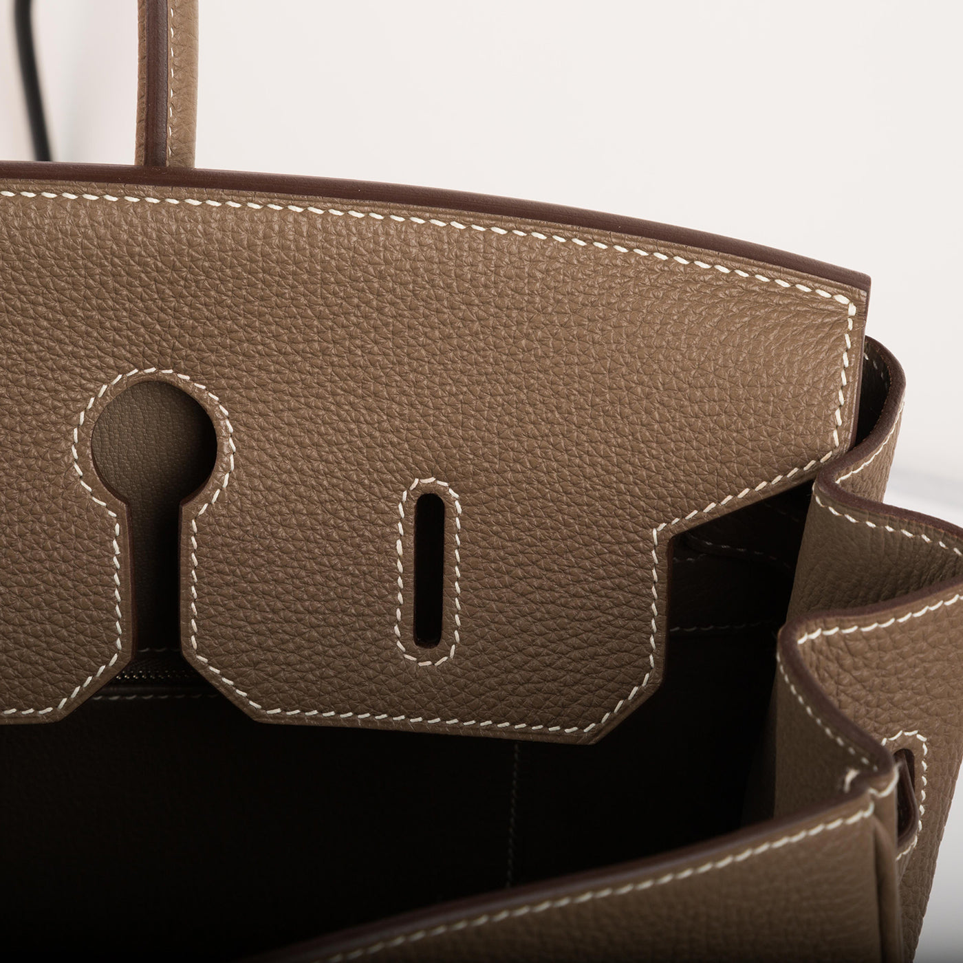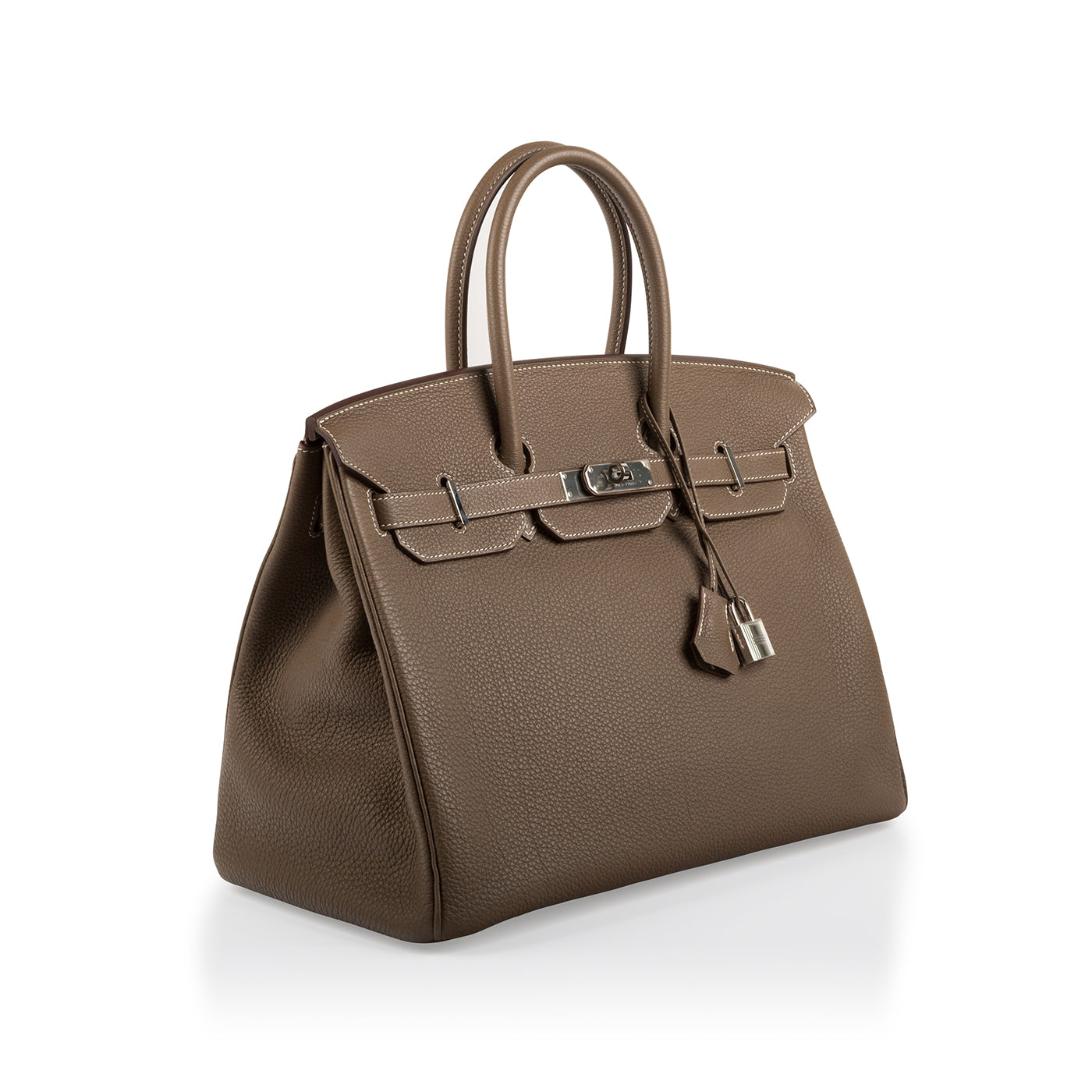 Alongside its infamous sister bag, the Kelly, Hermès presents their iconic Birkin bag - the most internationally recognised and in-demand bag in the world. Originally created in 1983 when Jean-Louis Dumas met Jane Birkin on a flight from Paris to London. After she explained how needed a bag that was spacious enough for everything she needed to carry and more, with plenty of pockets. Shortly after, Hermès produced the first Birkin bag - now, thirty-five years later the bag still thrives. It holds an extremely elite reputation for being a status symbol, as well as a luxury handbag that offers everything you may need. Expertly constructed from soft and durable Etoupe Togo leather, this Birkin is stylish, sleek and sophisticated. Discreet and understated, the Birkin exudes a true "if you know, you know aesthetic." An absolute must-have for any woman with a love for luxury, the Birkin is the ultimate addition to any luxury handbag collection.