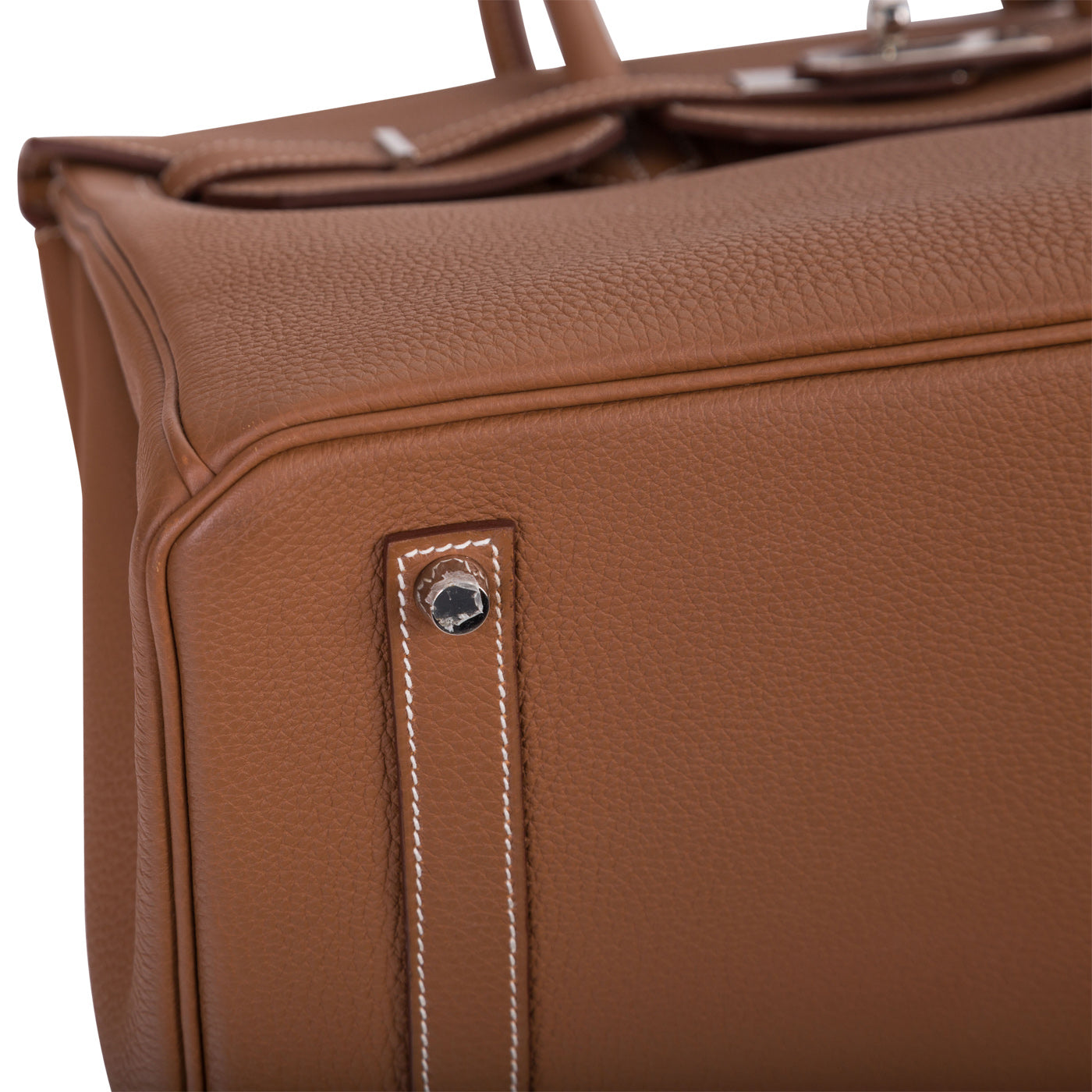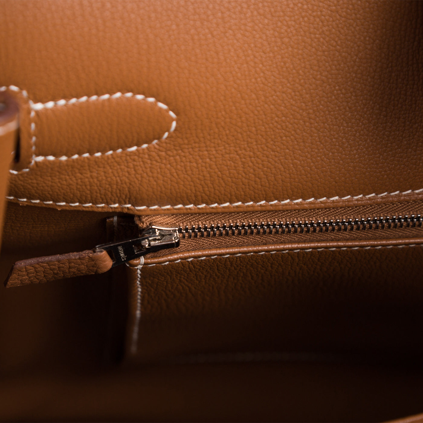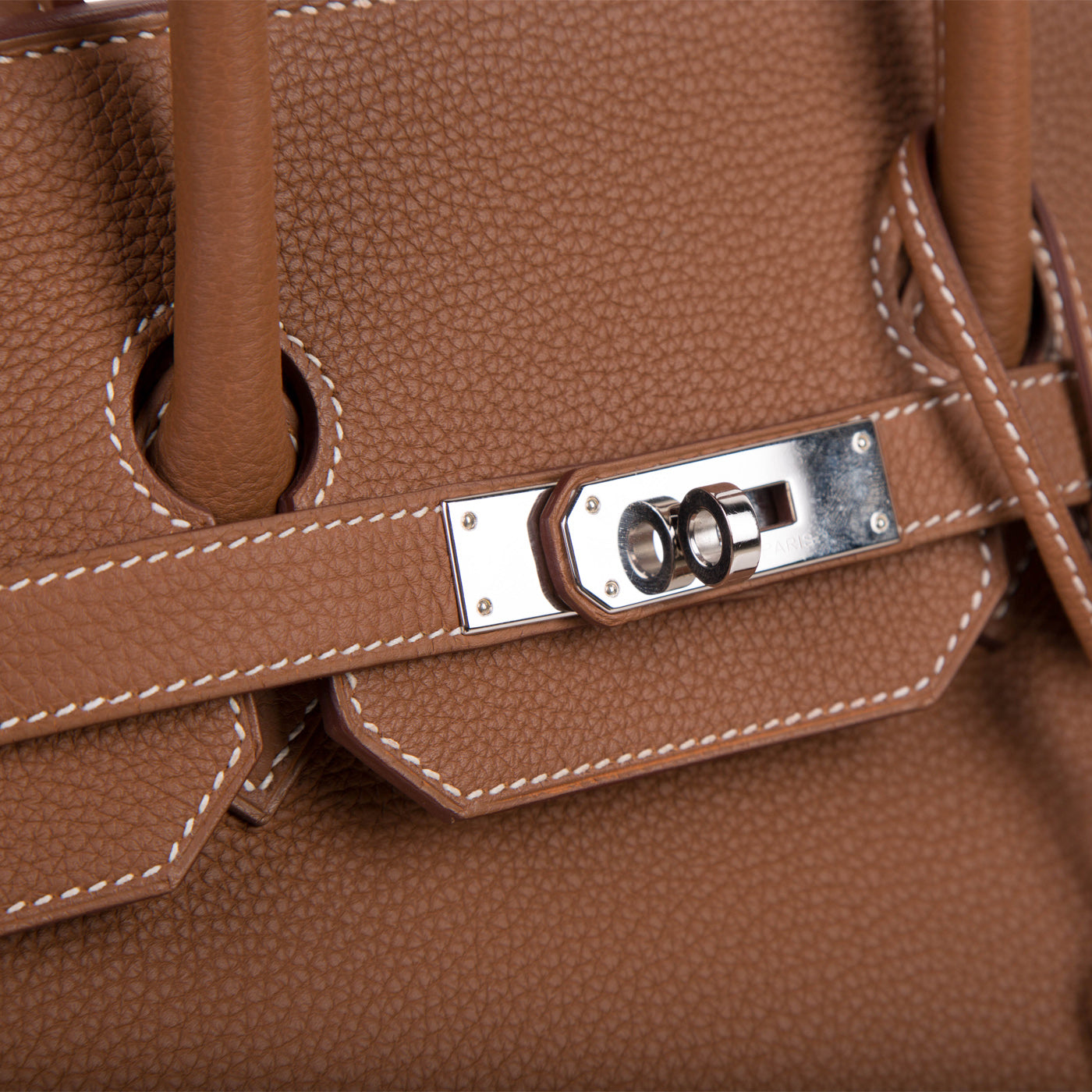 The Hermès Birkin is among the most famous bags in the world. First created in 1983 after Jean-Louis Dumas met Jane Birkin on a flight from Paris to London. In the short flight, Birkin explained that she needed a bag which was spacious enough for everything she needed to carry, with plenty of pockets as well. He sketched the first bag there and then, and the rest is history. Thirty-four years later, this bag has been created in a huge variety of styles and materials. This version of the Birkin is crafted out of stunning, Gold Togo leather and finished with palladium hardware.